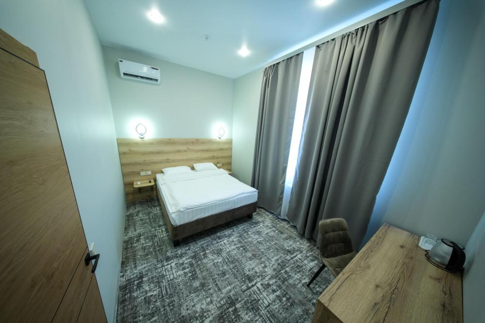 Двухместный номер, площадью 12м², рассчитан на проживание не более двух человек. Номер выдержан в тёплой цветовой гамме. В номере стандарт: Двуспальная кровать, Спутниковое ТВ, Стол, Кондиционер, Бесплатный WI-FI,, Чайник, Набор посуды, Душ, Тапочки, Туалет, Набор полотенец, Фен.