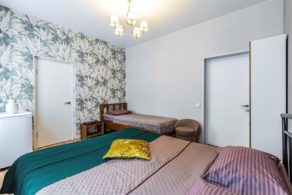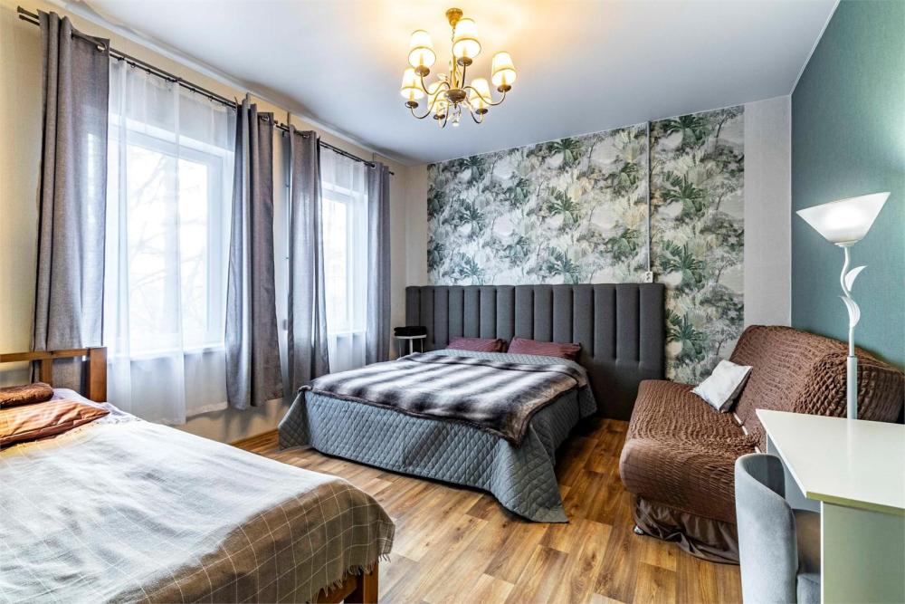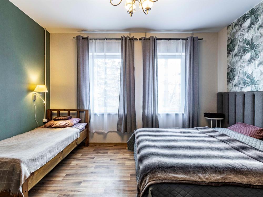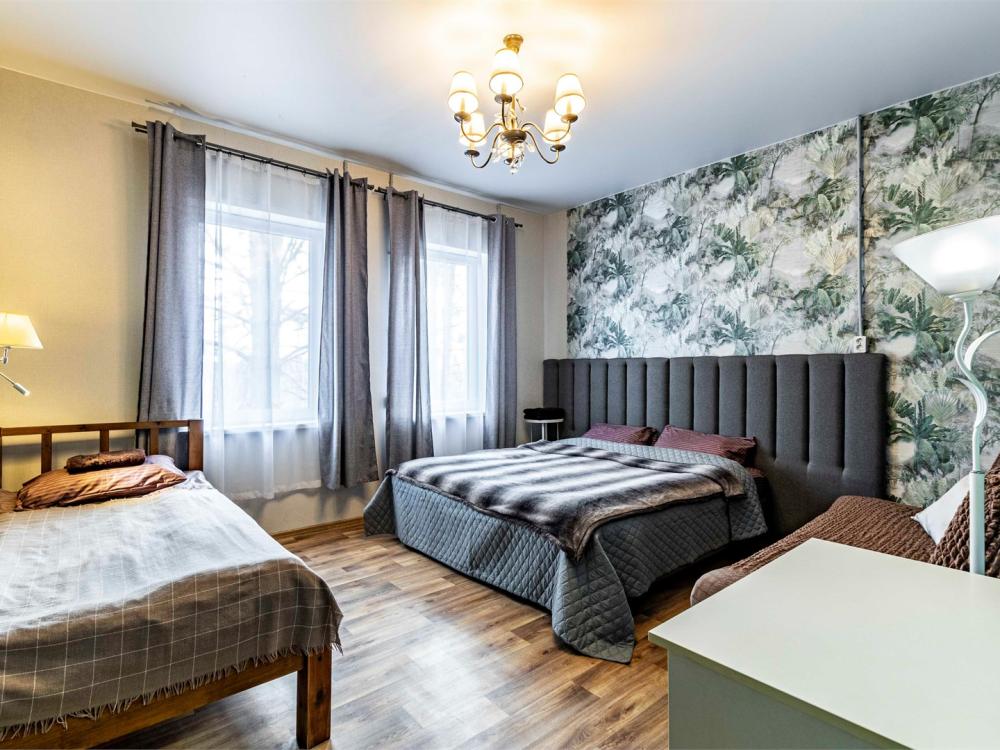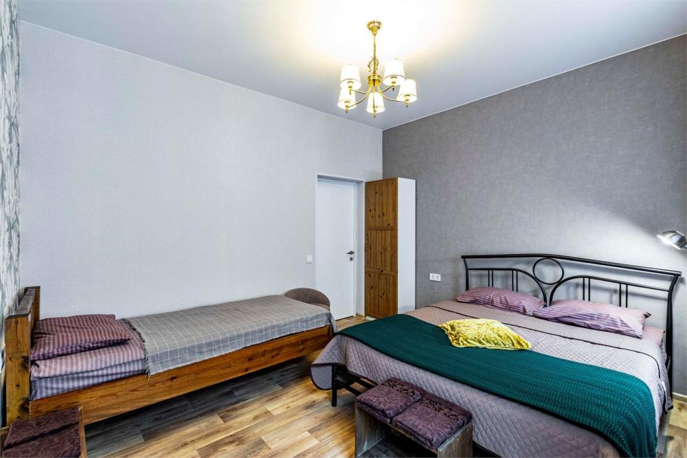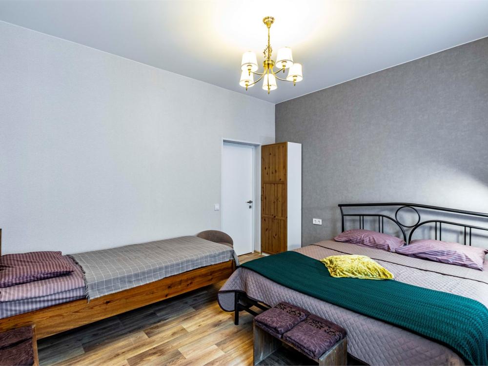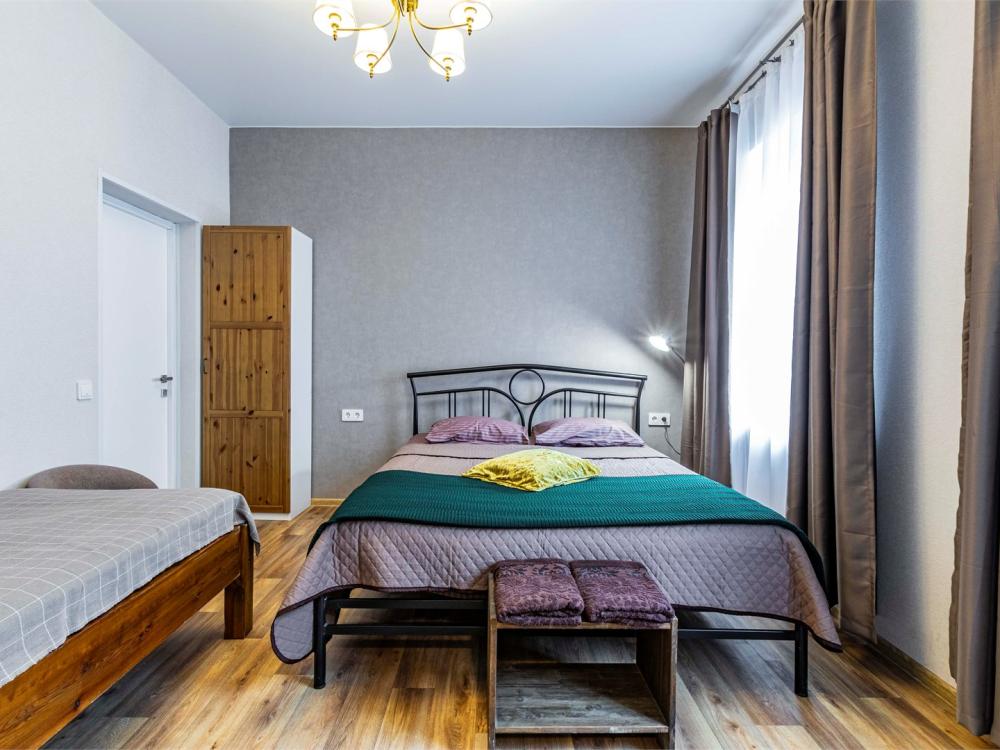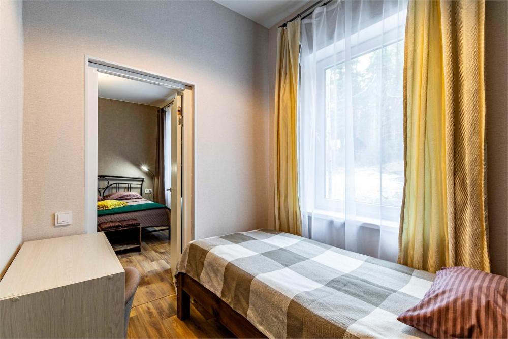 Просторный двухкомнатный номер, идеально подходящий для семейного отдыха или размещения большой компании. В номере имеется все необходимое для комфортного проживания: двуспальная, односпальная и двухъярусная кровати, диван, холодильник, санузел с душем. Гостям предоставляется постельное белье и полотенца.
