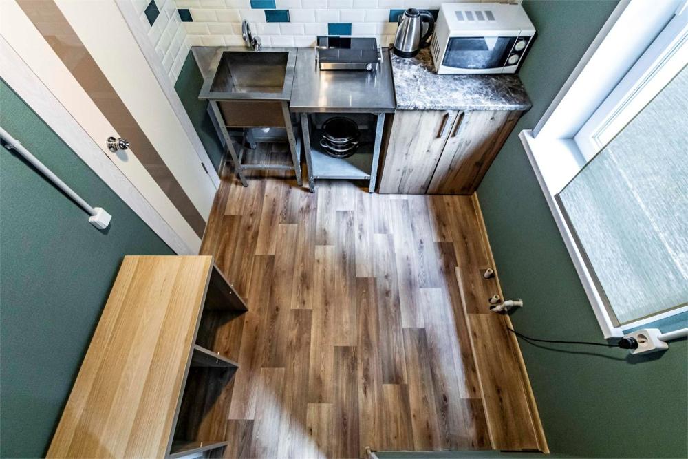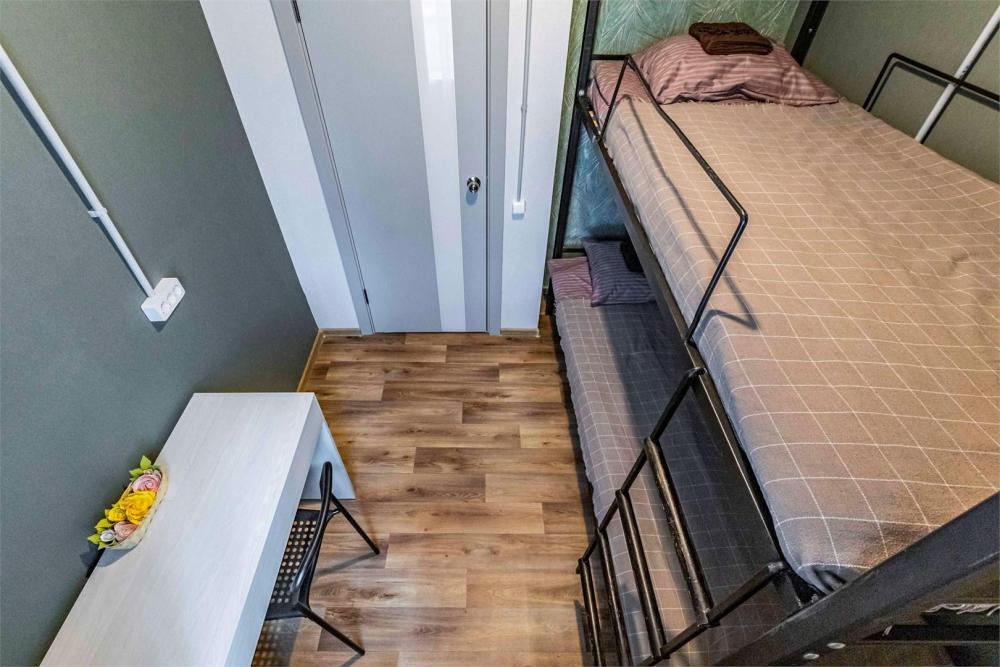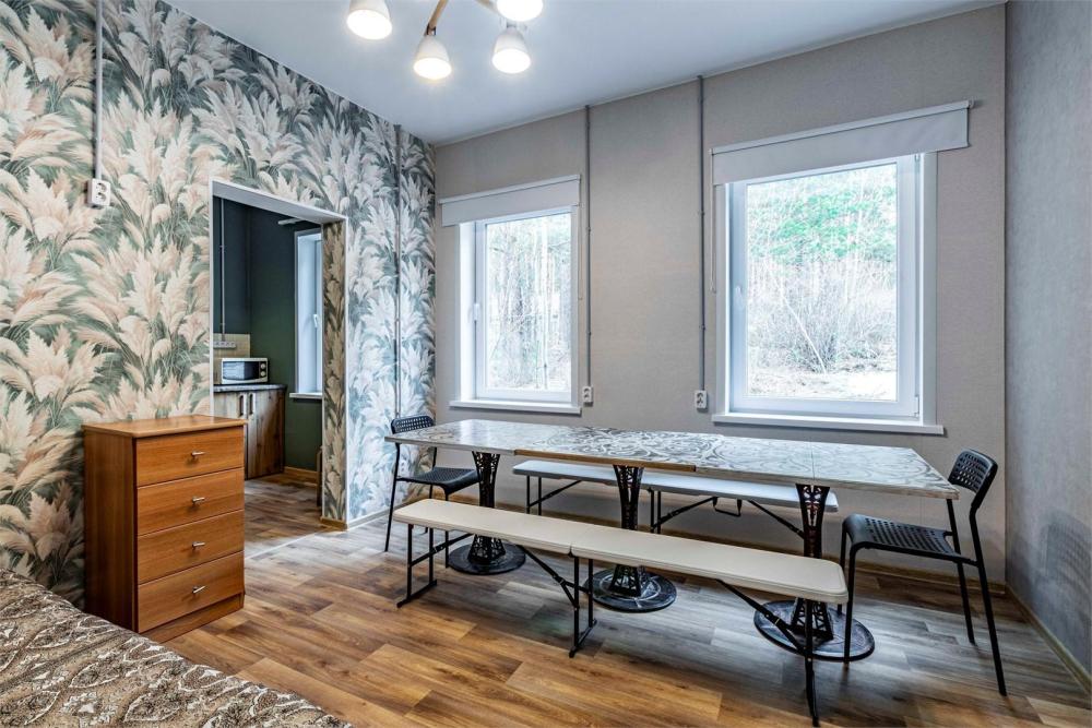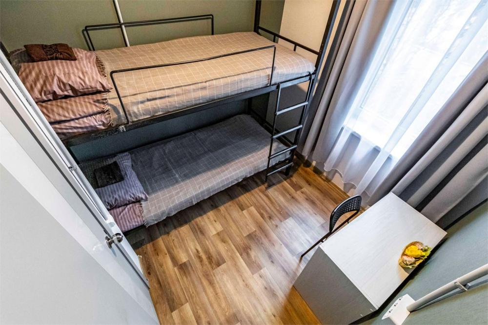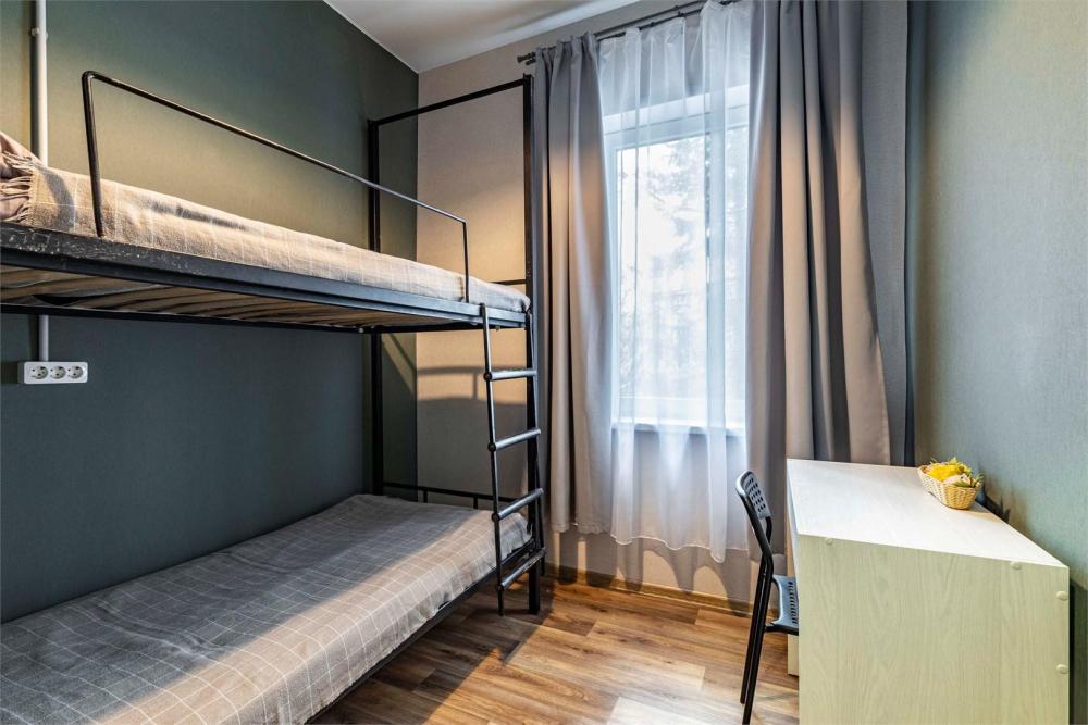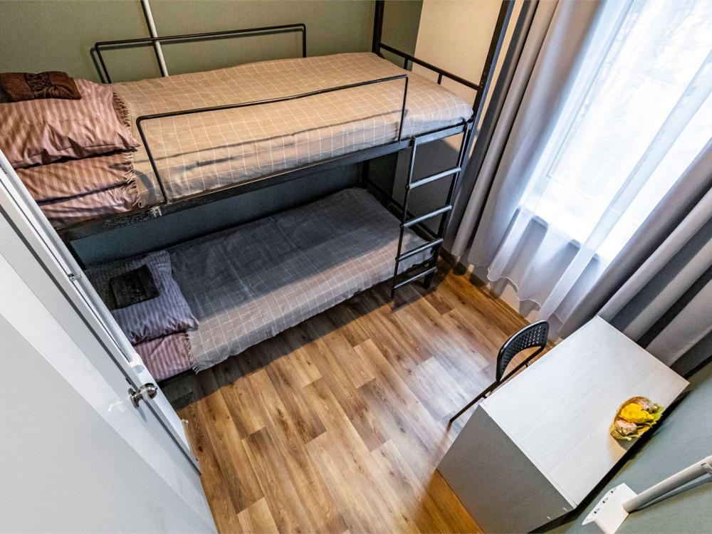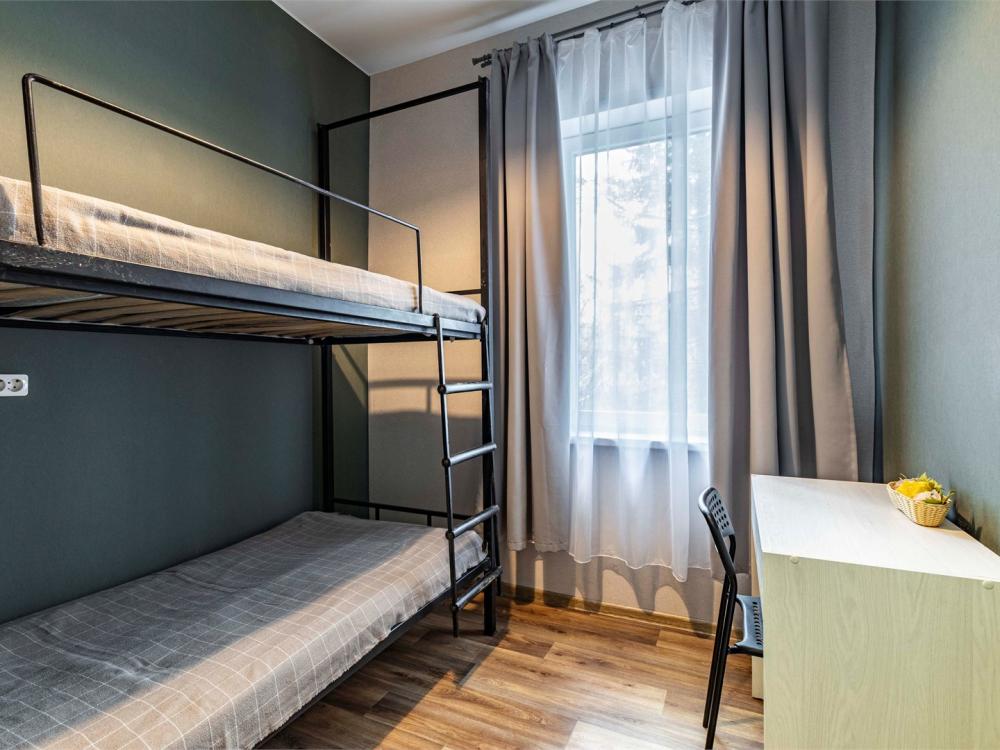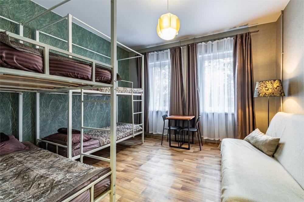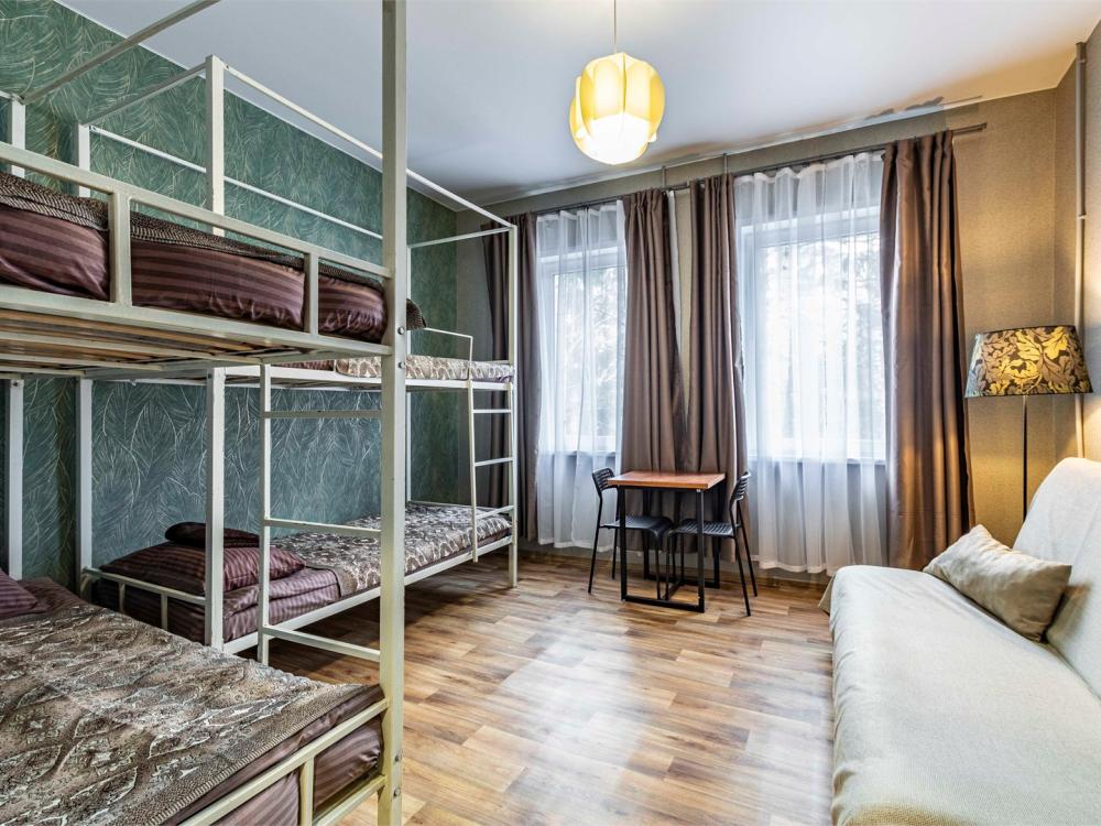 Однокомнатный номер, идеально подходящий для размещения больших семей или компаний друзей. В номере: две двухъярусные кровати, диван, санузел с душем. Гостям предоставляется постельное белье и полотенца.