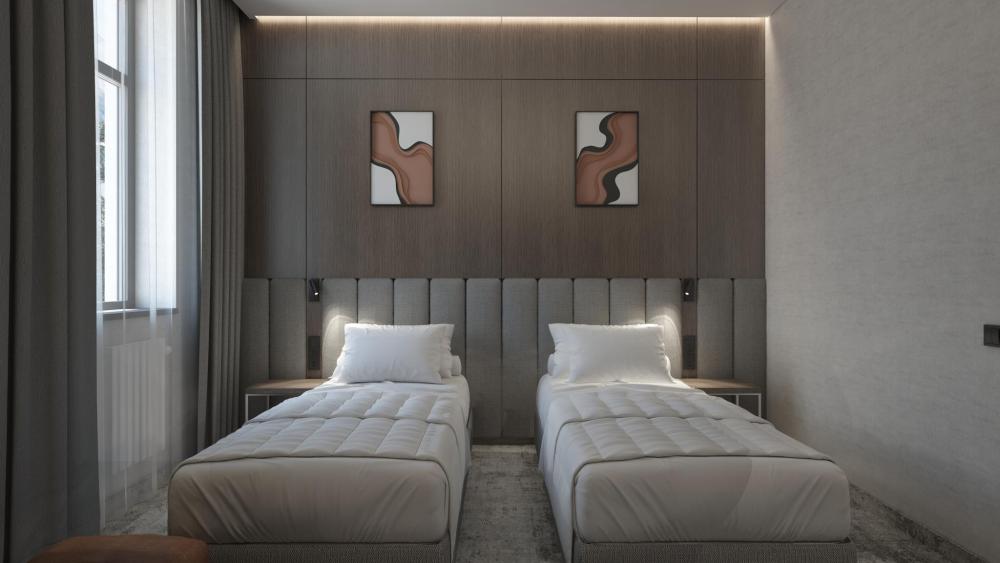 Двухуровневый номер подходит для размещения до четырех гостей. В номере имеется двуспальная кровать или раскладной диван на первом уровне и двуспальное место на втором.