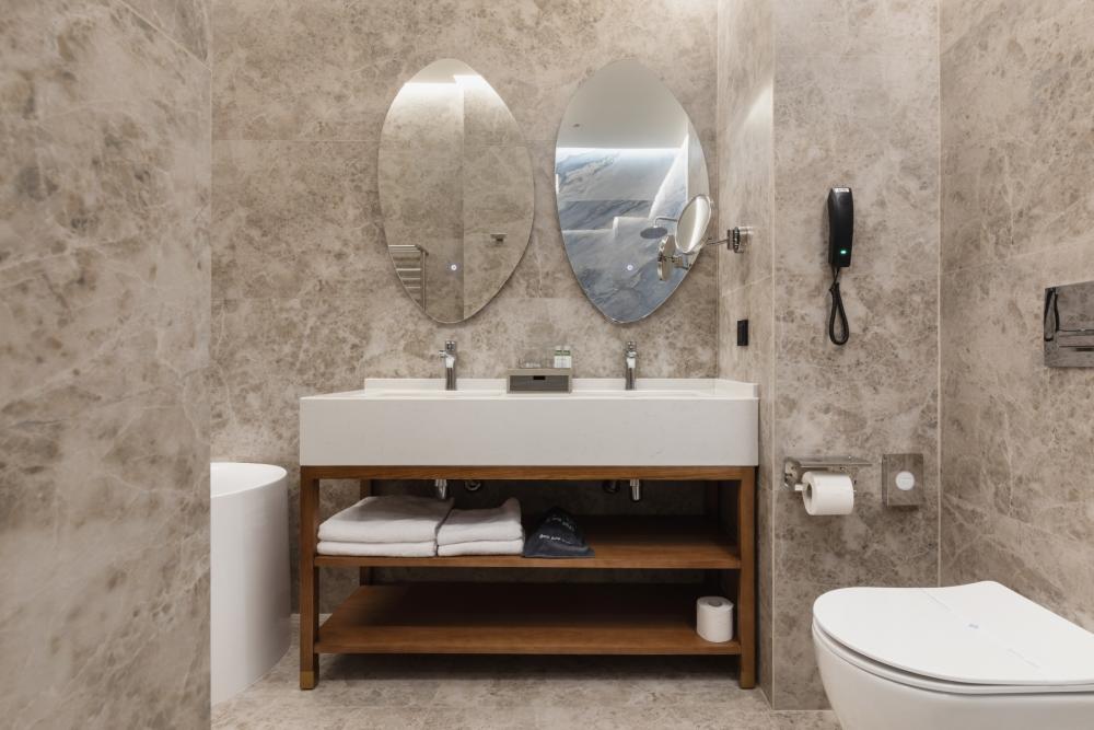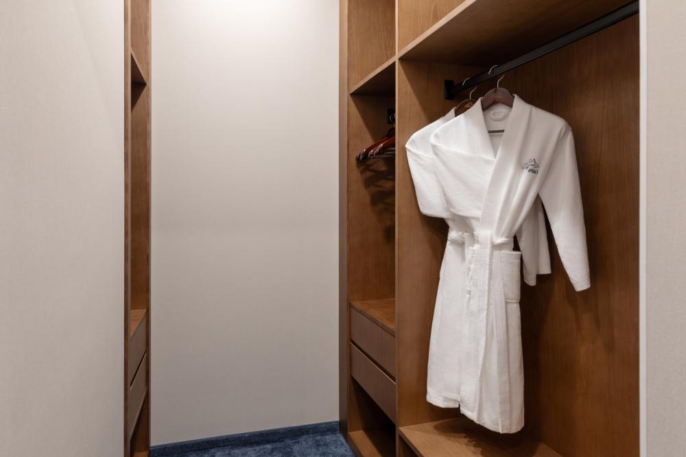 Diamond Suite — просторное пространство площадью от 35 кв.м, идеально сочетающее комфорт и стиль. В номере расположена большая двуспальная кровать с качественным постельным бельём, а в зоне отдыха есть удобный диван и стильный журнальный столик — идеальное место для расслабления после насыщенного дня. Пол покрыт мягким ковролином, создающим уютную атмосферу. Для хранения вещей предусмотрен вместительный гардероб, а ценные вещи можно разместить в электронном сейфе. Для развлечений и отдыха установлен большой телевизор с кабельными каналами и картотекой фильмов. В ванной комнате гостей ждёт современный тропический душ, санузел и гигиенический душ. Тёплый пол обеспечит дополнительный комфорт, а зеркало с подсветкой, идеально подойдет для утренних и вечерних процедур. Также имеются все необходимые туалетные принадлежности (полотенца, халаты, тапочки, косметика) и фен для удобства гостей. Номер оборудован кондиционером с индивидуальной настройкой, системой вентиляции, звукоизоляцией и бесплатным высокоскоростным Wi-Fi. Номера данной категории отличаются гибкостью и разнообразием планировок. Это может быть уютный однокомнатный номер, или же пространство, зонированное стильной перегородкой. Diamond Suite — это гармоничное сочетание пространства, удобств и продуманного дизайна для приятного и расслабляющего пребывания.