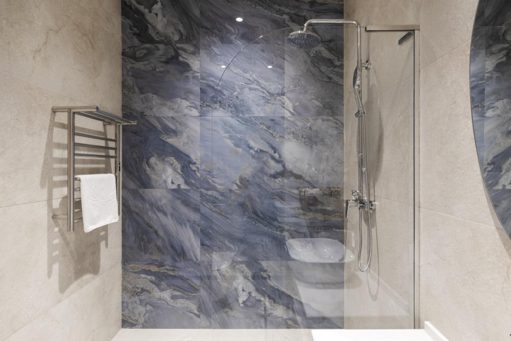 Suite EMERALD— просторный номер площадью от 42,5 кв.м. Спальная зона оборудована большой двуспальной кроватью (либо двумя односпальными кроватями), обеспечивающей крепкий и спокойный сон. В зоне отдыха расположен удобный диван, который при необходимости превращается в дополнительное спальное место, что делает номер подходящим для семей или компаний. Пол покрыт мягким синим ковролином, придающим номеру теплую и стильную атмосферу. Для хранения одежды и личных вещей предусмотрен вместительный гардероб, а ценные предметы можно разместить в электронном сейфе. Гости также могут воспользоваться мини-баром с разнообразными напитками и закусками (по запросу). Для развлечений и отдыха в номере установлены два телевизора с большими экранами, позволяющие наслаждаться любимыми программами из разных зон комнаты. Номер оборудован кондиционером с индивидуальной настройкой, системой вентиляции, звукоизоляцией и бесплатным высокоскоростным Wi-Fi. В ванной комнате гостей ждёт современный тропический душ, санузел с гигиеническим душем, тёплый пол для дополнительного комфорта и зеркало с подсветкой, идеально подходящее для ухода за собой. Также имеются все необходимые туалетные принадлежности (полотенца, халаты, тапочки, косметика) и фен для удобства гостей. Номера данной категории отличаются гибкостью и разнообразием планировок. Это может быть уютный однокомнатный номер, пространство, зонированное стильной перегородкой, или же двухкомнатный номер. Suite EMERALD— это идеальное сочетание пространства, комфорта и продуманного дизайна для приятного и расслабляющего отдыха.