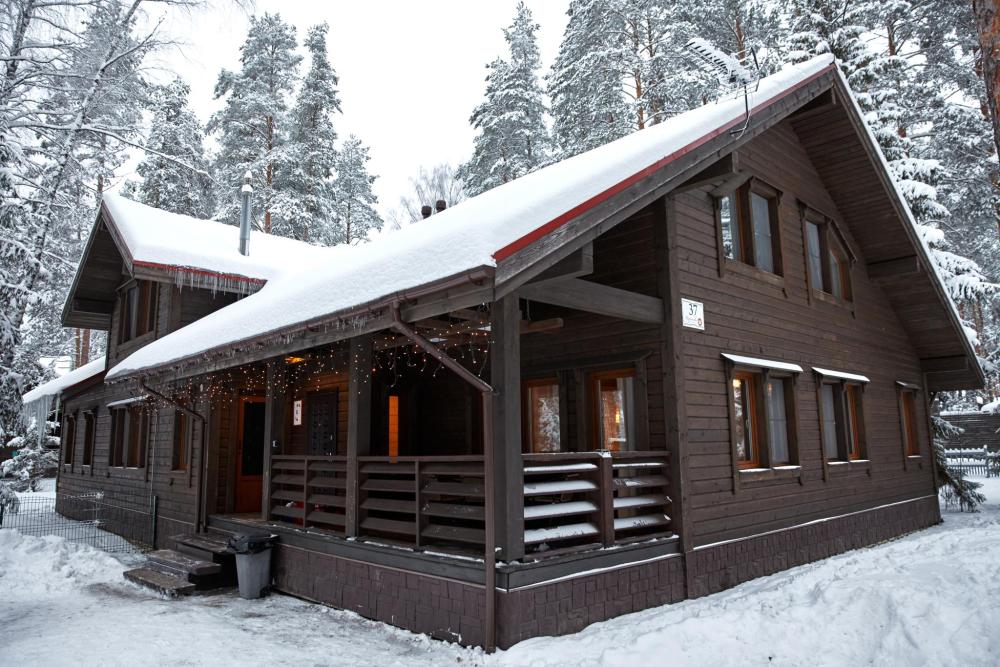 Премиальный коттедж, выполненный из сухостойной сосны Кело, с дизайнерским интерьером. Кело — это высохшая в течение нескольких десятилетий на корню северная карельская сосна, возраст которой достигает 300 лет. В доме просторная зона кухни-гостиной, 2 спальни с двуспальными кроватями, детская комната с двухъярусной кроватью, сауна и большие террасы.