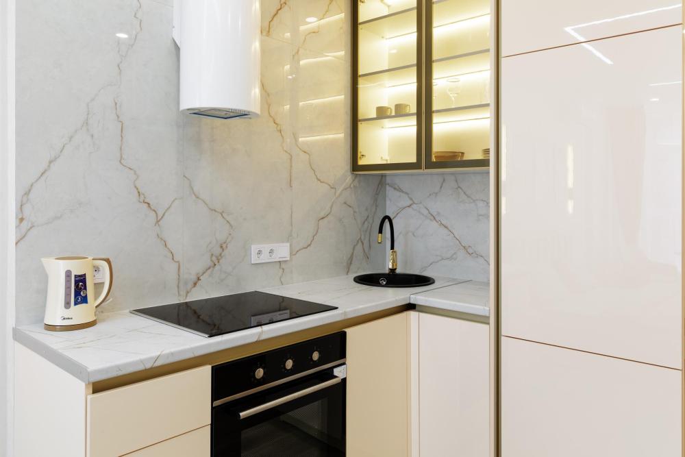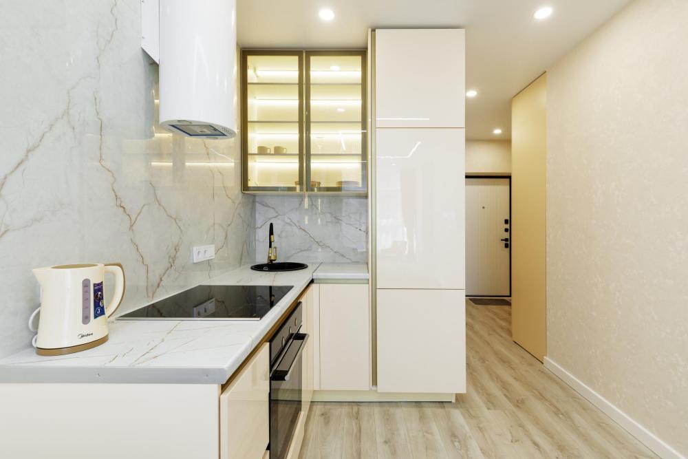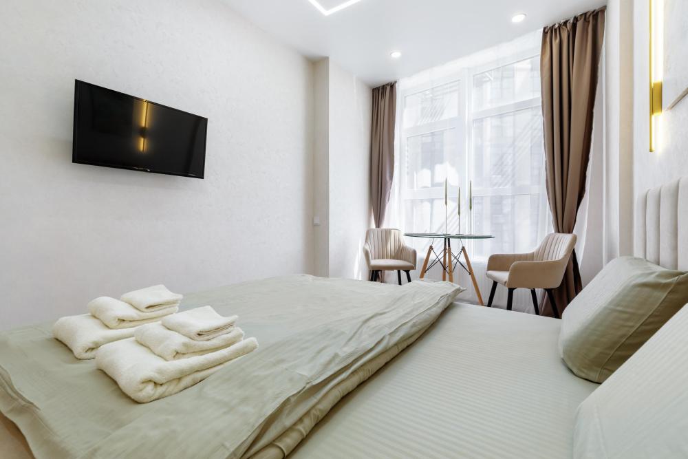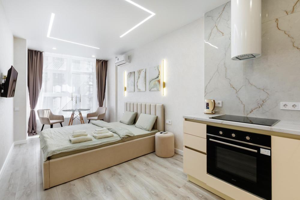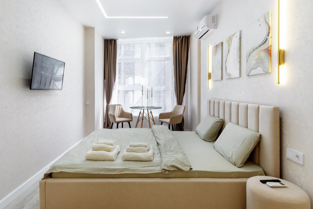 Уютные апартаменты студия, оборудованная всем необходимым для комфортного проживания. В квартире есть: удобная двуспальная кровать, Wi-Fi, Smart TV, кондиционер, кухня с посудой, плитой и холодильником, стиральная машина, утюг, фен, чистое постельное бельё, полотенца, гигиенические принадлежности.