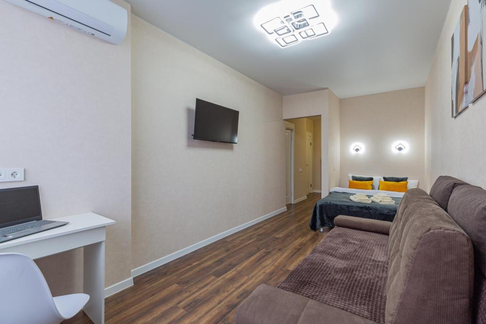 Уютная квартира студия с индивидуальным дизайном и с потрясающим видом на колесо обозрения - идеальный вариант для размещения! До Театра Максима Горького и Пушкинской 7 минут пешком. От нас Вы быстро и легко доберетесь в любую точку города! Студия имеет 2 спальных места. Вы сможете комфортно разместиться вдвоем! Цена аренды квартиры может меняться в зависимости от количества гостей,сезона,времени заселения,срока бронирования. Вам нужно только выбрать в календаре дату и количество гостей. Уютная квартира в современном доме бизнес класса Рубин! В квартире имеется все необходимое для комфортного проживания и всегда комплимент для гостей! Заселение с 14:00, выезд до 12:00 При заселении оплачивается депозит 2000 р., который возвращается при выезде. Курение в том числе и электронных сигарет категорически запрещено