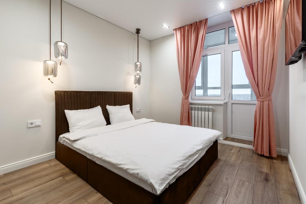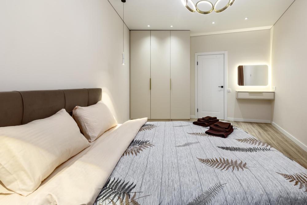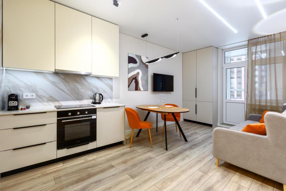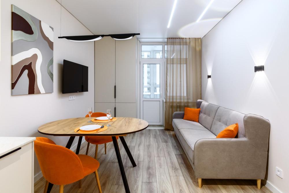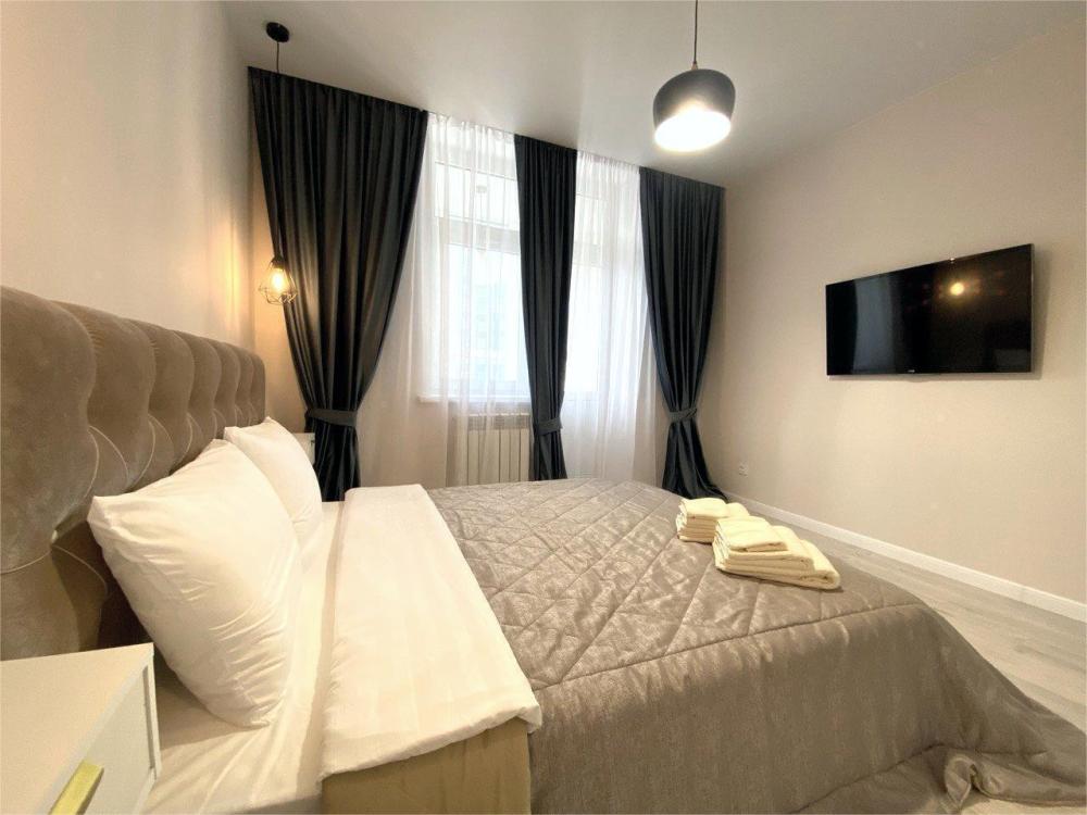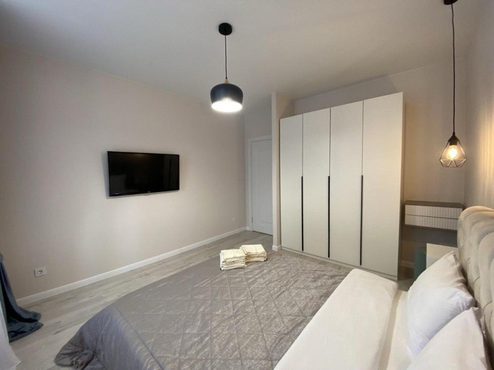 Уютные апартаменты, оборудованные всем необходимым для комфортного проживания. В апартаментах: двуспальная кровать, диван, кухня с обеденной зоной, оборудованная необходимой техникой и посудой, санузел с ванной.