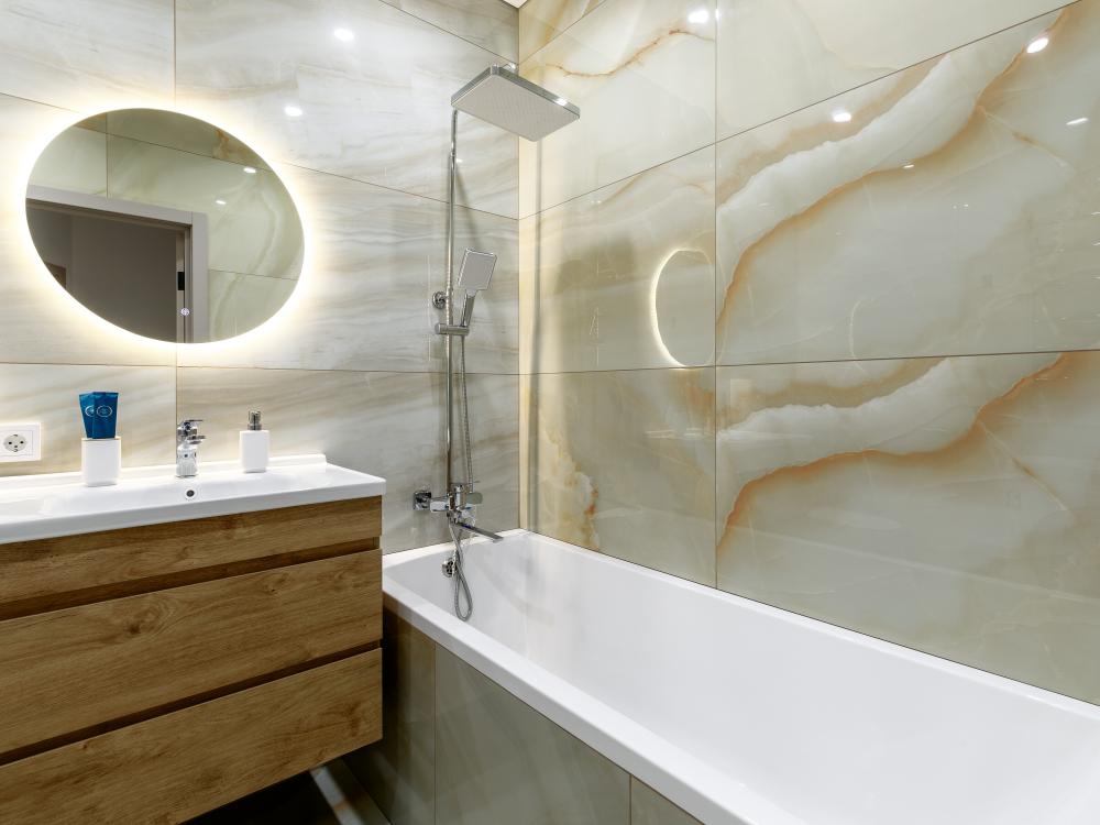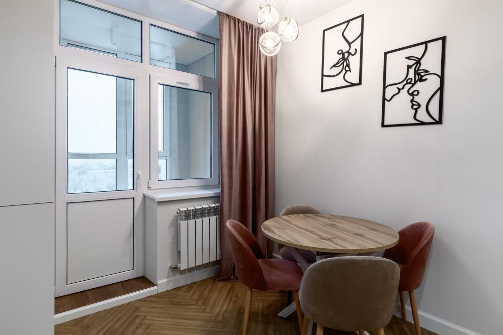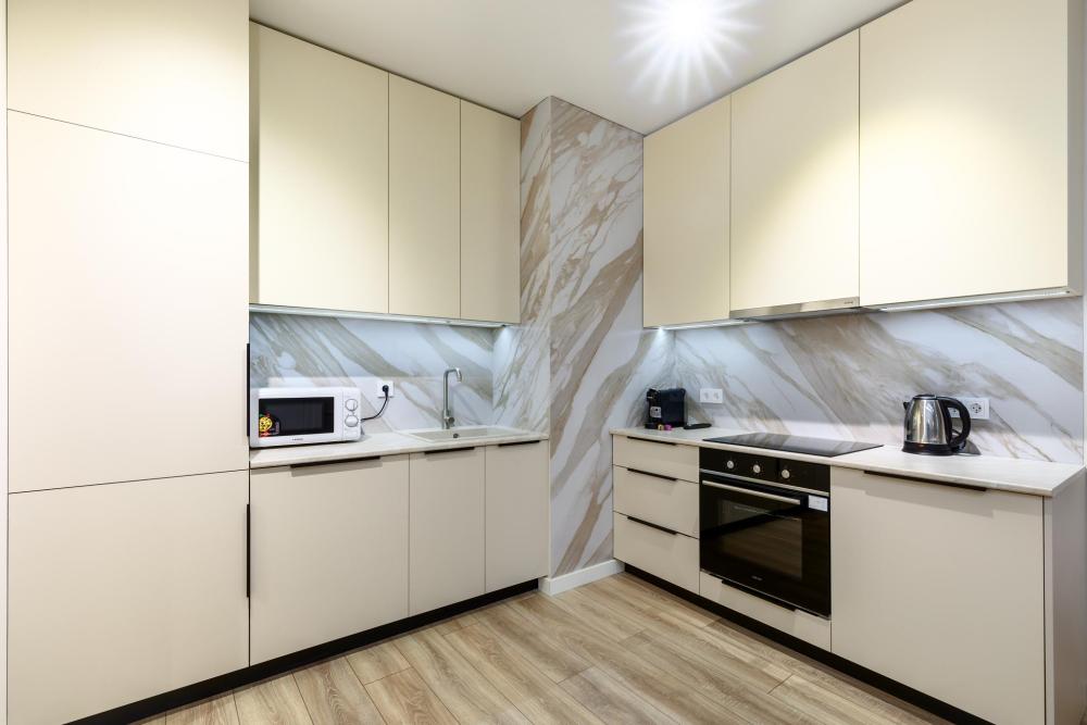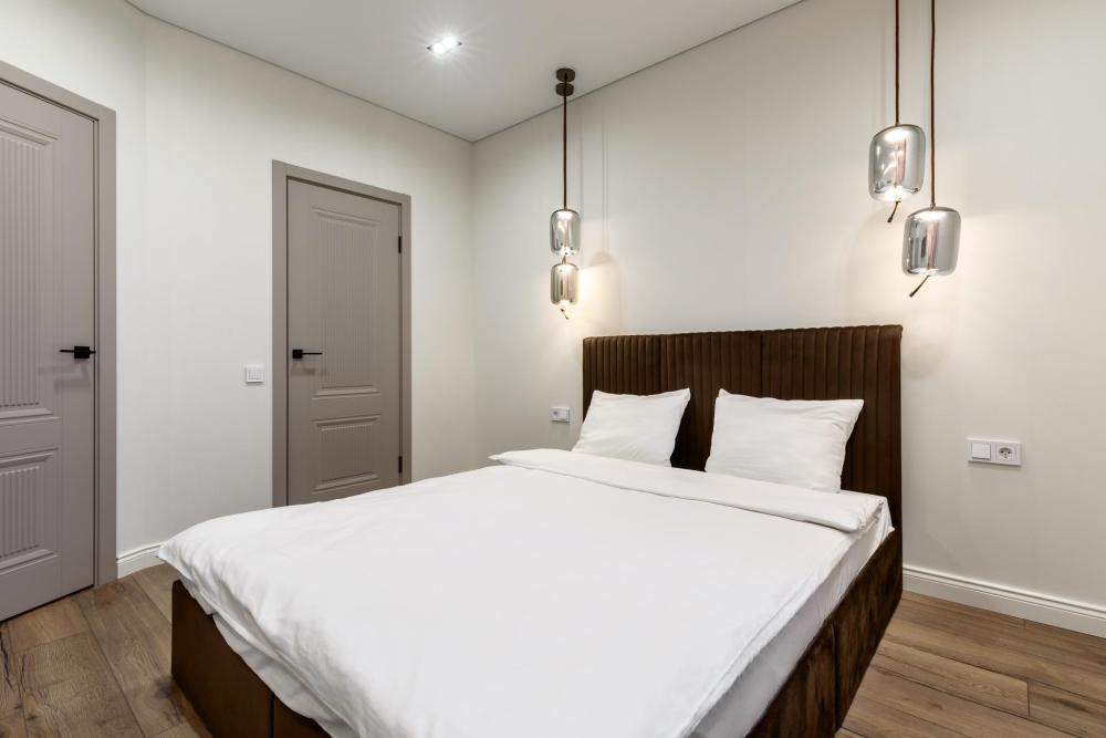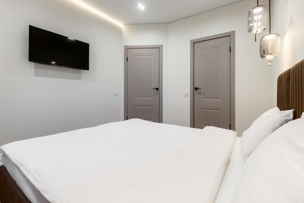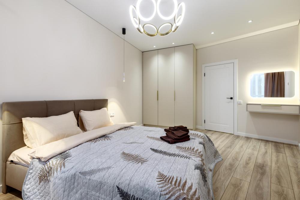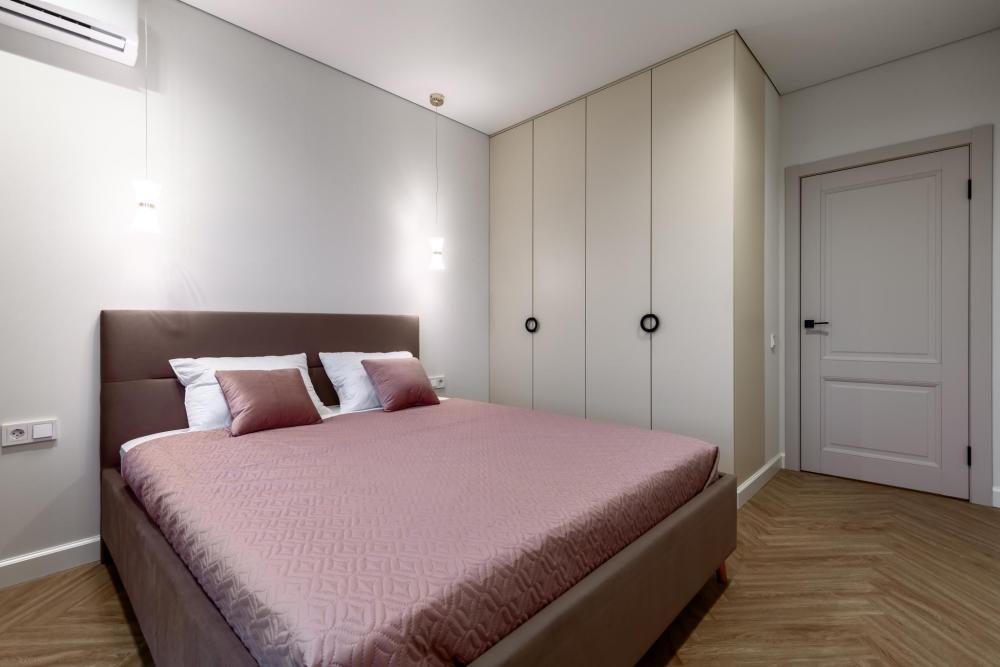 Уютные апартаменты, оборудованные всем необходимым для комфортного проживания. В апартаментах: двуспальная кровать, диван, кухня с обеденной зоной, оборудованная необходимой техникой и посудой, санузел с ванной.