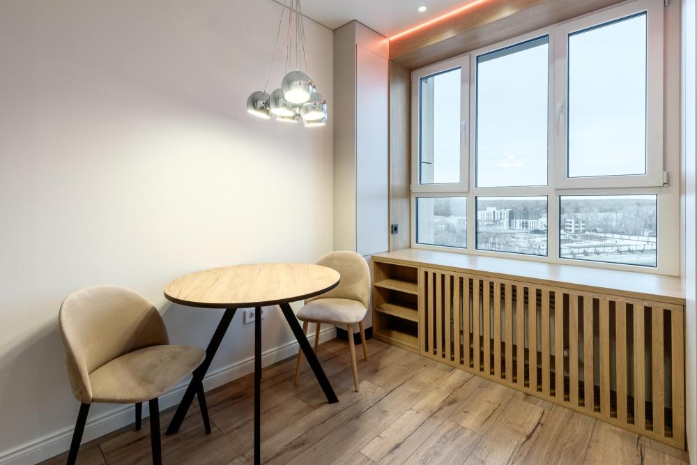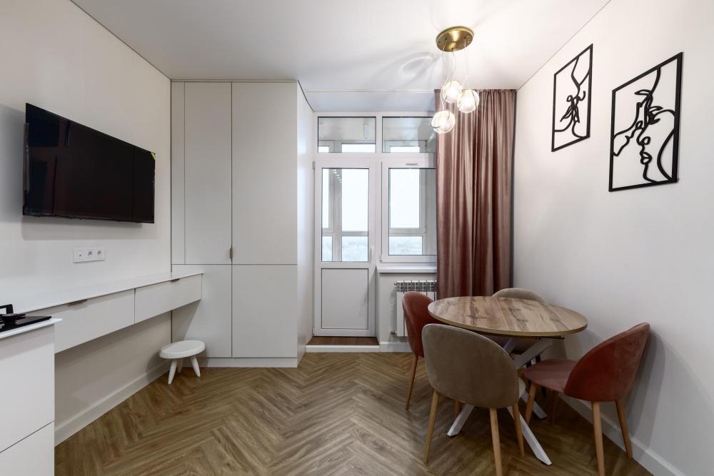 Уютные апартаменты, оборудованные всем необходимым для комфортного проживания. В апартаментах: двуспальная кровать, кухня с обеденной зоной, оборудованная необходимой техникой и посудой, санузел с душем.