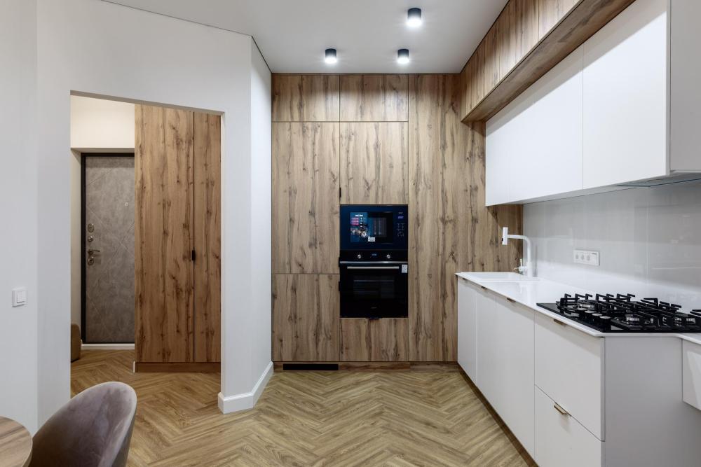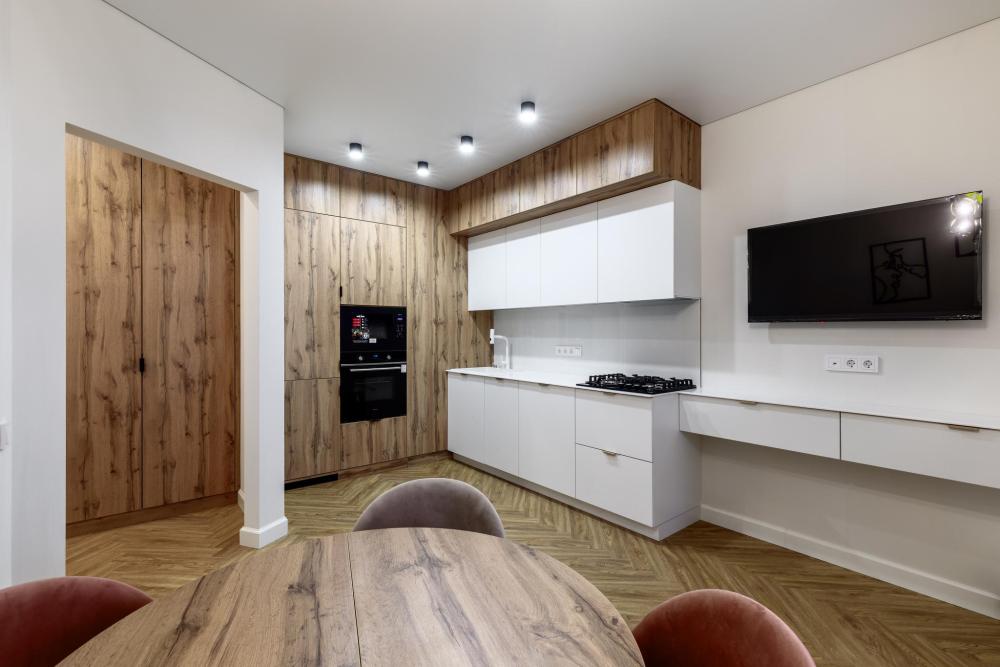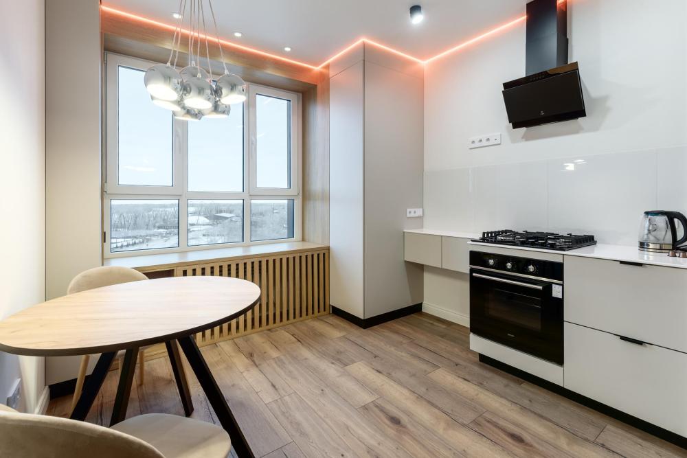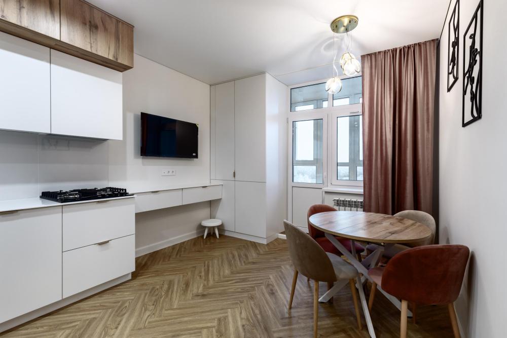 Уютные апартаменты, оборудованные всем необходимым для комфортного проживания. В апартаментах: двуспальная кровать, кухня с обеденной зоной, оборудованная необходимой техникой и посудой, санузел с ванной.