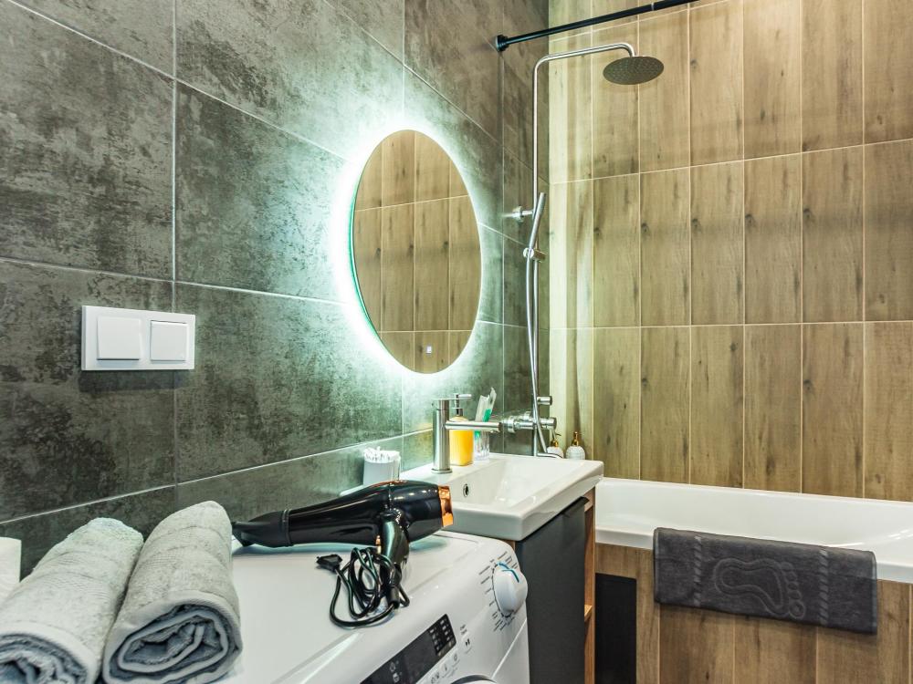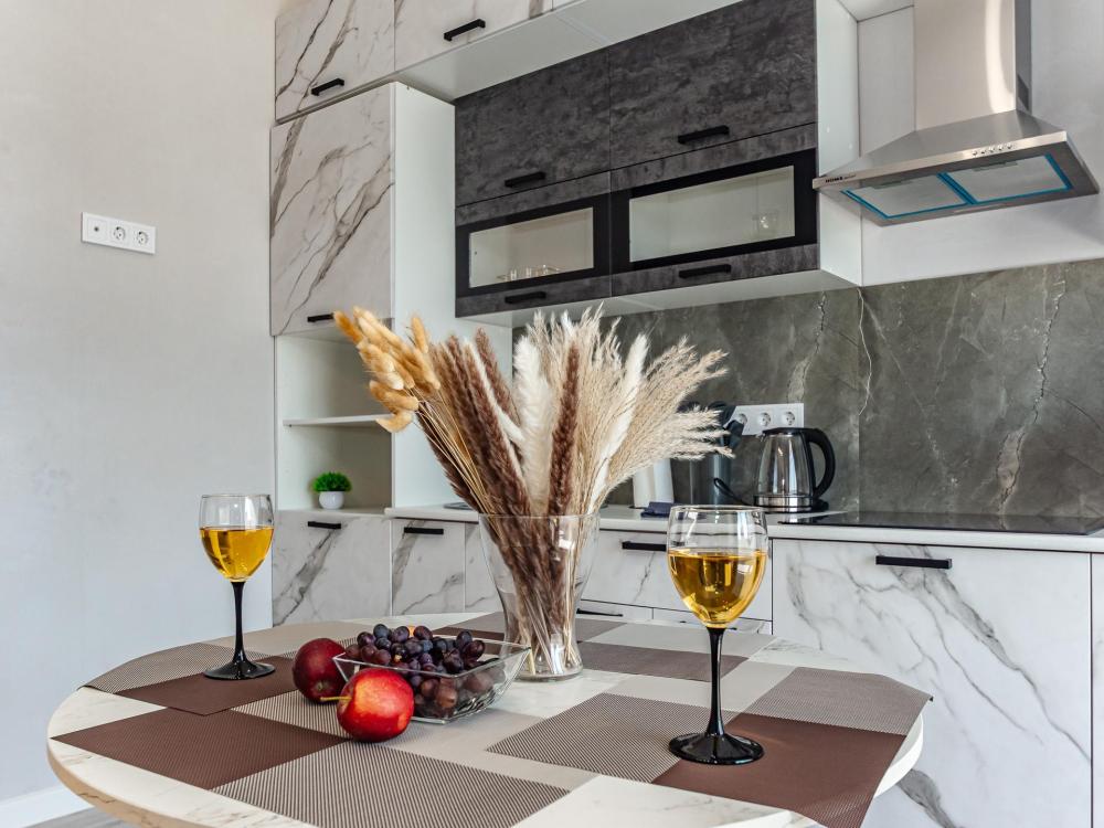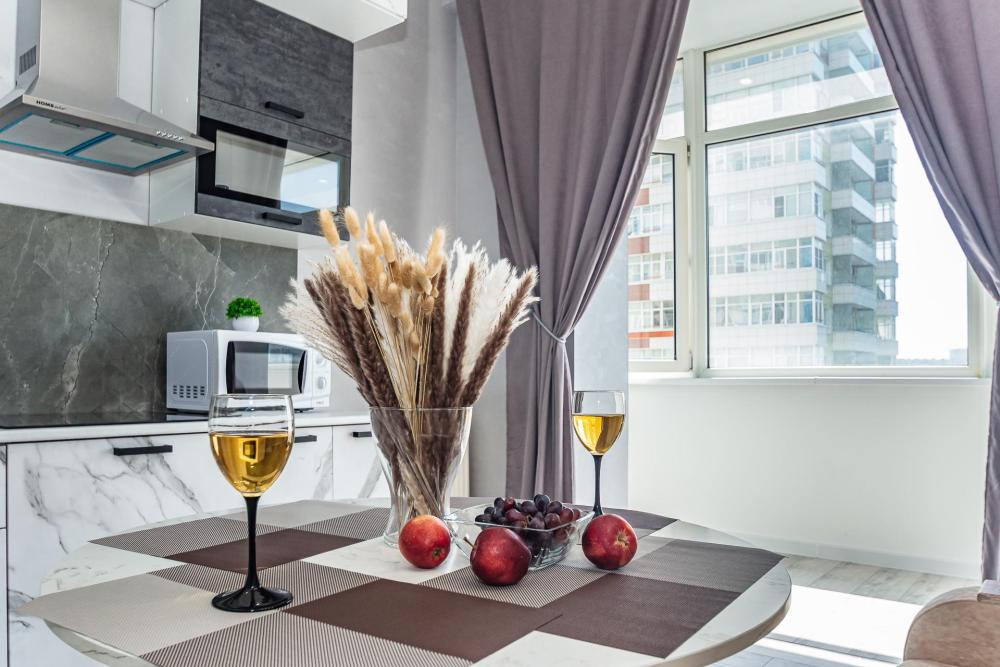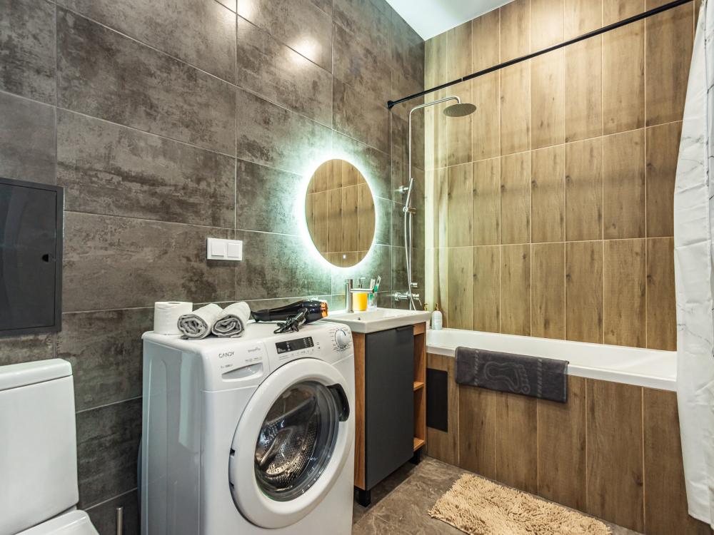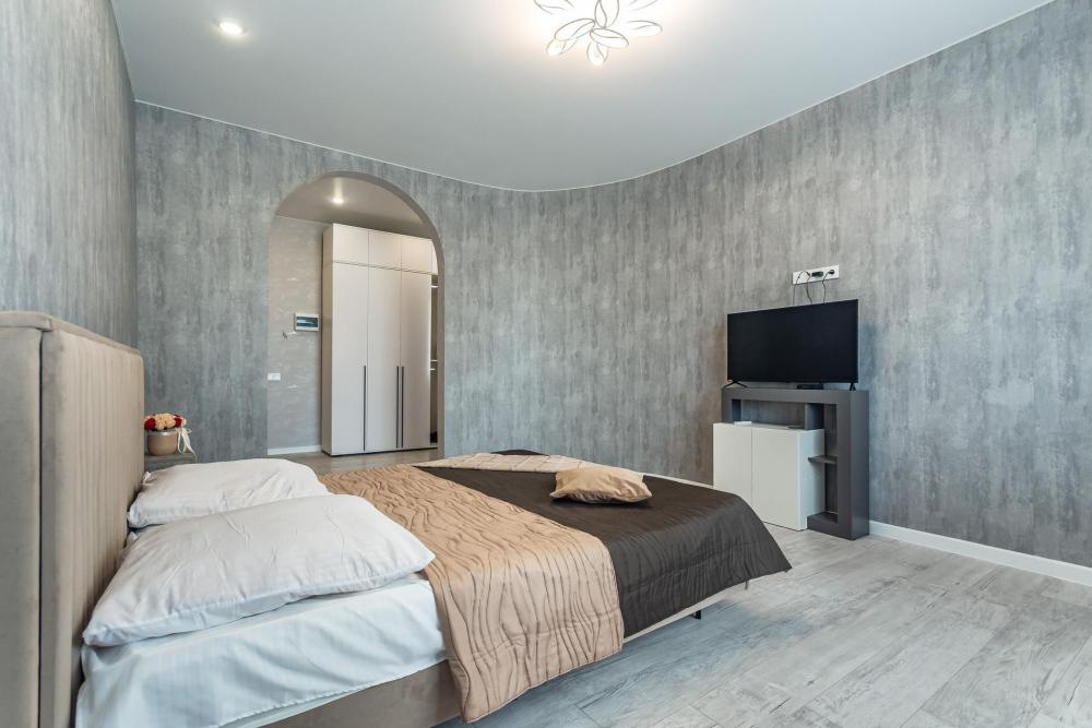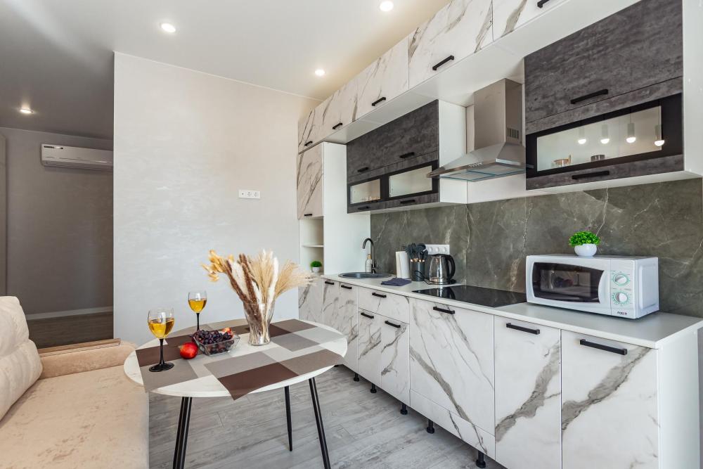 Уютные однокомнатные апартаменты, оборудованные всем необходимым для комфортного проживания. В квартире есть удобные спальные места (двуспальная кровать 160x200 см с ортопедическим матрасом и белоснежным бельем, диван-кровать), компактная зона кухни с обеденной зоной и посудой для приготовления пищи, вся необходимая бытовая техника, быстрый безлимитный Wi-Fi, смарт телевизор с онлайн кинотеатром Кинопоиск, гигиенические принадлежности (зубные наборы, гель для душа, шампунь, свежие полотенца), шторы блэкаут для спокойного сна, сплит-система кондиционирования и бойлер для горячей воды.