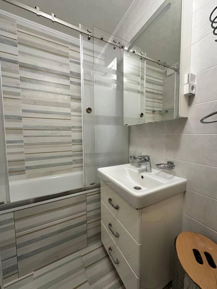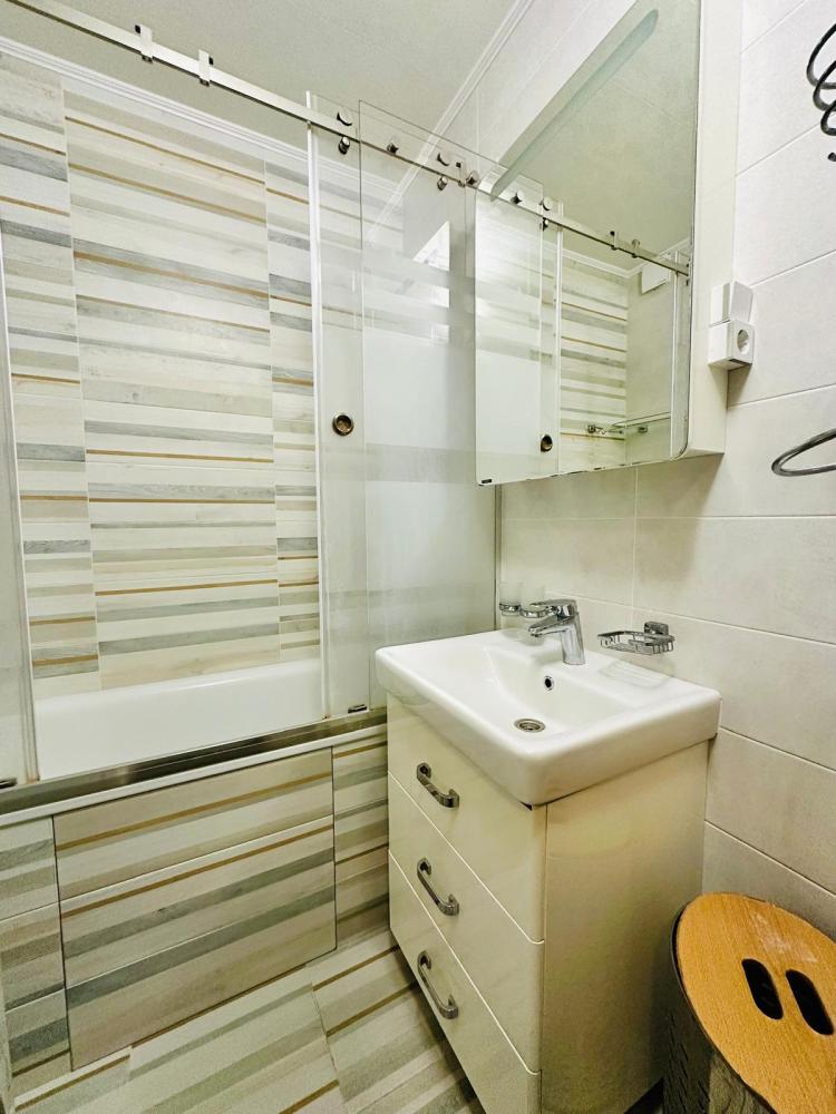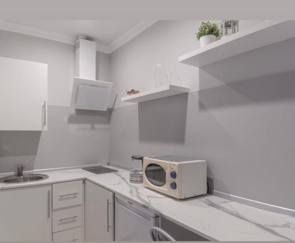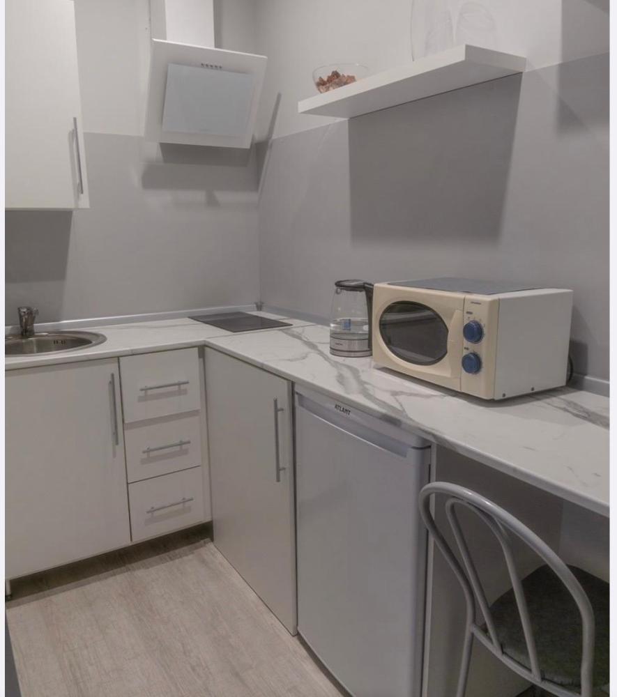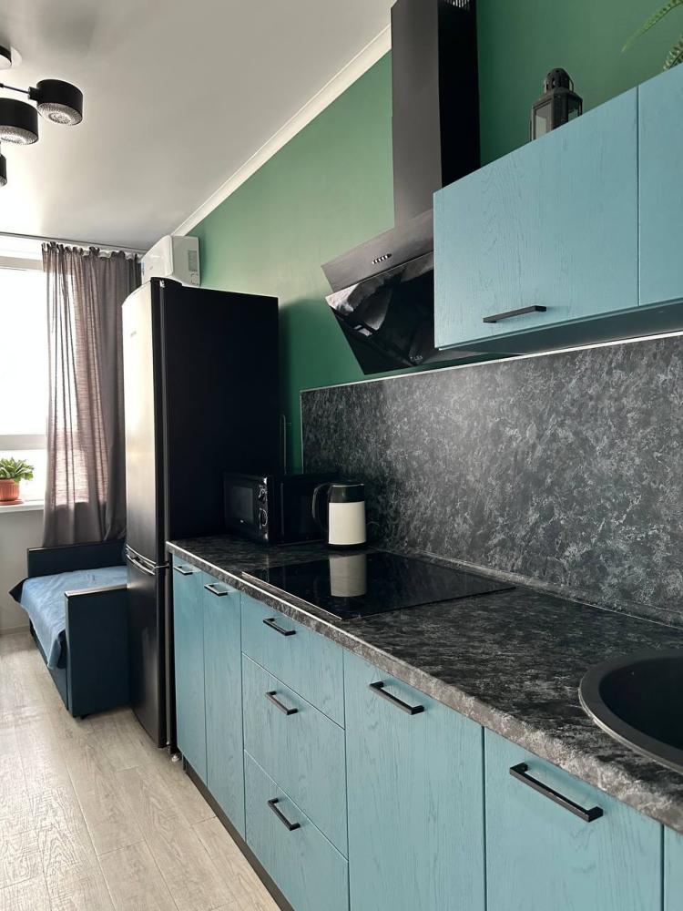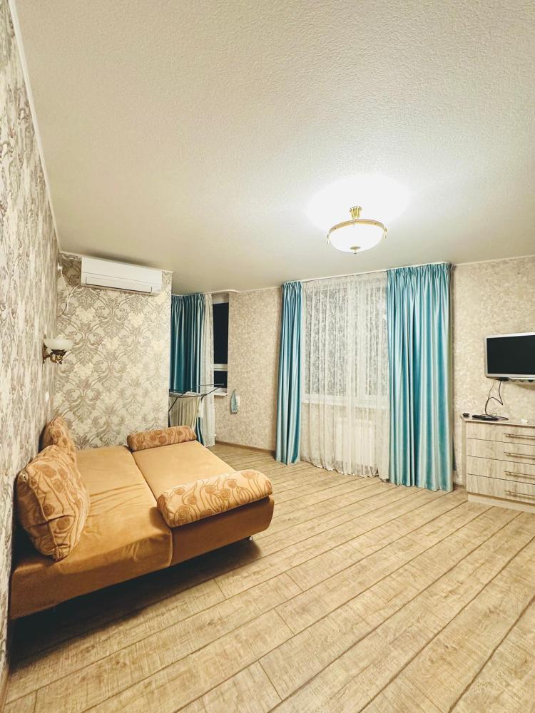 4 спальных места: двуспальная кровать и двуспальный диван. Кухня оборудована необходимой посудой и техникой: холодильник, микроволновка, плита, чайник. К услугам гостей также телевизор, кондиционер, бесплатный wi-fi.