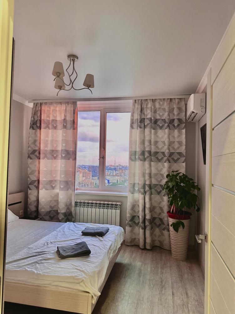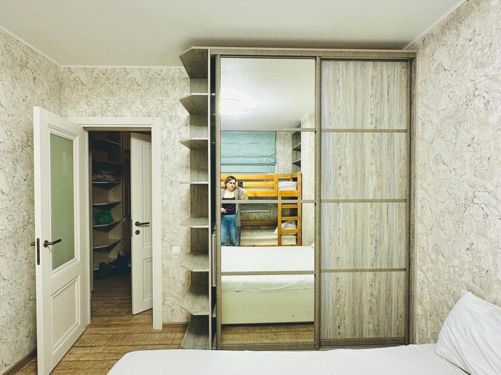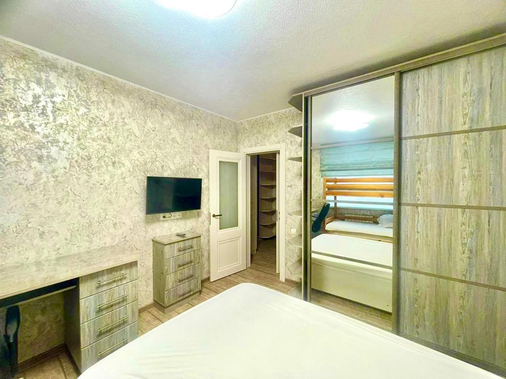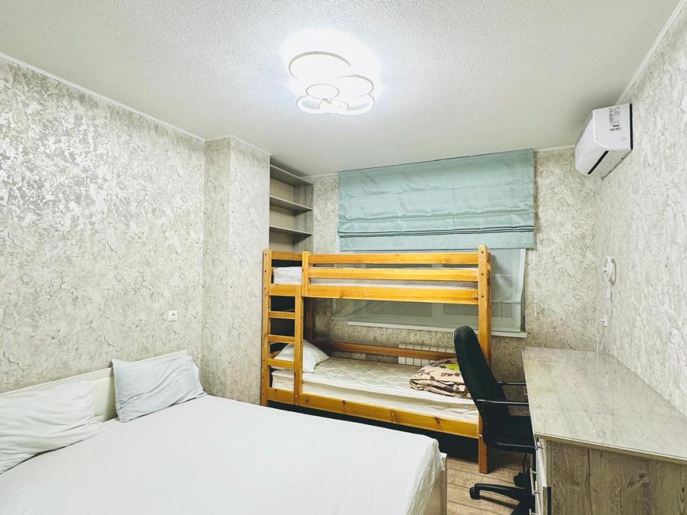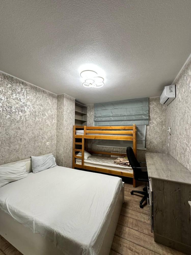 6 спальных мест: двуспальная кровать и 2 раскладных дивана. Кухня оборудована необходимой посудой и техникой: холодильник, микроволновка, плита, чайник. К услугам гостей также телевизор, кондиционер, бесплатный wi-fi.