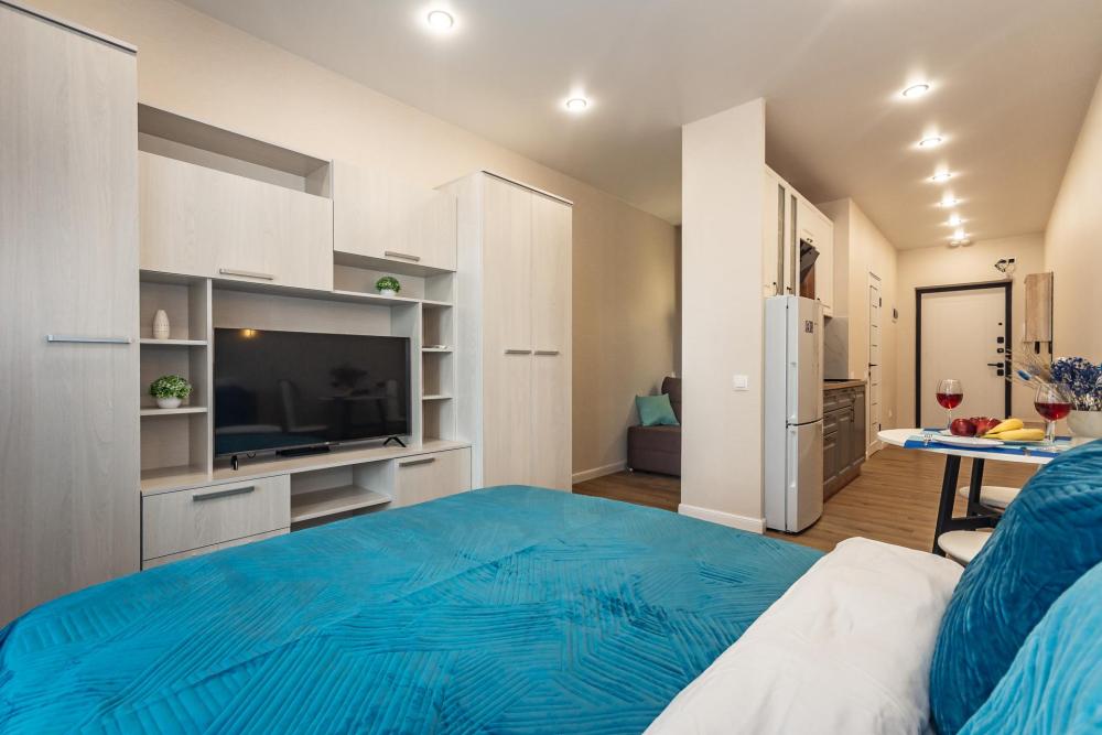 Загляните к нам в студию „Аквамарин“ — будет уютно! Дом нaходитcя в новом ЖК бизнес класса "Кpиcтaлл-2"на центральном проспекте города. Через дорогу -Центральная гoрoдcкая бoльница имени Сeмaшко (ЦГБ), а также: -Донскoй гocудapствeнный унивеpситет (ДГТУ) , -Конгpесс-холл ДГТУ, -ЦМО Симплекс, -Ростовский ипподрром, -Бассейн Волна, В шаговой доступности великолепная улица Пушкинская, а так же рестораны, кафе, магазины и др. инфраструктура. В 1,5 км. (3 остановки) Аквапарк Н2О и ТЦ «Горизонт», 15 минут до набережной Дона. Окна квартиры выходят в тихий двор, у входа в ЖК автобусные остановки общественного транспорта с маршрутами во все направления города. На первом этаже дома располагается магазин Пятерочка. Легко добраться: 5-10 мин от ж/д и автовокзала. В квартире: 1. Удобные спальные места: - Двуспальная кровать 160 на 200 см с ортопедическим матрасом и белоснежным бельем. - Кресло-кровать. 2. Компактная зона кухни с обеденной зоной, -посуда для приготовления пищи, 3. Вся необходимая бытовая техника, 4. Быстрый безлимитный Wi-Fi. Смарт телевизор с онлайн кинотеатром Кинопоиск. 5. Гигиенические принадлежности (зубные наборы, гель для душа, шампунь, свежие полотенца). 6. Шторы блэкаут обеспечат спокойный сон. 7. Сплит-система кондиционирования. 8. Водонагреватель- всегда горячая вода. Правила проживания: -В квартире запрещено курение любых видов (табак, жидкости, смеси). -Животные, к сожалению, не допускаются. Мы не несем ответственности за забытые гостями личные вещи, поэтому просим проверить квартиру перед выездом. Обратите внимание, дом новый и возможен шум строительных работ, в разрешённое время. Порядок заселения и условия аренды: -Бесконтактное заселение по онлайн-договору. При заезде оплаты принимаются только онлайн платежами и переводами. Наличные принять не сможем. -Возможность безопасного бронирования и скидки при длительном проживании. -Заселение после 14:00, выезд до 11:00; По возможности и согласованию: доступен ранний заезд и поздний выезд -Страховой депозит — 3000 ₽,возвращаем после уборки апартаментов и проверки его состояния. Хватай свой ключ от комфорта — бронируй «Аквамарин» прямо сейчас!