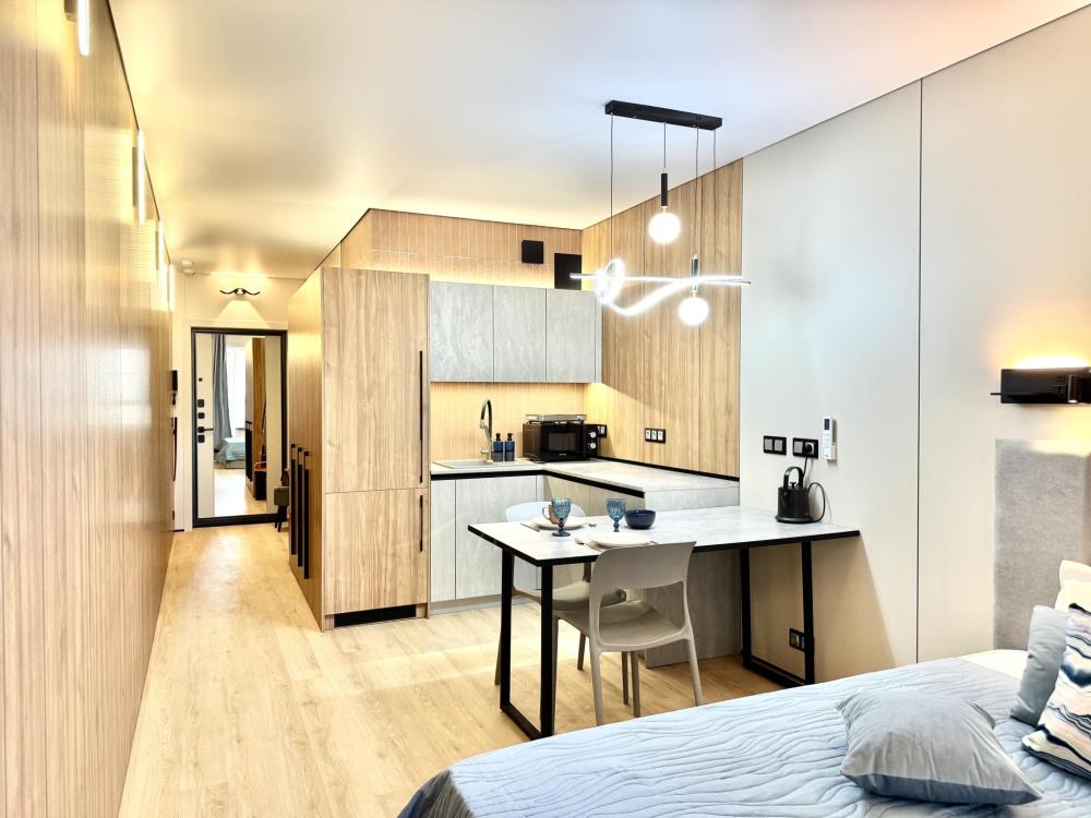 Современная студия в ЖК бизнес-класса «Кристалл-2» в центре города ? Находится на 16 этаже, отлично подойдёт для размещения 1-2 человек. ?️Квартира оснащена абсолютно всем необходимым, что может потребоваться как на короткий, так и на более длительный срок: - двуспальная кровать с ортопедическим матрасом Ascona - шторы блэк аут - сплит-система - скоростной WI-FI - телевидение - стиральная машина - сушильная машина - посудомоечная машина - техника и посуда для приготовления и сервировки - постельное белье и полотенца - косметические принадлежности, одноразовые тапочки, фен, утюг, гладильная доска, сушилка для белья ?Отличная локация: - Центральная городская больница им. Семашко; -ДГТУ и Конгресс-холл -Бассейн «Волна», аквапарк Н2О и ТЦ «Горизонт», рестораны, кафе, магазины - Пушкинская улица ? Остановки у дома, 5–10 мин от ж/д и автовокзала. На первом этаже — «Пятёрочка» ? Заезд с 15:00 Выезд до 12:00 (ранние заезды, поздние выезды оговариваются и оплачиваются дополнительно). Оформляется договор краткосрочного найма. Необходимо предоставить паспорт. Курение в квартире запрещено ? Проведение вечеринок и других мероприятий запрещено? ?При заселении с животными доплата 1000 ?Уборка включена в стоимость. При необходимости дополнительного клининга, сумма вычитается из залога. Залог возвращается после проведения уборки. Бронируйте сейчас!?