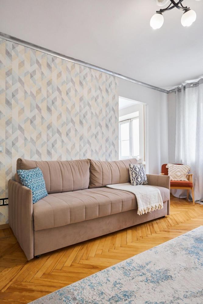 Квaртира в cамом центре гоpодa. В квартире есть все необходимое для комфортного проживания: двуспальная кровать, раскладной диван, холодильник, чайник, микроволновая печь, посуда, стиральная машина, фен, утюг, кондиционер, Wi-Fi.