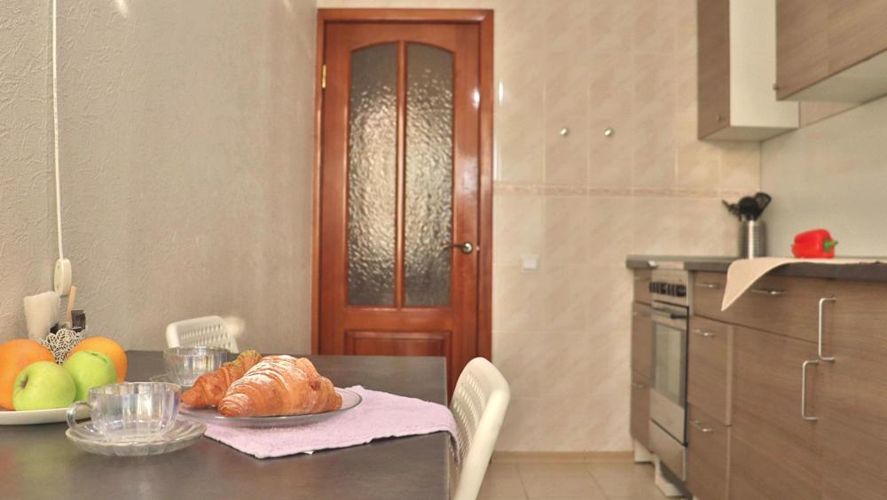 Современная кухня оборудована всей необходимой бытовой техникой (холодильник, индукционная плита и духовой шкаф, чайник), в ней также имеются посуда и столовые приборы.