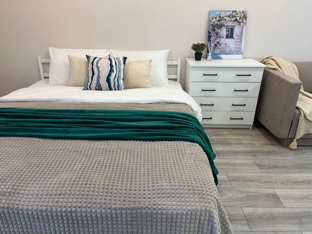 В квартире Вас ждут удобная двуспальная кровать со свежим постельным бельем.