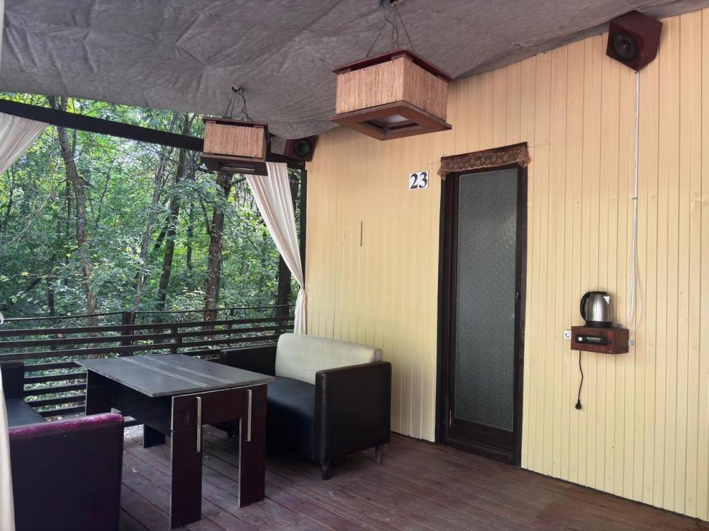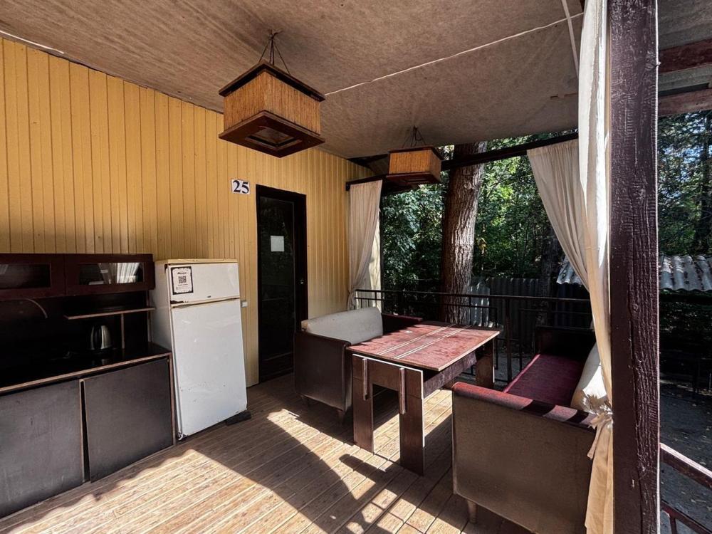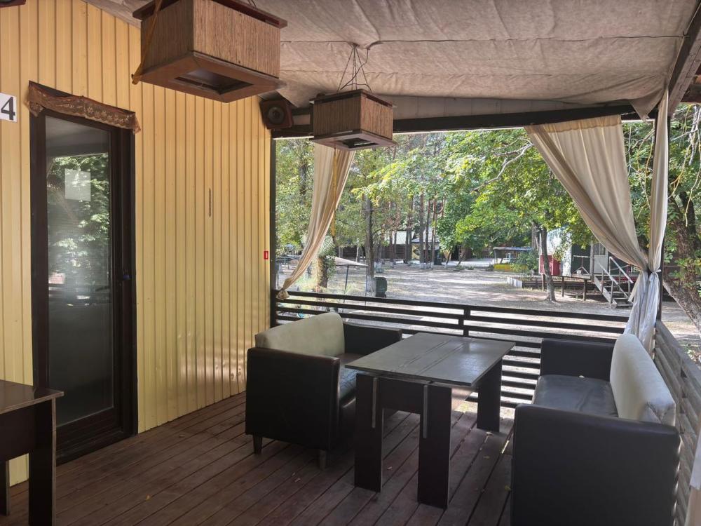 Просторный дом общей площадью 100 кв.м. для размещения до 10-ти гостей. Большой домик со всеми удобствами, тремя спальными комнатами и собственной, комфортной террасой, с большим пространством и мягкой мебелью. Терраса вместимостью до 35 человек.