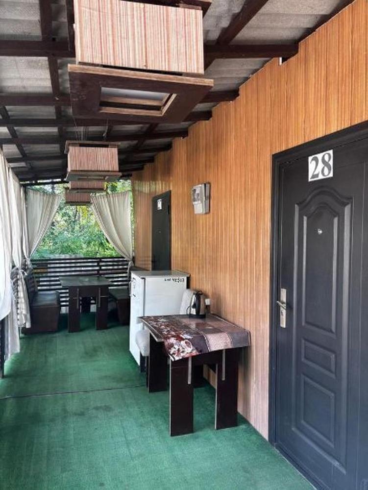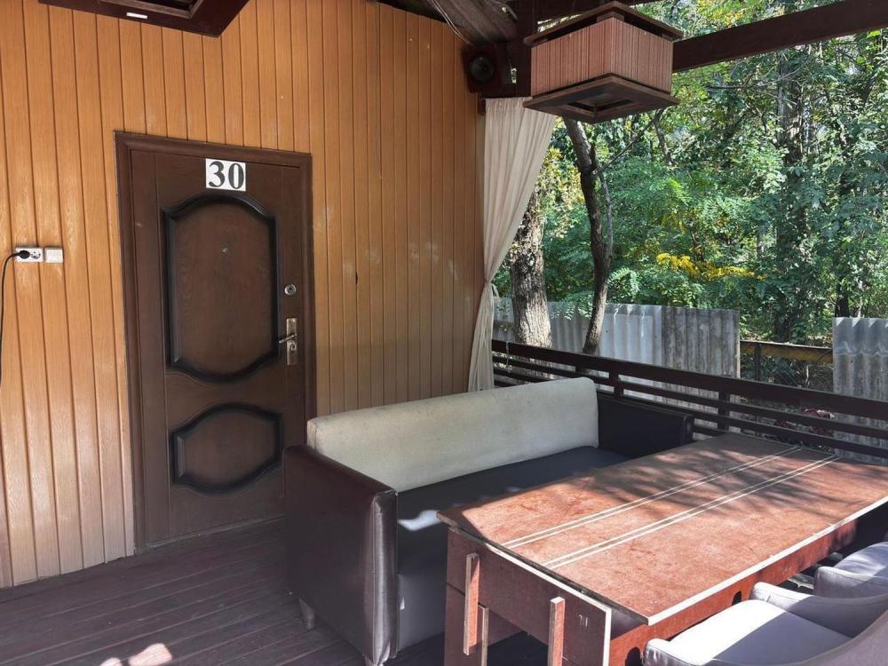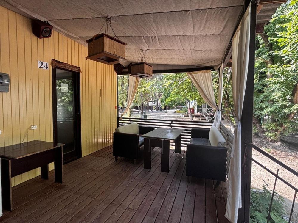 Номера люкс с террасой общей площадью 18 кв.м. для размещения до 2-х гостей. В номерах большая двуспальная кровать, свежий ремонт, холодильник и кондиционер, сан. узел с горячей водой и душевой кабиной, а также терраса с мягкими диванами.