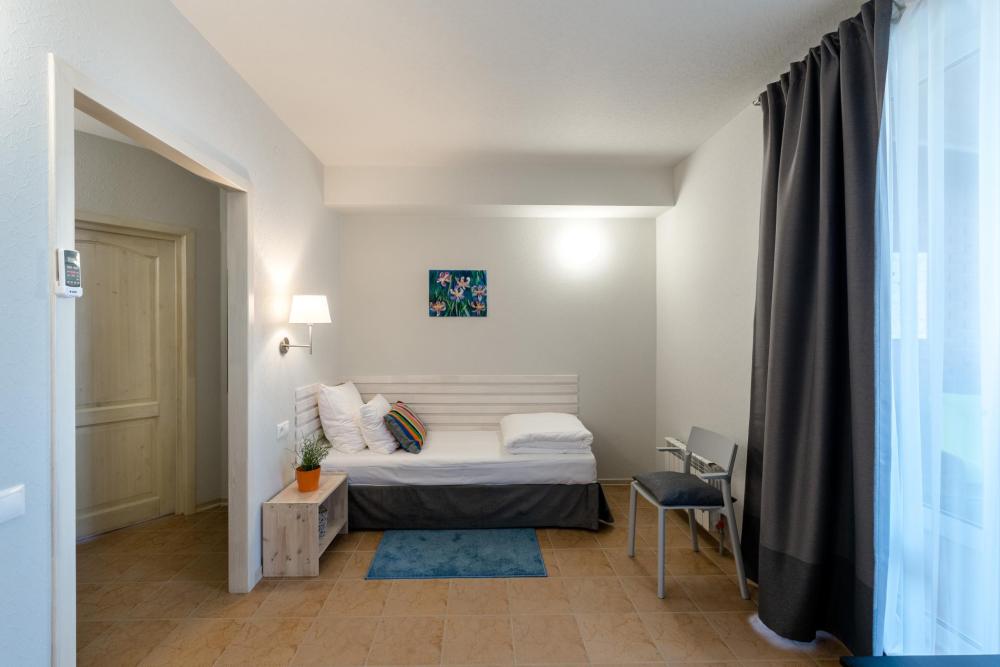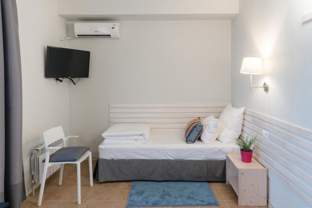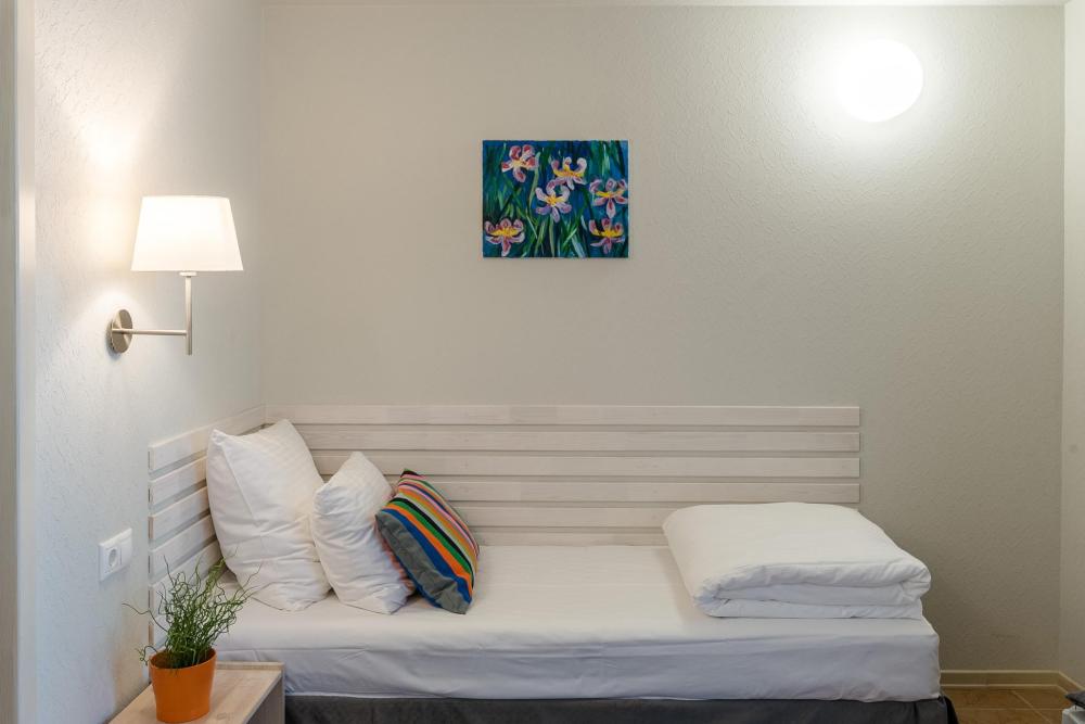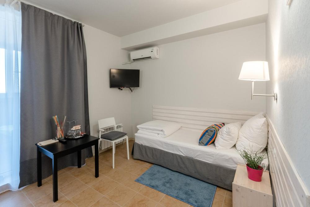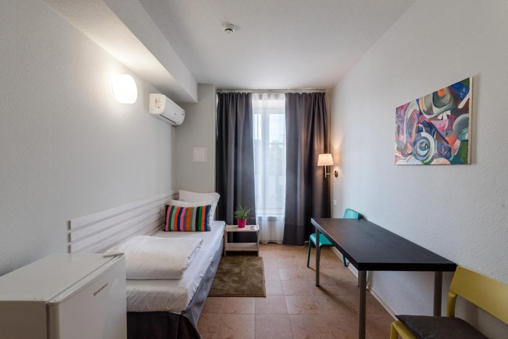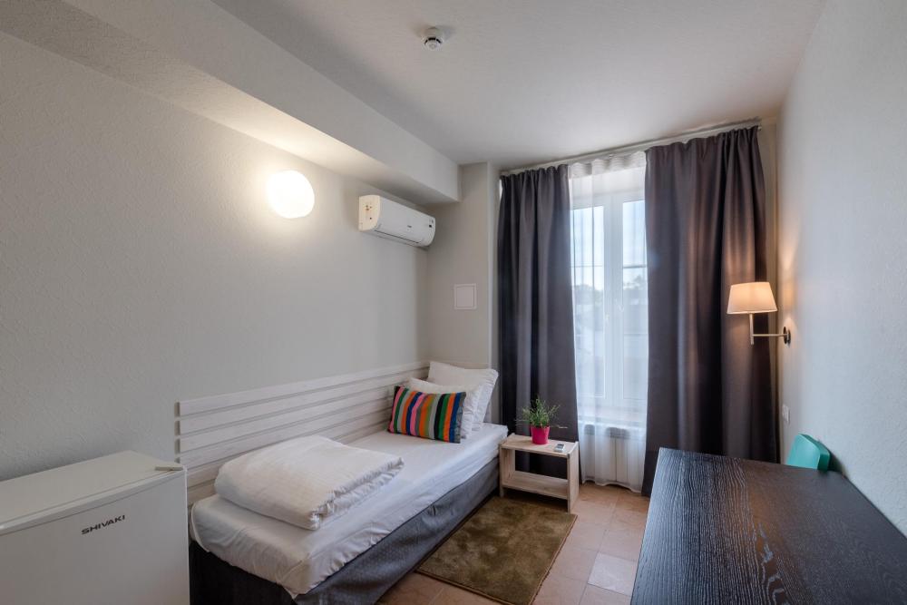 Стандартный одноместный номер с односпальной кроватью и собственной ванной комнатой. В комнате есть телевизор, кондиционер, фен, полотенца, душевые принадлежности, тапочки, зубной набор.