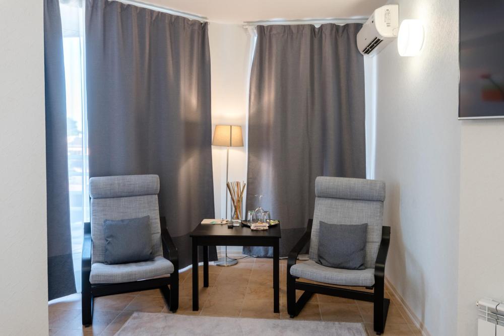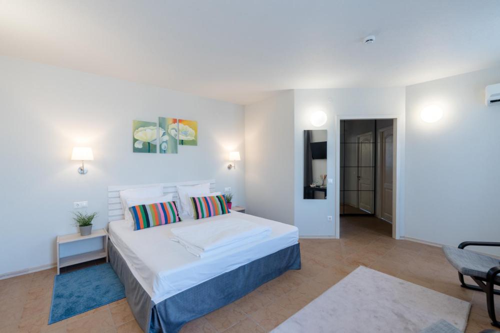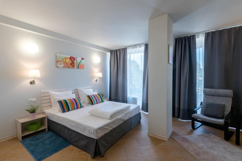 Двухместная комната с кроватью king size и собственной ванной комнатой и с балконом. В комнате есть телевизор, кондиционер, фен, полотенца, душевые принадлежности, тапочки, зубные наборы. Комната предназначена для проживания двух гостей, с возможностью установки дополнительного места за отдельную плату. Один ребенок до 4 лет включительно может проживать бесплатно без предоставления дополнительного места.
