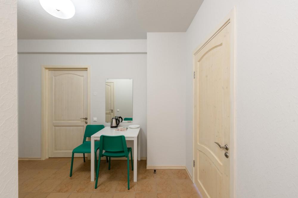 Двухместная комната с кроватью king size и собственной ванной комнатой. В комнате есть телевизор, кондиционер, фен, полотенца, душевые принадлежности, тапочки, зубные наборы. Комната предназначена для проживания двух гостей, с возможностью установки дополнительного места за отдельную плату. Один ребенок до 4 лет включительно может проживать бесплатно без предоставления дополнительного места.