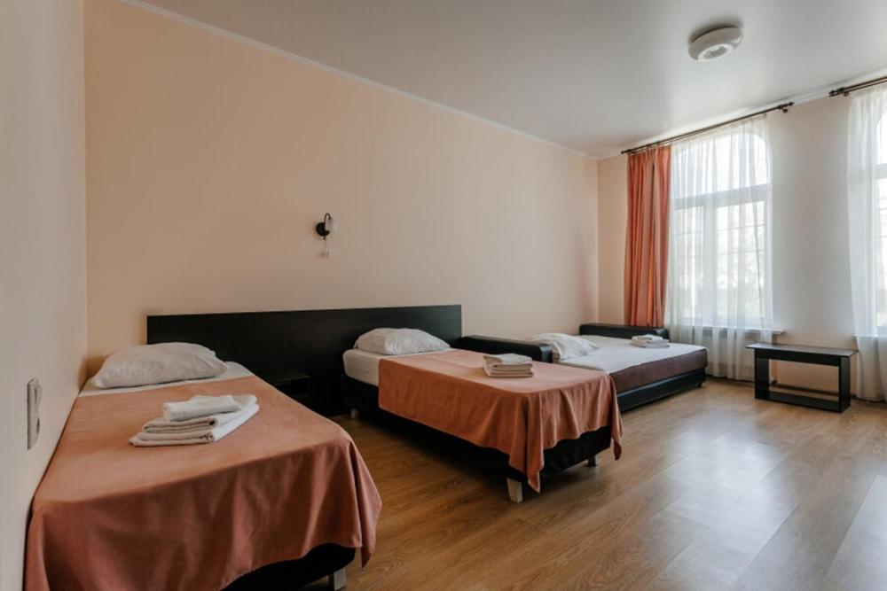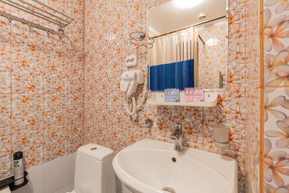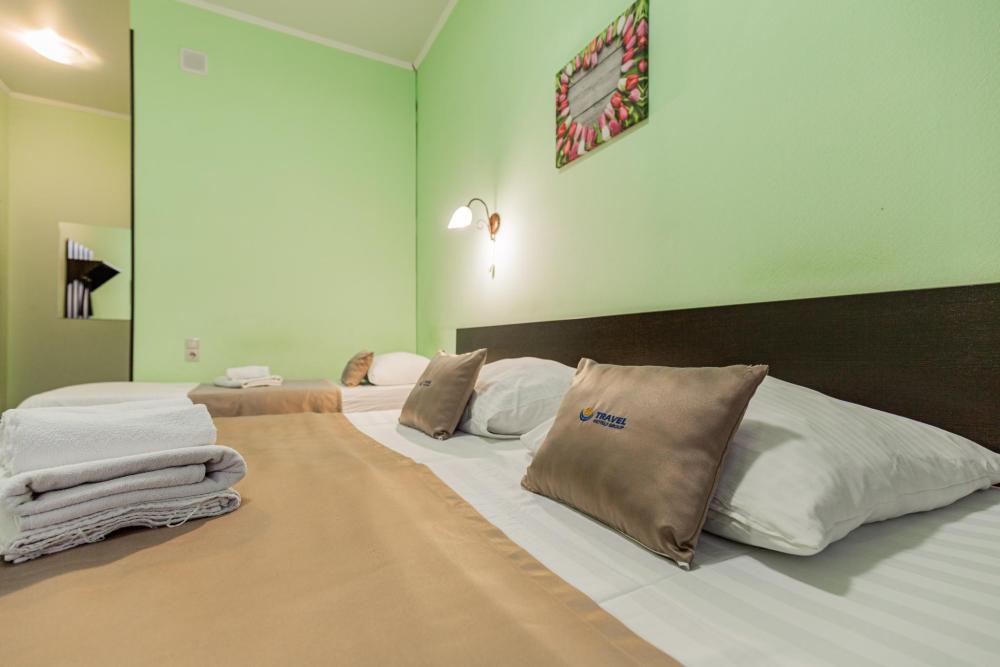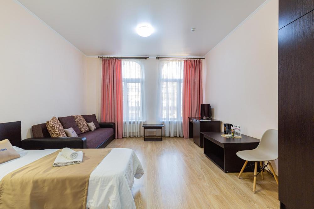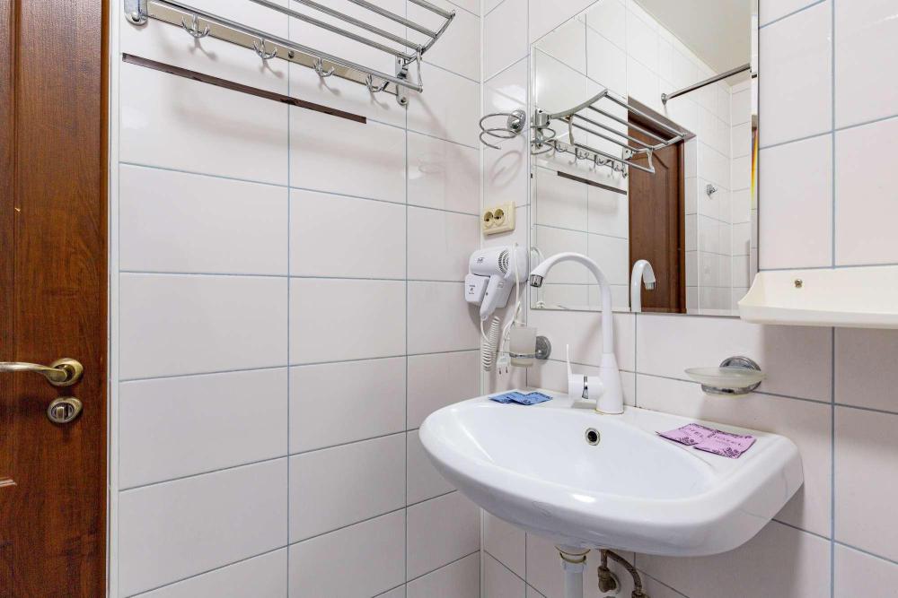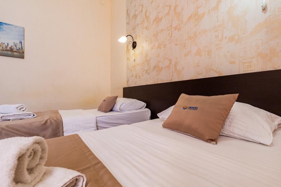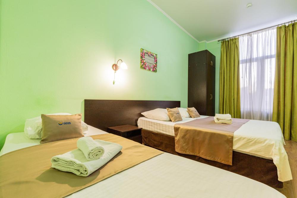 3х-местный номер Стандарт оснащён всем необходимым для комфортного проживания 3х гостей. Спальные места: -двуспальная кровать и односпальная кровать (с возможностью сделать 3 отдельные кровати) Оснащение и мебель: Кондиционер Уголок для отдыха Шкаф/гардероб Рабочий стол. Ванная комната: Собственный санузел с душем Фен, полотенца, бесплатные туалетные принадлежности Туалет. Удобства для приготовления чая и кофе: Электрический чайник Холодильник Развлечения и связь: Телевизор с кабельным и спутниковым ТВ Wi-Fi