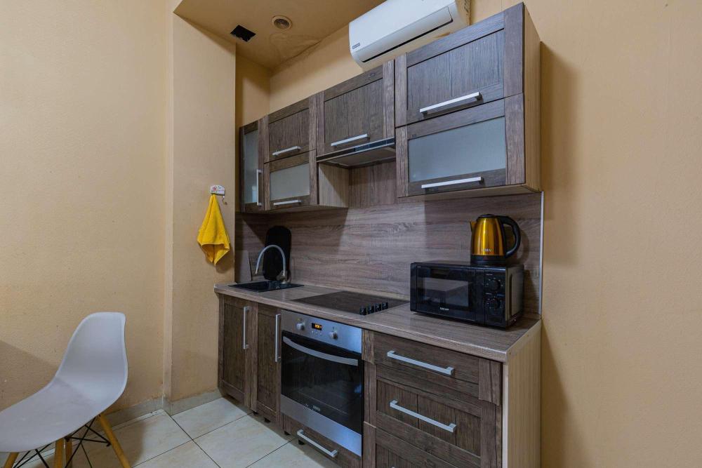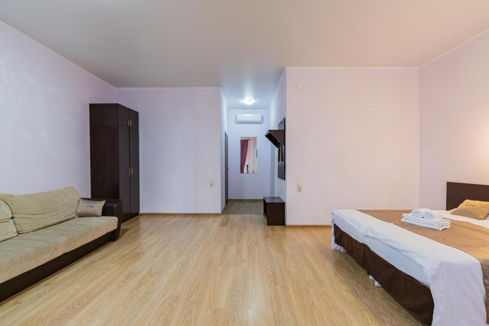 Номер студия с кухней. В номере 1 двуспальная кровать.