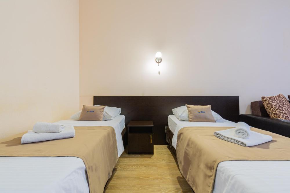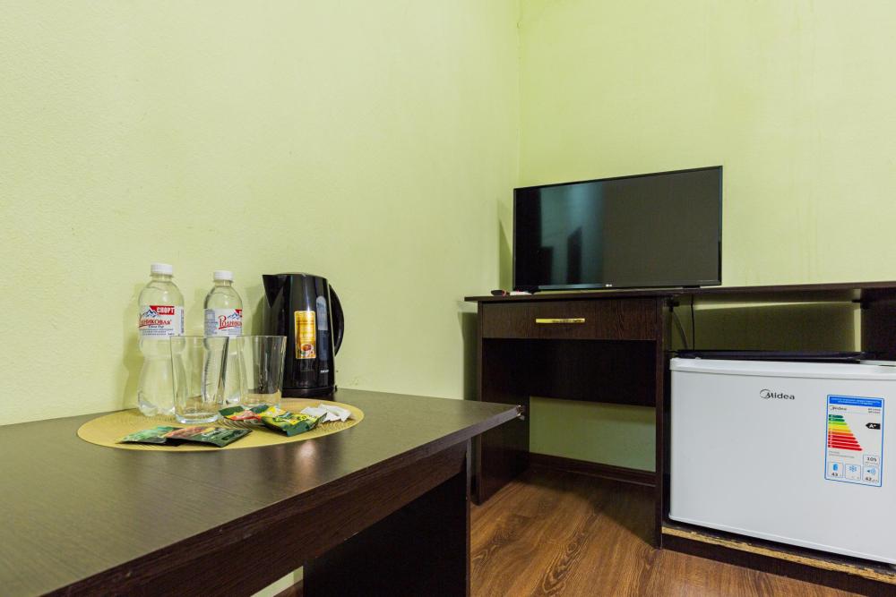 В номере есть все удобства : Холодильник,телевизор ЖК,система отопления,Сплит-Система ,2 раздельные кровати,душевая и туалет в номере,в стоимость номера входит вкусный завтрак,есть диван-Кровать,доплата за доп.место отдельно,шкаф с вешалками,все косметические принадлежности ,стол рабочий,2 тумбочки,бра над кроватью,полный комплект постельного белья.