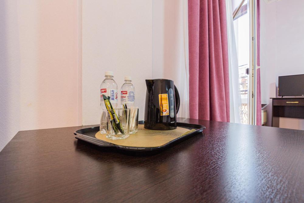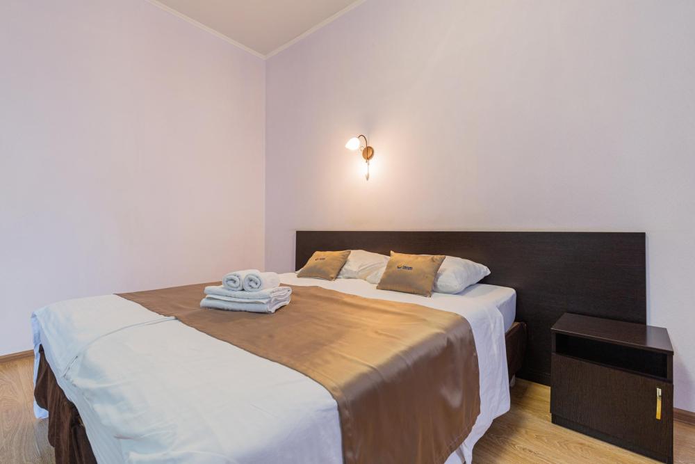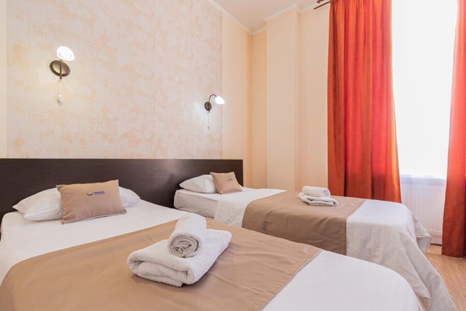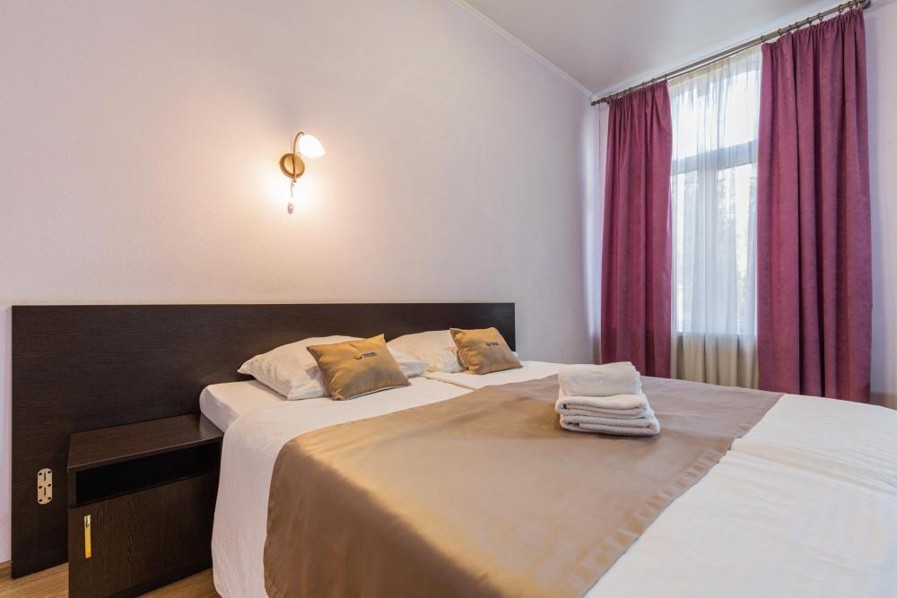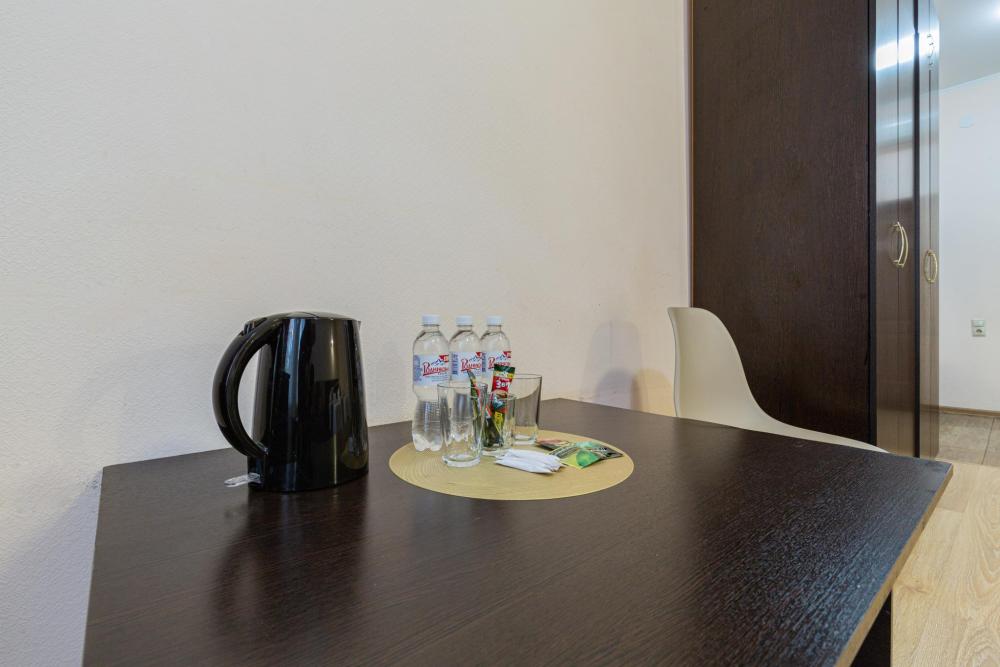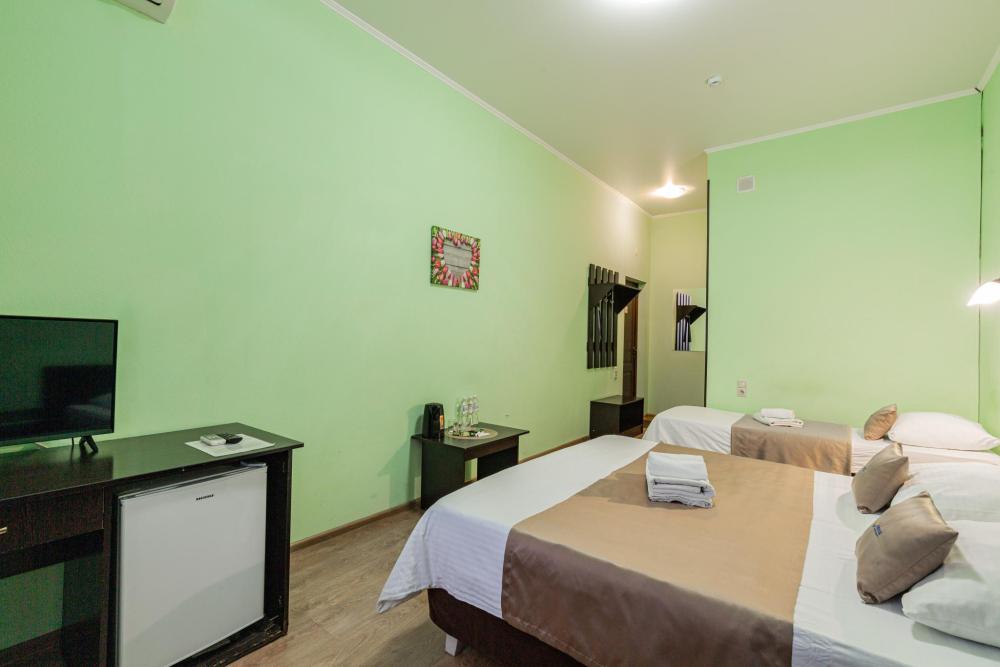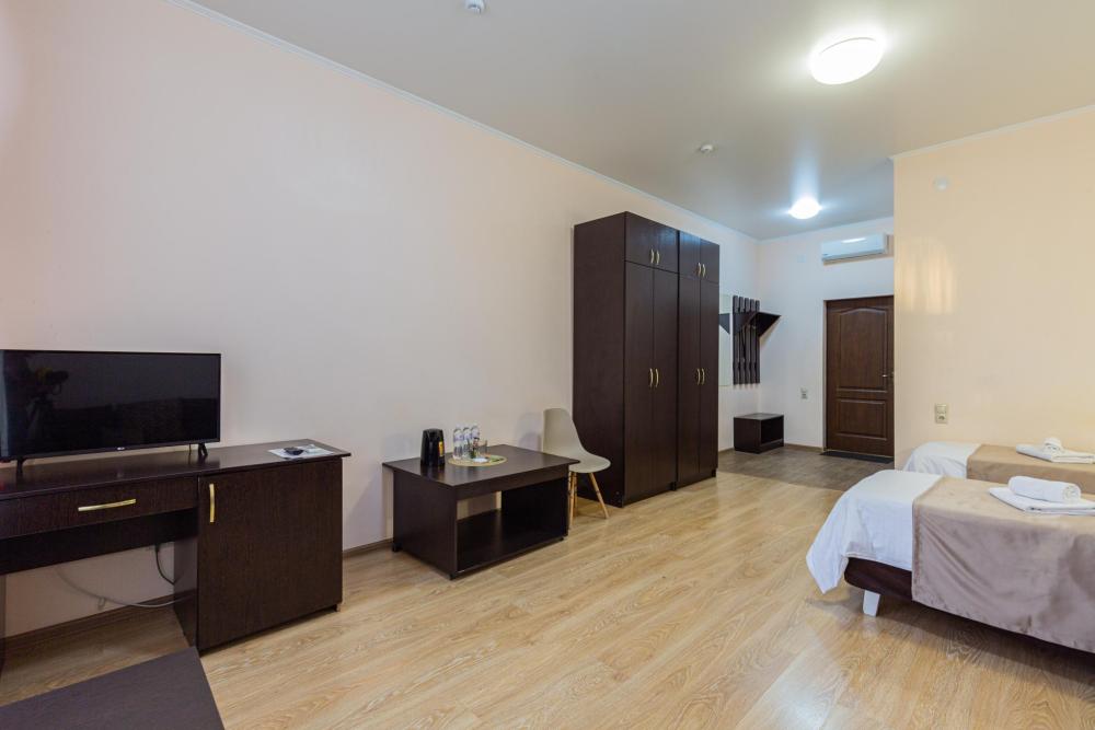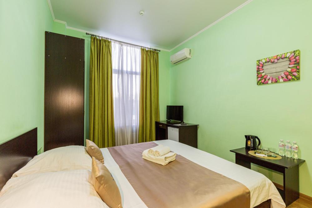 2хместный номер Стандарт оснащён всем необходимым для комфортного проживания. Спальные места: -две односпальные кровати (с возможностью сделать 1 двуспальную кровать) Оснащение и мебель: Кондиционер Уголок для отдыха Шкаф/гардероб Рабочий стол. Ванная комната: Собственный санузел с душем Фен, полотенца, бесплатные туалетные принадлежности Туалет. Удобства для приготовления чая и кофе: Электрический чайник Холодильник Развлечения и связь: Телевизор с кабельным и спутниковым ТВ Wi-Fi