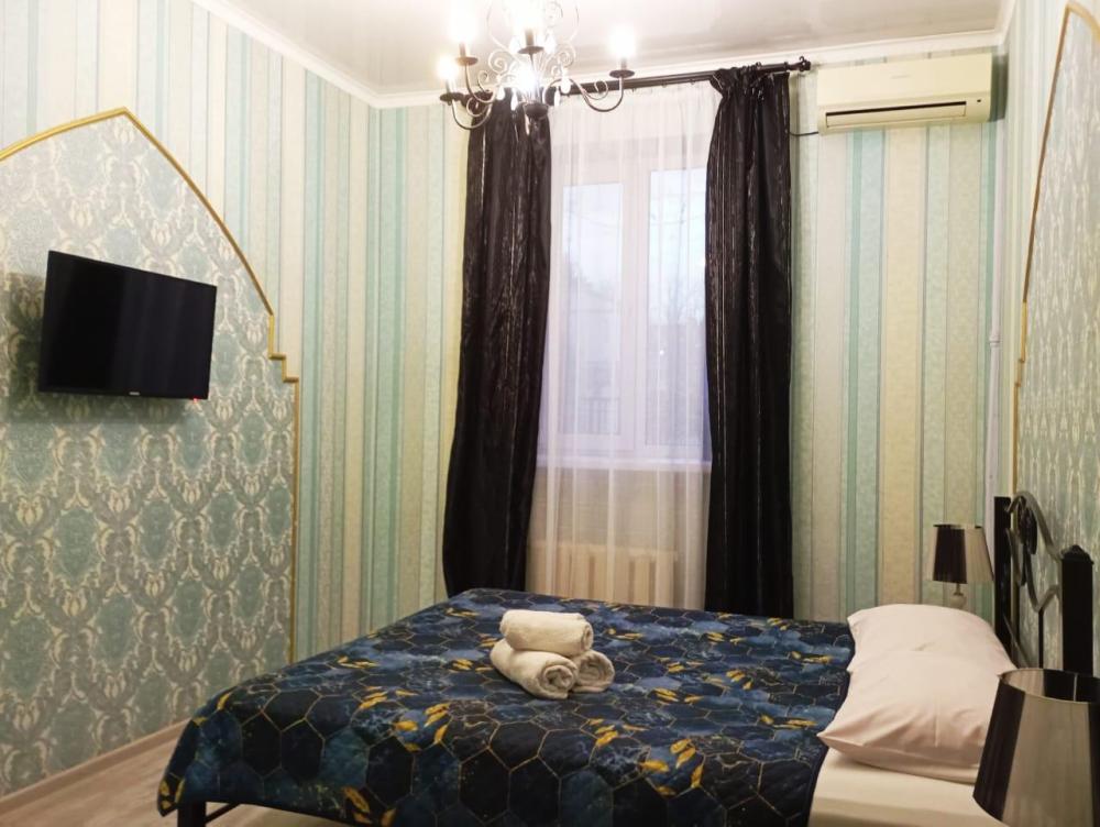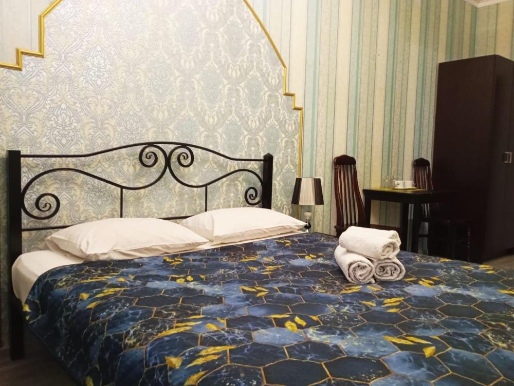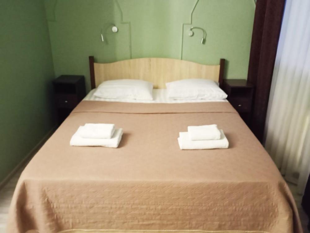 Двухместный номер с одной двуспальной кроватью и ванной комнатой. В Номере холодильник, жк-телевизор, кондиционер, чайник. Есть гардеробный шкаф стол и чайный столик.