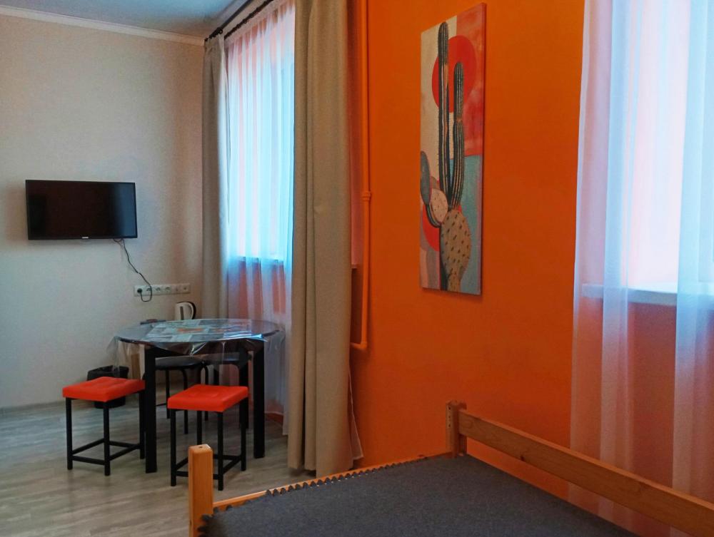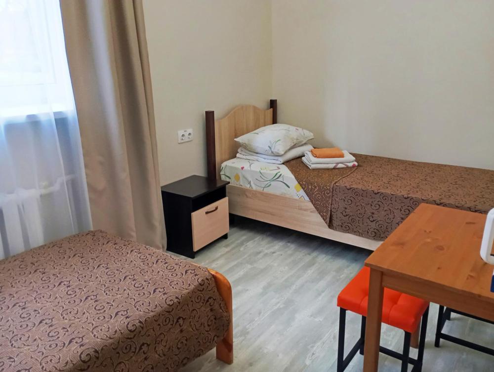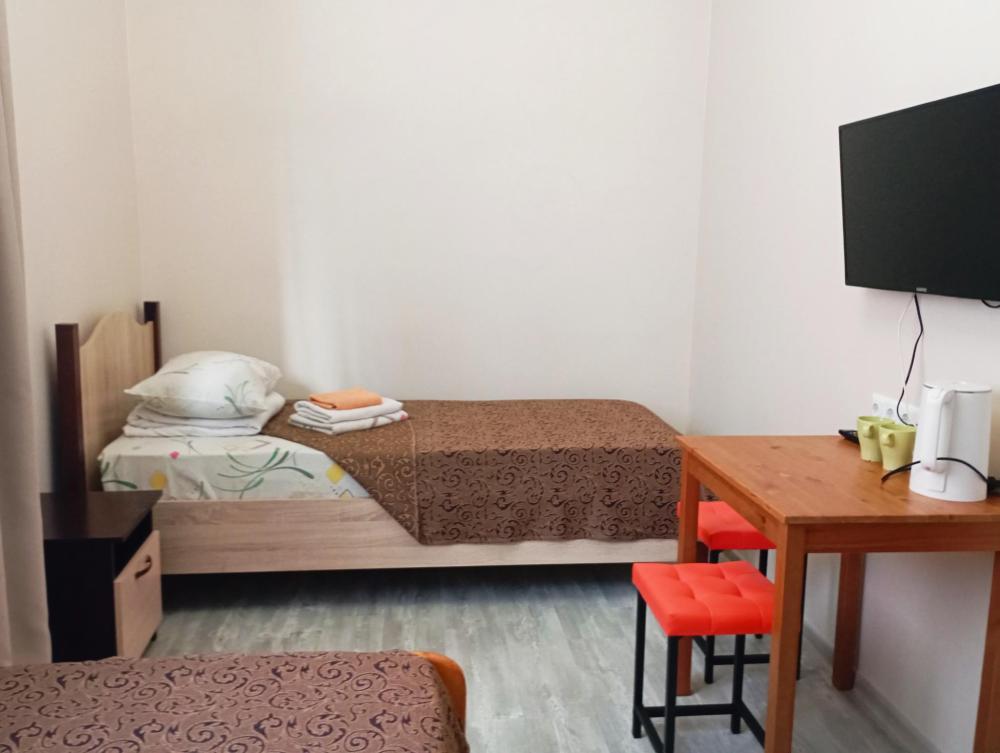 Комфортный номер с двумя раздельными кроватями , можно сдвинуть в одну двуспальную. В номере шкаф, ТВ, кондиционер,стол стулья. Душевая кабина, с/у.