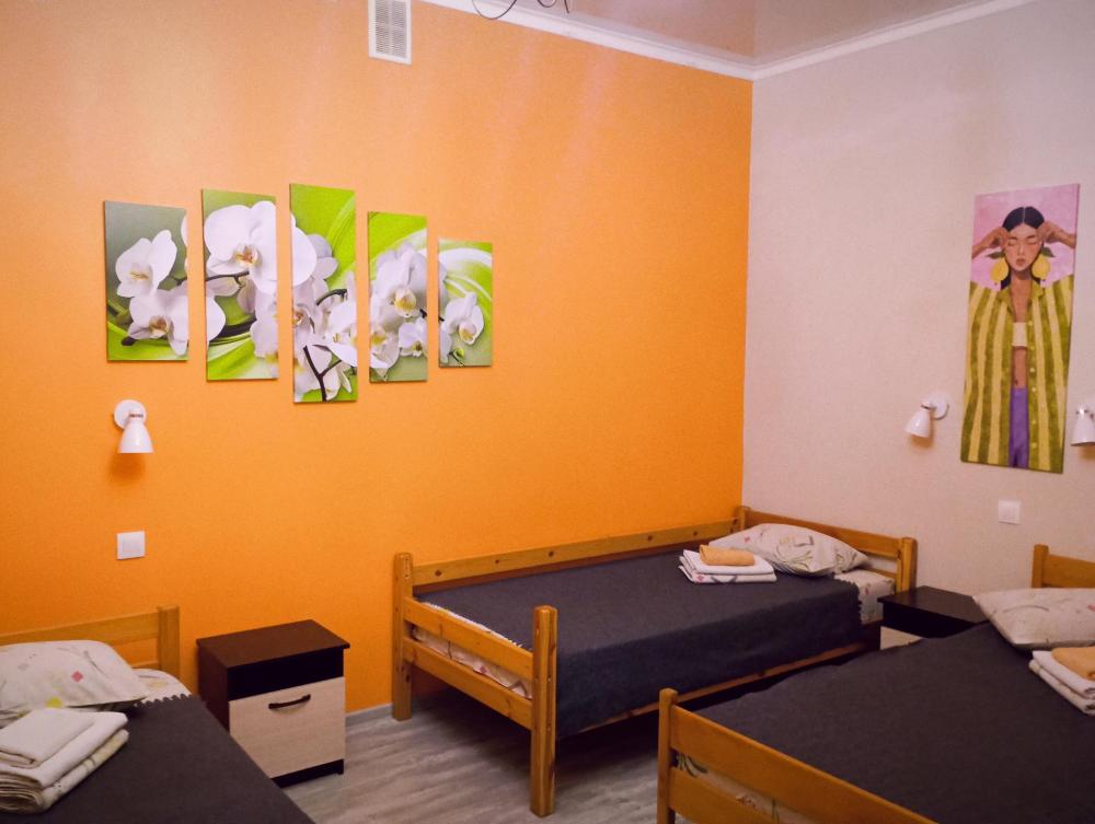 Просторный двухкомнатный номер с душем, сан.узел и умывальник. Два телевизора, чайник, два сплита. Межкомнатные двери. Номер на пять гостей. Четыре односпальные кровати и одна двуспальная кровать.