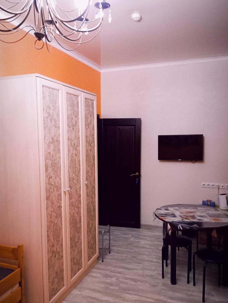 Уютный номер. Мебельная стенка с ЖК-ТВ, гардеробный шкаф, диван, рабочий стол с настольным светильником. С/У, душевая и умывальник в номере. Фен на ресепшене по запросу.