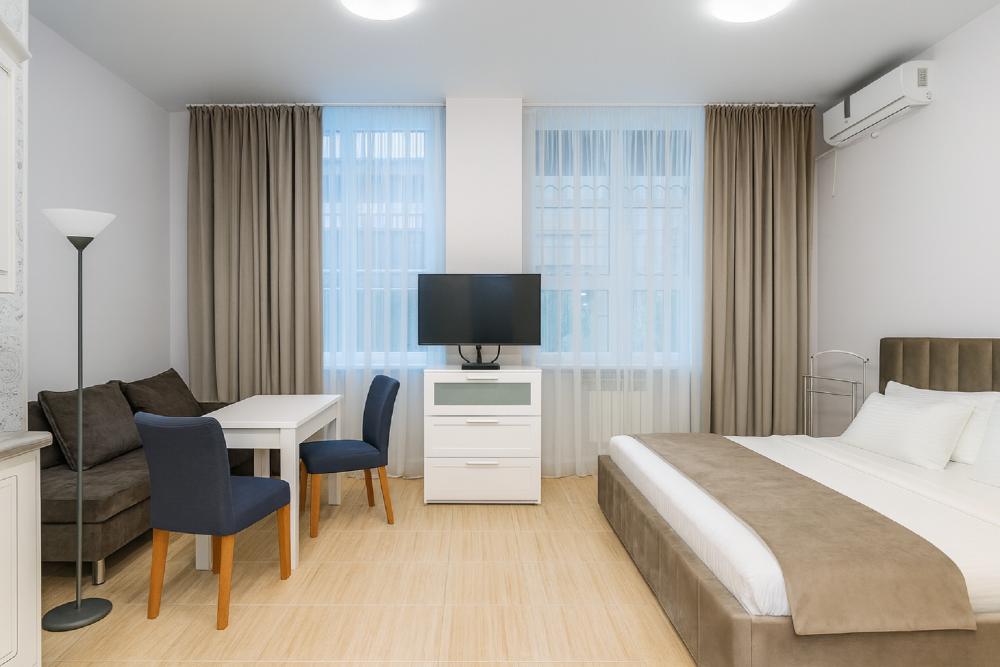 3 спальных места — двуспальная кровать и современный диван. Техника для жизни: апартаменты оснащены всем необходимым: кондиционер для идеального микроклимата в любое время года, стиральная машина, микроволновая печь (СВЧ), электрический чайник и посудомоечная машина, которая сэкономит ваше время. Функциональная кухня: здесь есть вся необходимая посуда и техника, чтобы легко приготовить завтрак или ужин. Свежесть и бодрость: современная душевая кабина, чтобы быстро и эффективно взбодриться с утра или освежиться вечером. Предоставляются: постельное бельё, полотенца, туалетные принадлежности, фен, комнатные тапочки, а также высокоскоростной Wi-Fi.