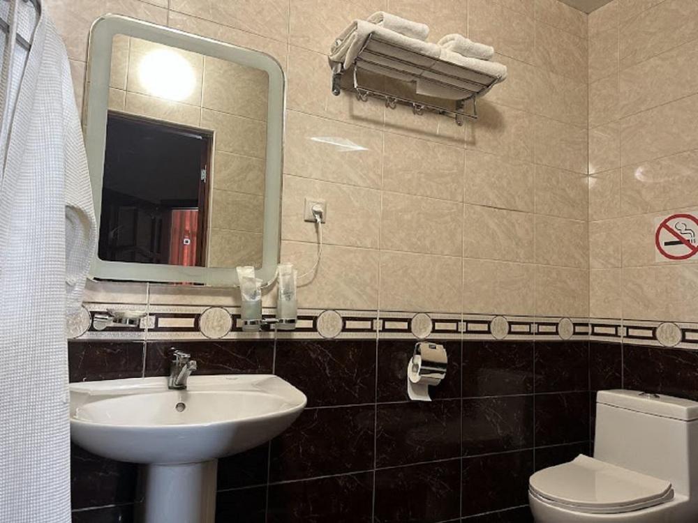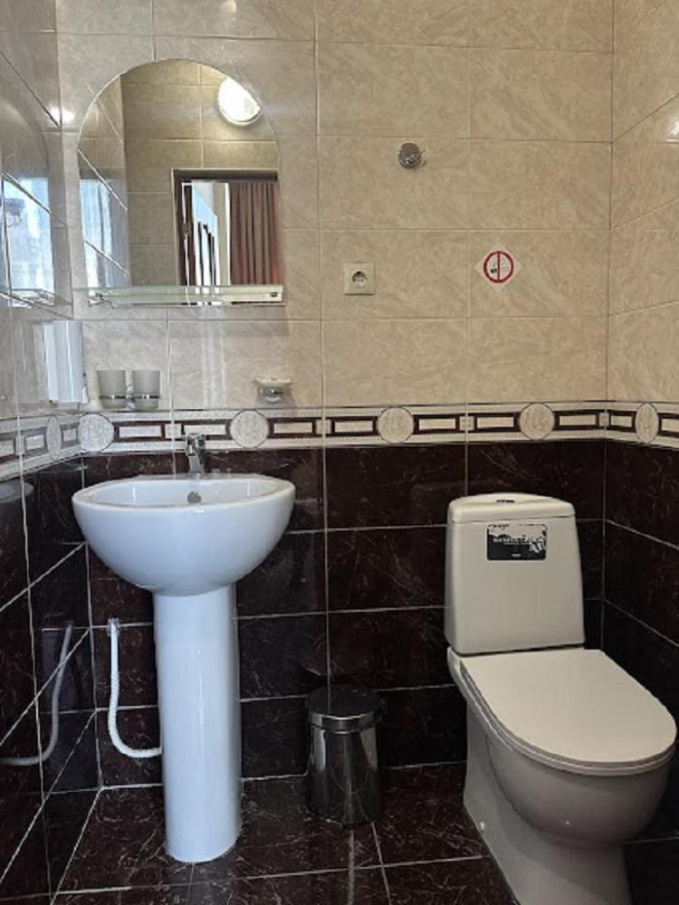 Просторный двухкомнатный номер, выполнен в уютных пастельных тонах. В номере двуспальная кровать с двумя прикроватными тумбочками, туалетный столик с зеркалом, пуф,двухспальный диван, журнальный столик,два телевизора плазма, кондиционер, холодильник, санузел с душевым отделением, два халата, тапочки, туалетные принадлежности (гель,шампунь,мыло, зубные и бритвенные наборы), при входе вешалка. Во второй комнате 2-х спальный диван, есть обеденная зона (стол+ уголок).