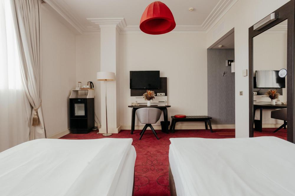 Стандартный номер с двумя односпальными кроватями. К услугам гостей система кондиционирования, телевизор с кабельными и спутниковыми каналами и набор для приготовления чая или кофе. Гости, прибывшие с целью делового визита оценят наличие эргономичного рабочего пространства в номере с письменным столом, сейфом для ноутбука и бесплатным доступом в Интернет Wi-Fi. В ванной комнате установлена душевая кабина с эффектом тропического душа. К услугам гостей халат и тапочки, набор полотенец и комплект косметических принадлежностей. Также в стоимость номера входит посещение тренажерного зала и сауны отеля.