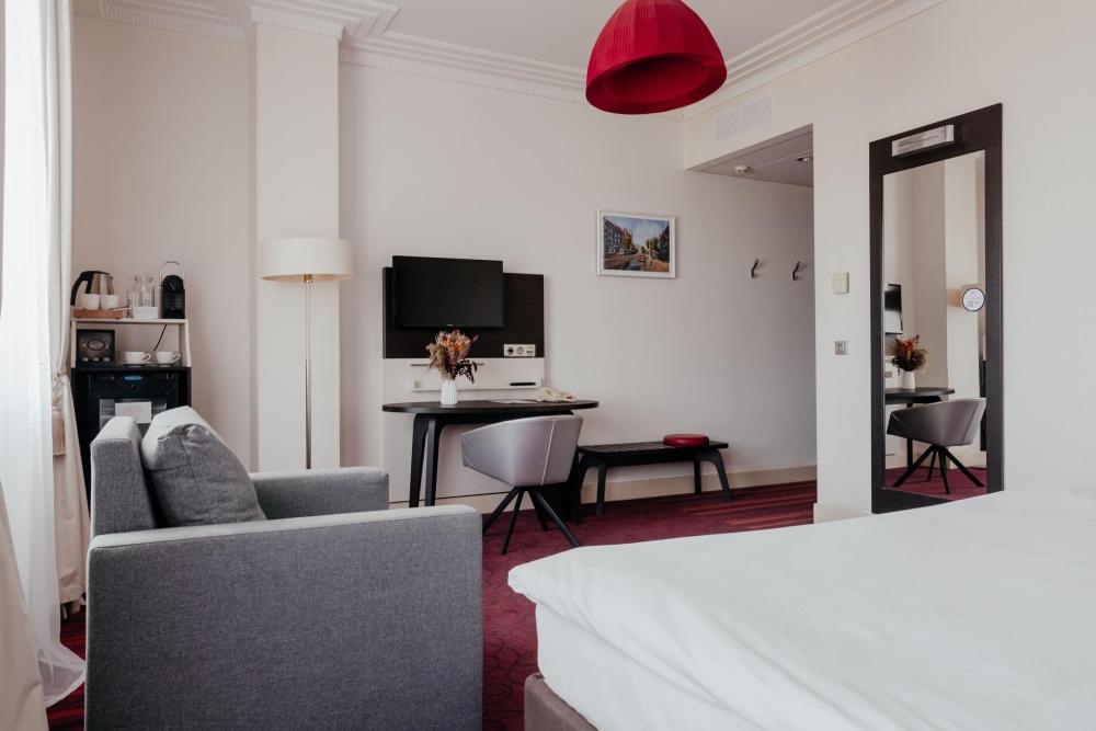 Стандартный номер с одной двуспальной кровать.К услугам гостей система кондиционирования, телевизор с кабельными и спутниковыми каналами и набор для приготовления чая или кофе. Гости, прибывшие с целью делового визита оценят наличие эргономичного рабочего пространства в номере с письменным столом, сейфом для ноутбука и бесплатным доступом в Интернет Wi-Fi. В ванной комнате установлена душевая кабина с эффектом тропического душа. К услугам гостей халат и тапочки, набор полотенец и комплект косметических принадлежностей. Также в стоимость номера входит посещение тренажерного зала и сауны отеля.