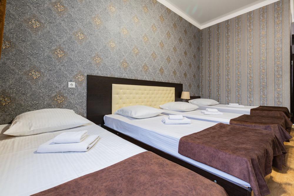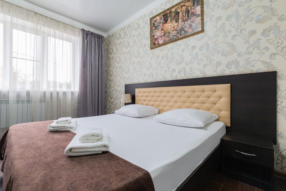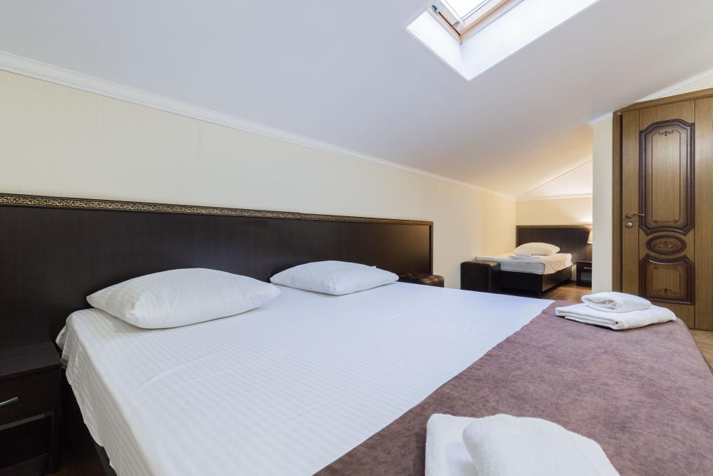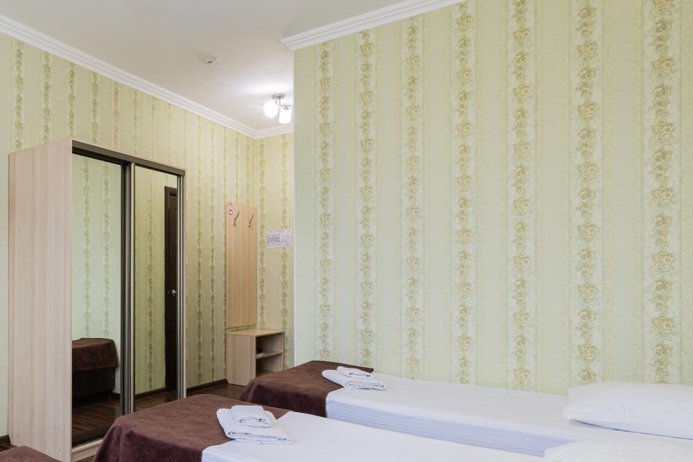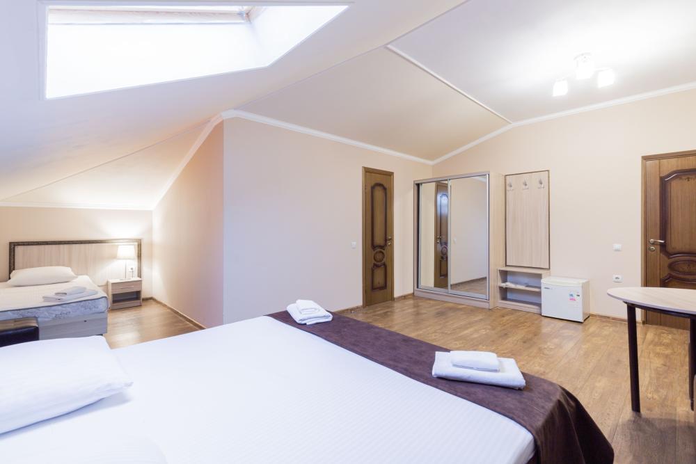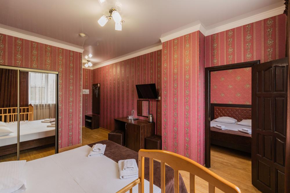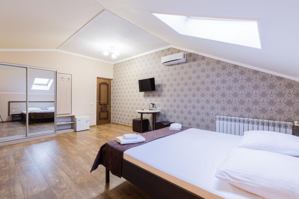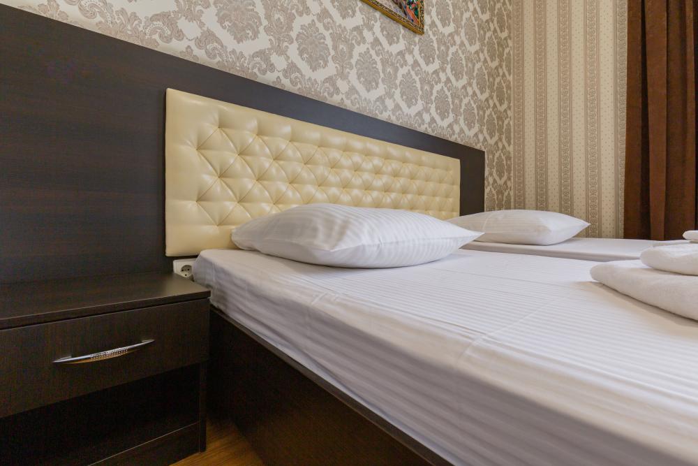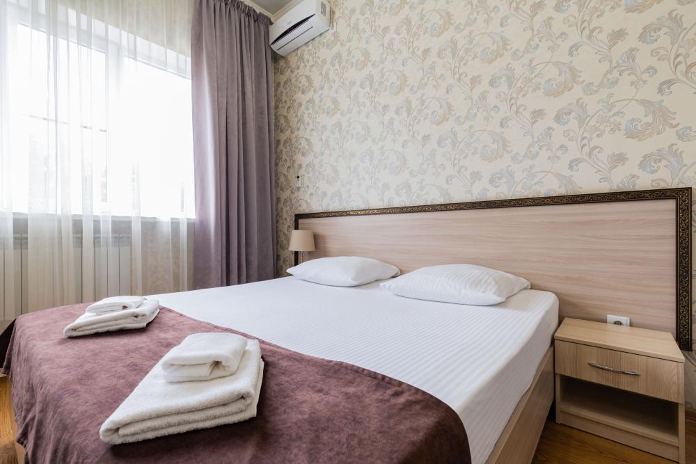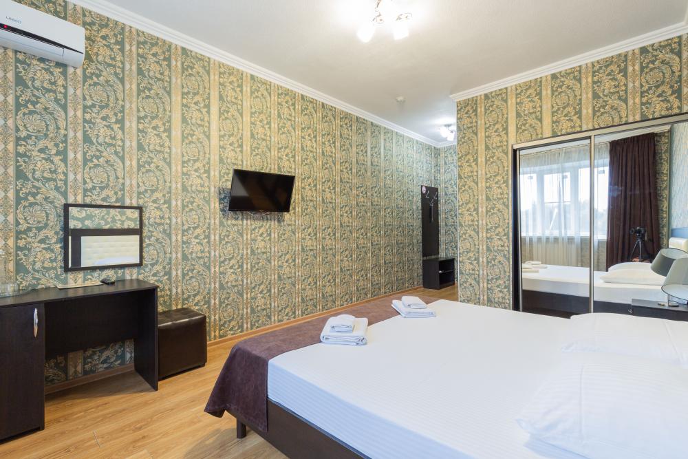 Двухкомнатный номер, категории стандарт. В номере: две двухспальных кровати, шкаф для одежды, тумбочки, кондиционер, телевизор,