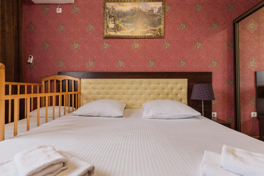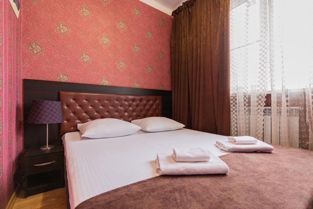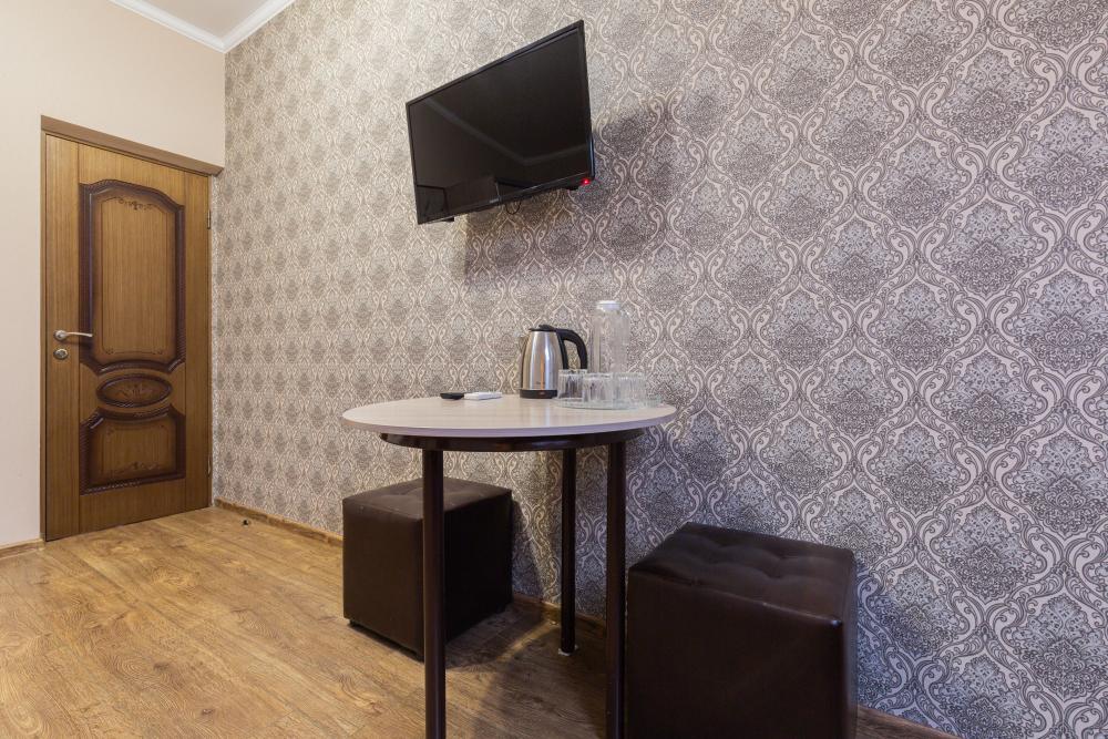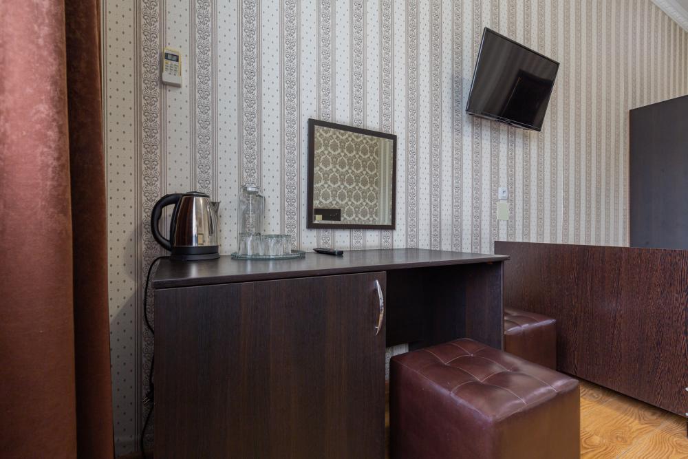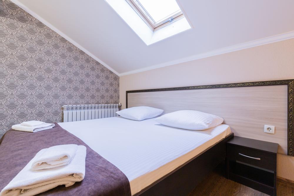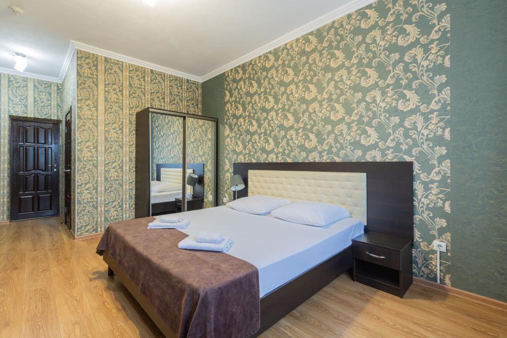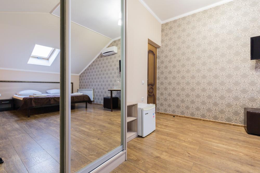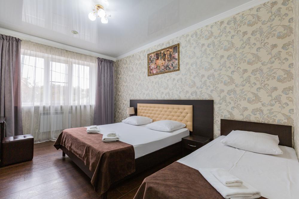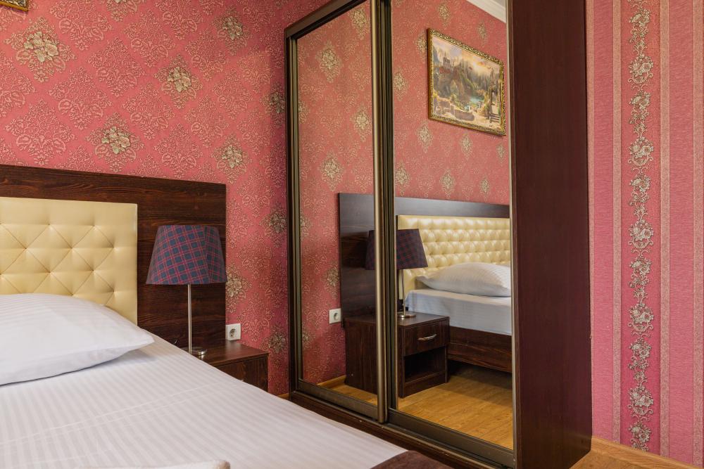 Двухкомнатный номер, категории стандарт. В номере: две двухспальных кровати, шкаф для одежды, тумбочки, кондиционер, телевизор,