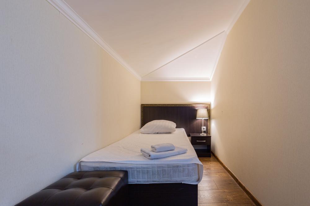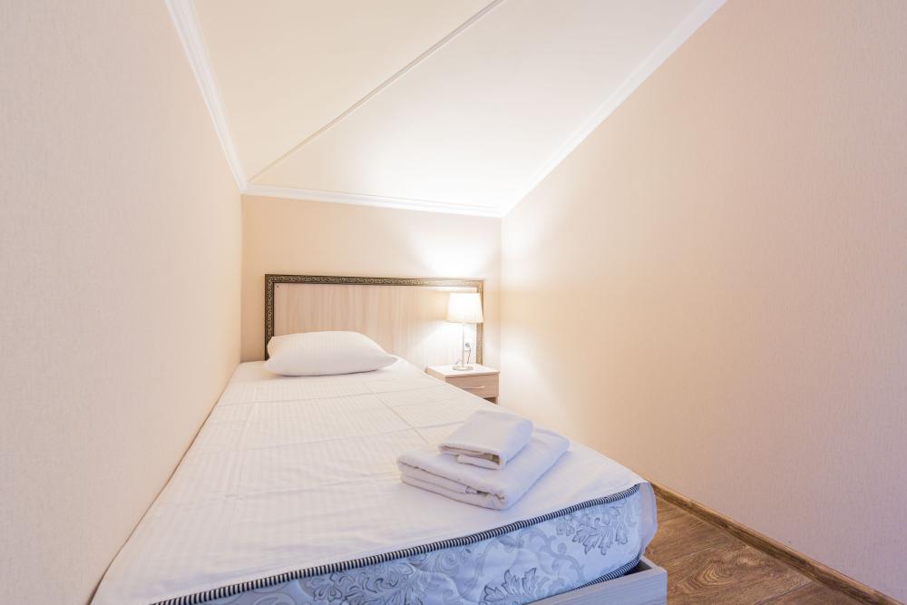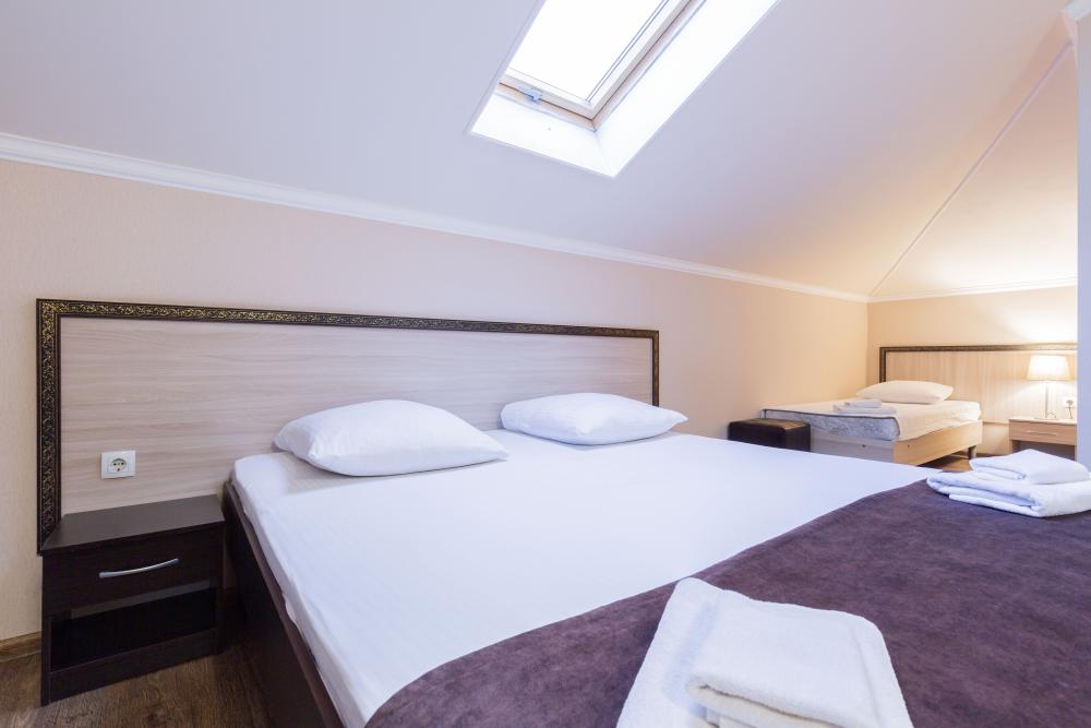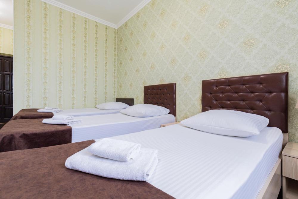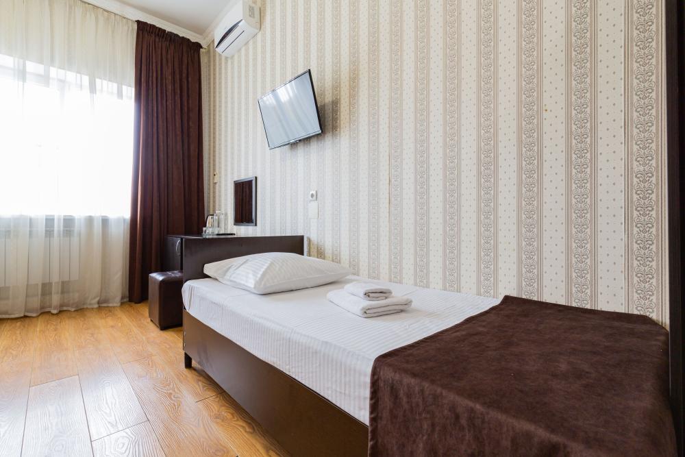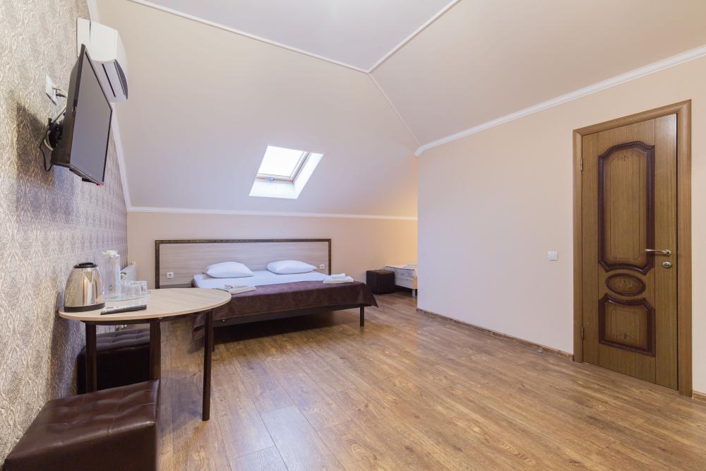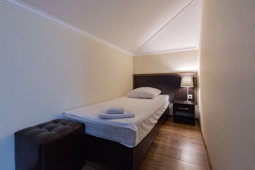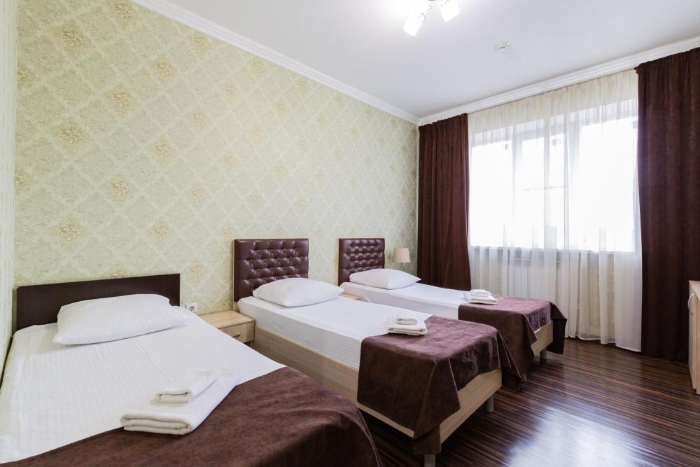 Стандартный номер вместимостью 3 человека. В номере: три односпальные кровати, тумбочки, вешалка для одежды, шкаф, стол, телевизор, холодильник, ванная комната