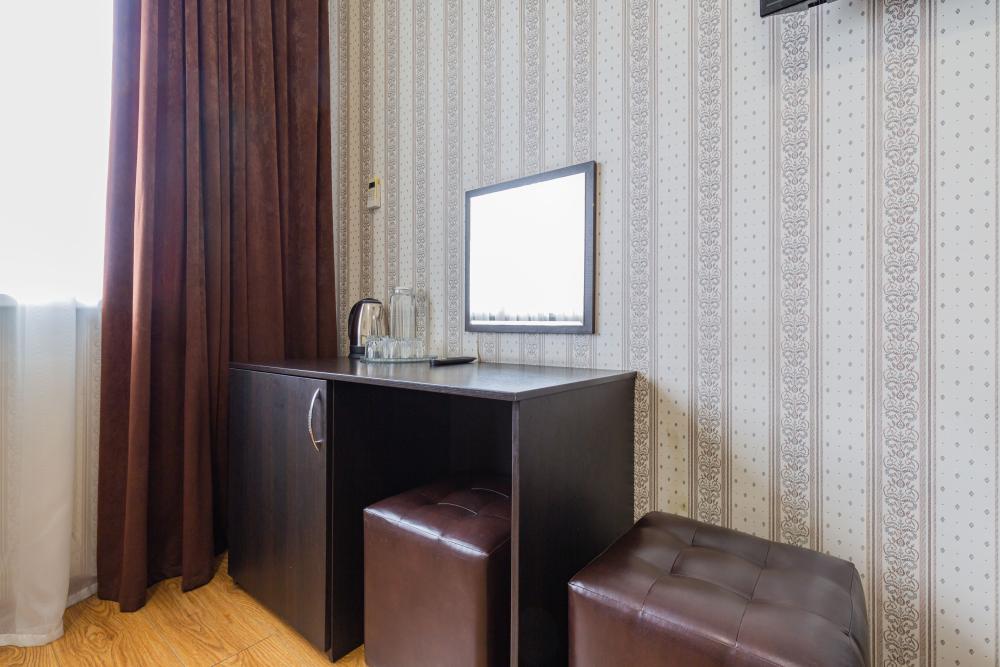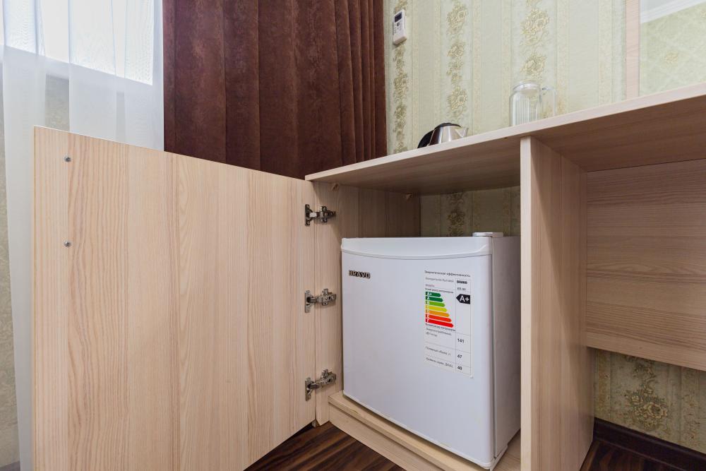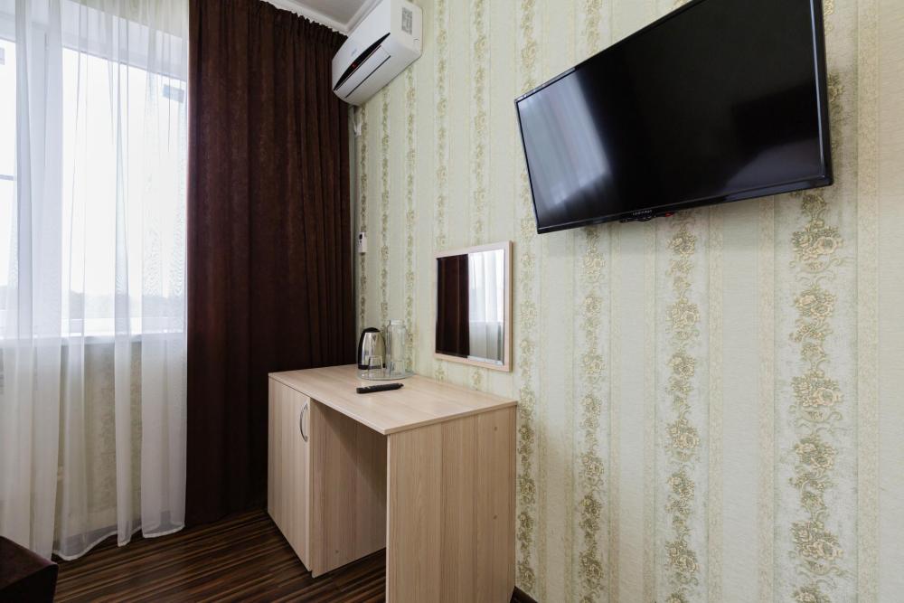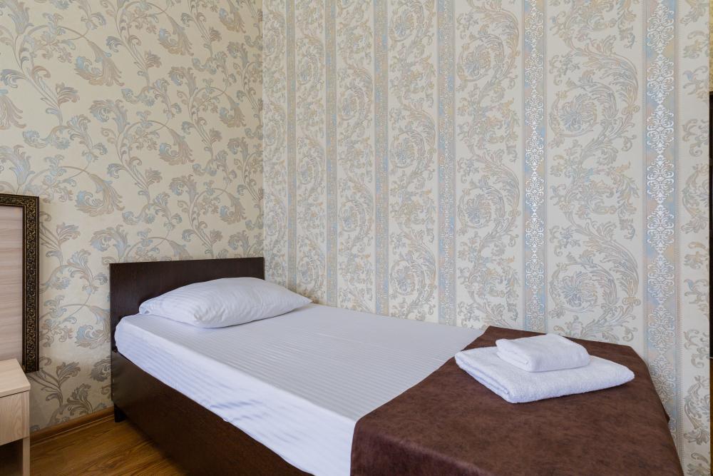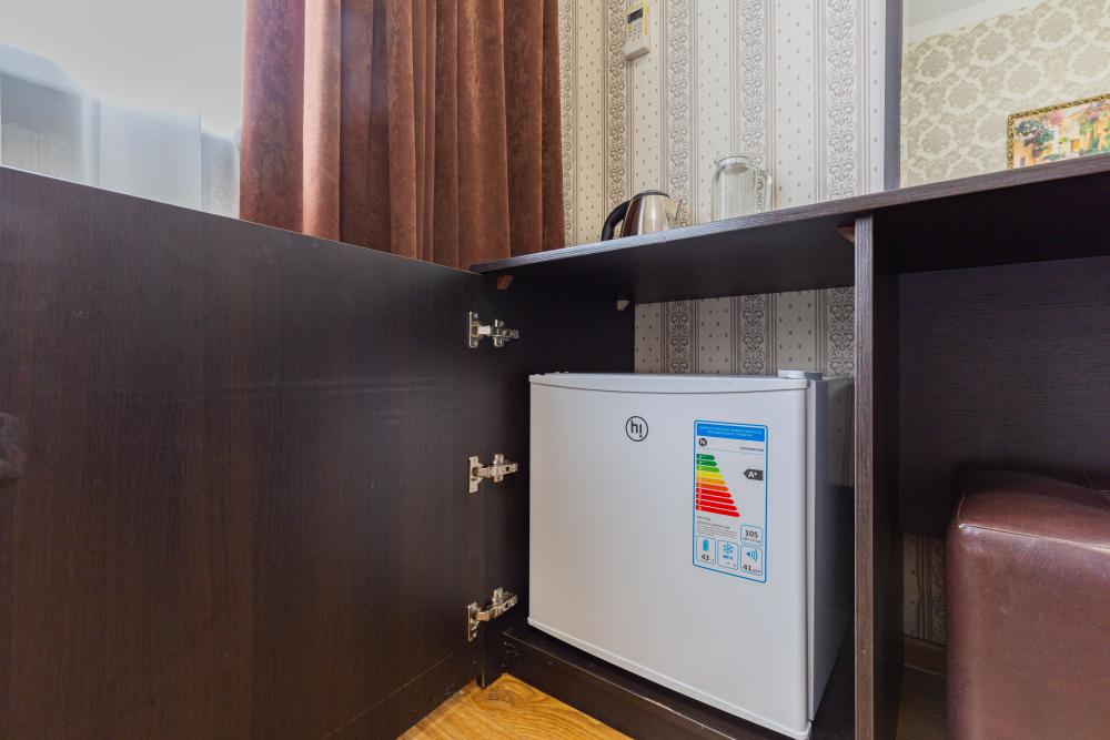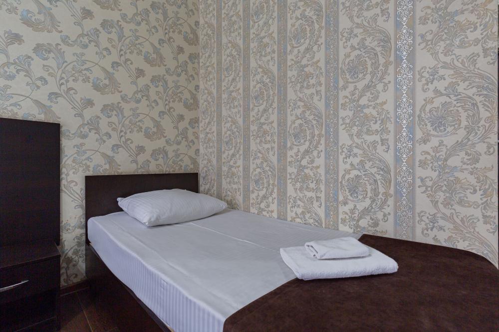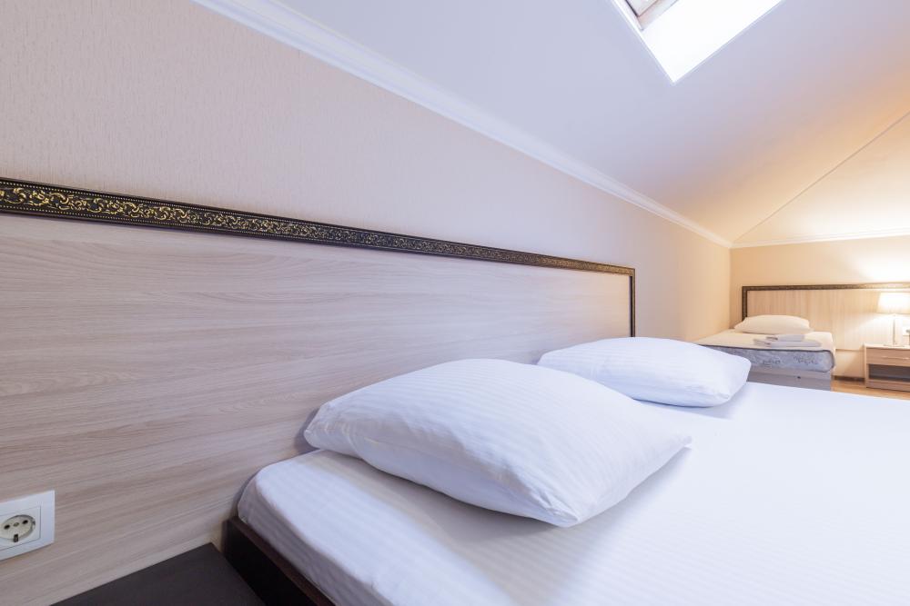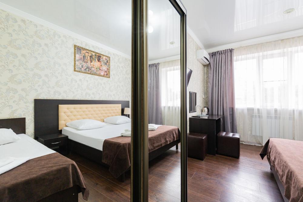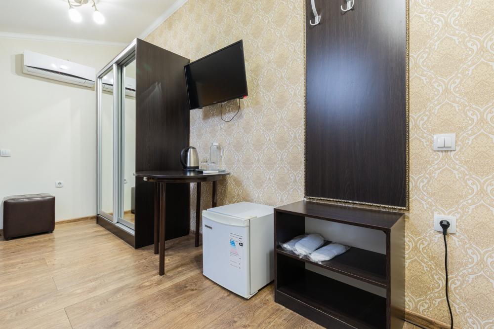 Стандартный номер вместимостью 3 человека. В номере: три односпальные кровати, тумбочки, вешалка для одежды, шкаф, стол, телевизор, холодильник, ванная комната