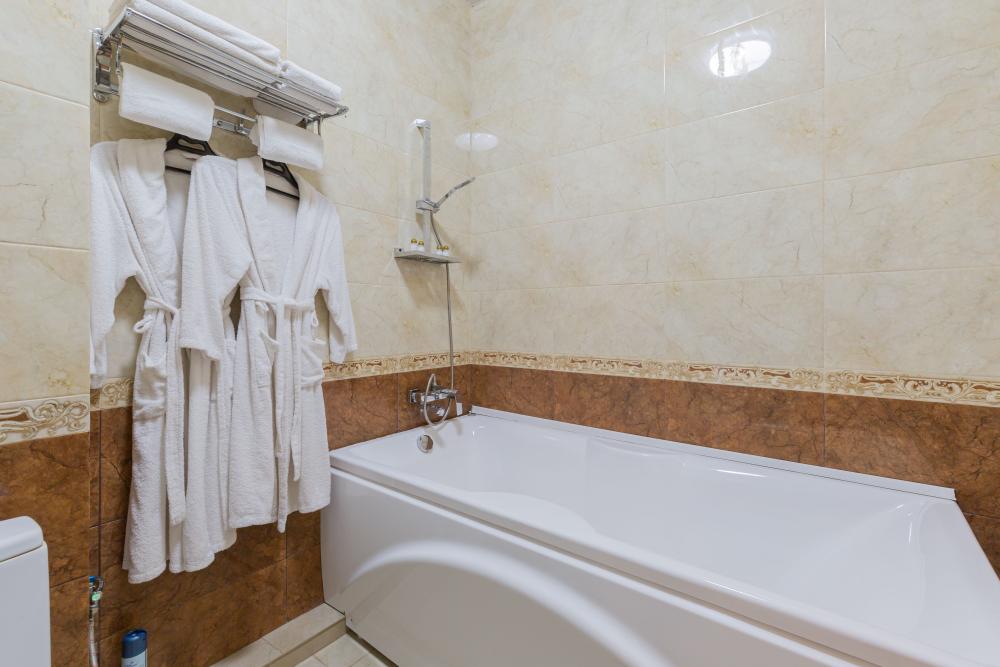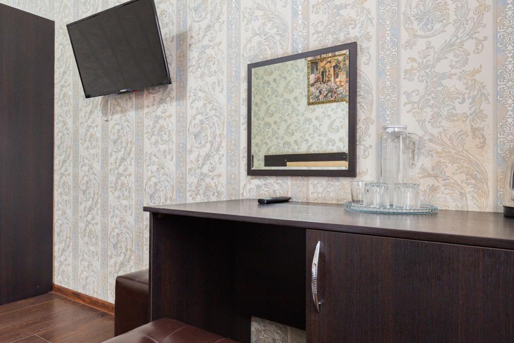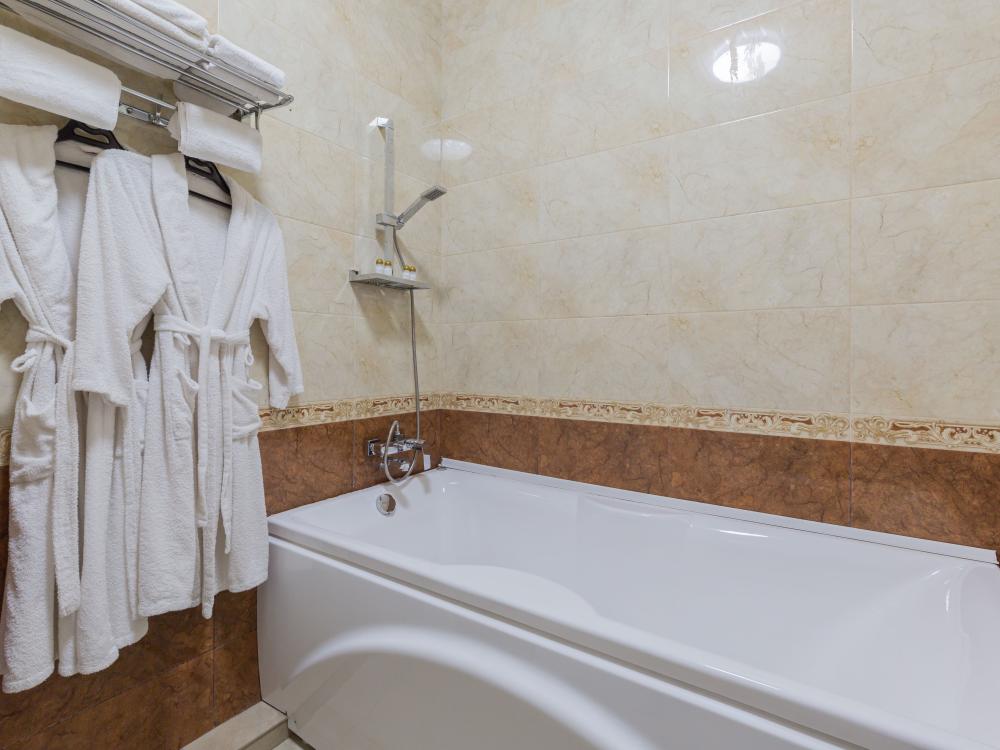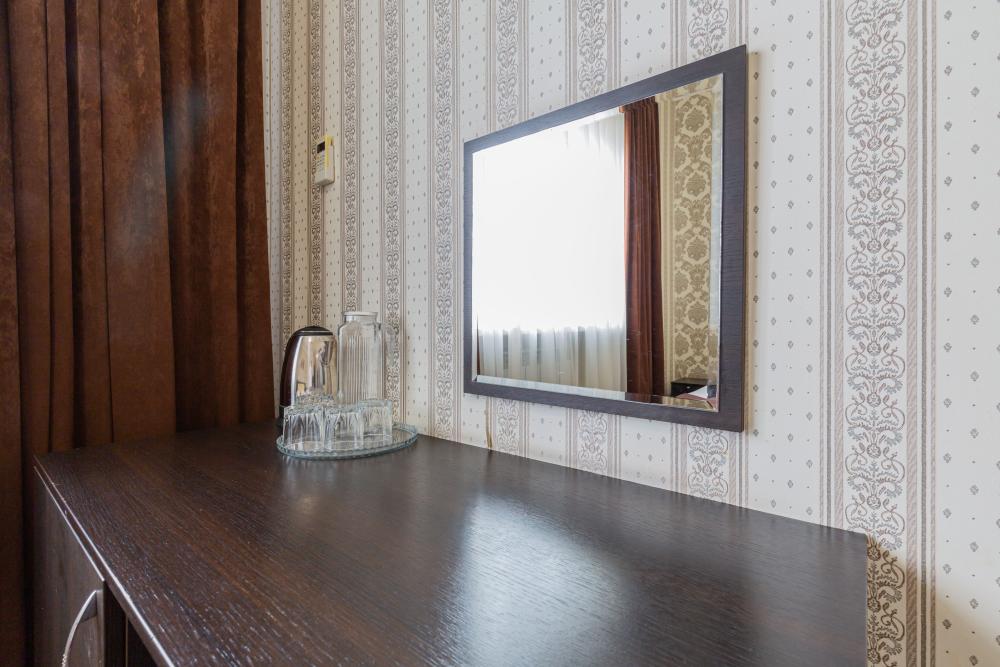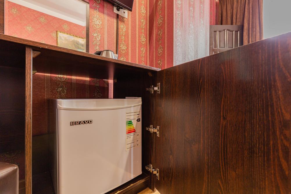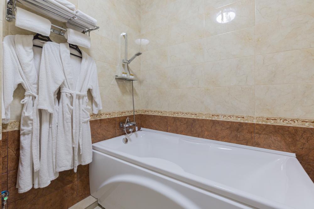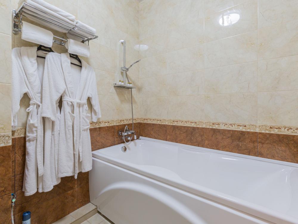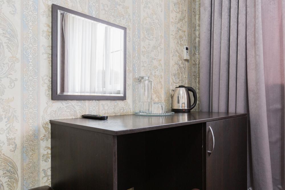 Стандартный номер вместимостью 3 человека. В номере: три односпальные кровати, тумбочки, вешалка для одежды, шкаф, стол, телевизор, холодильник, ванная комната