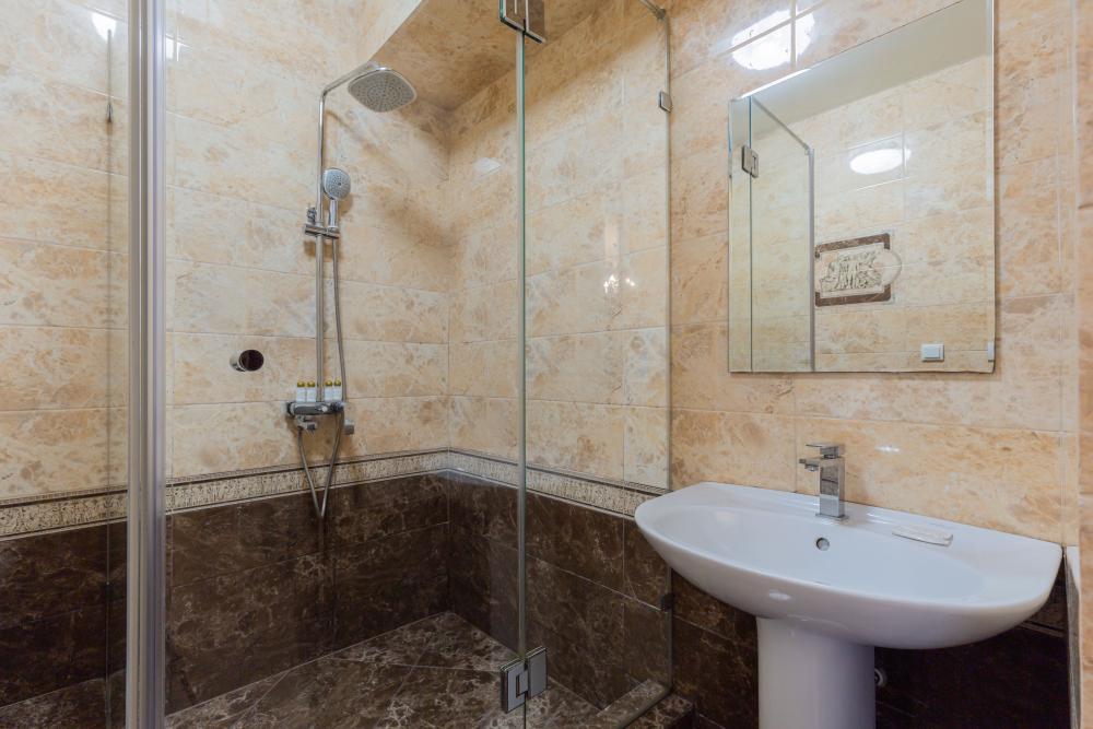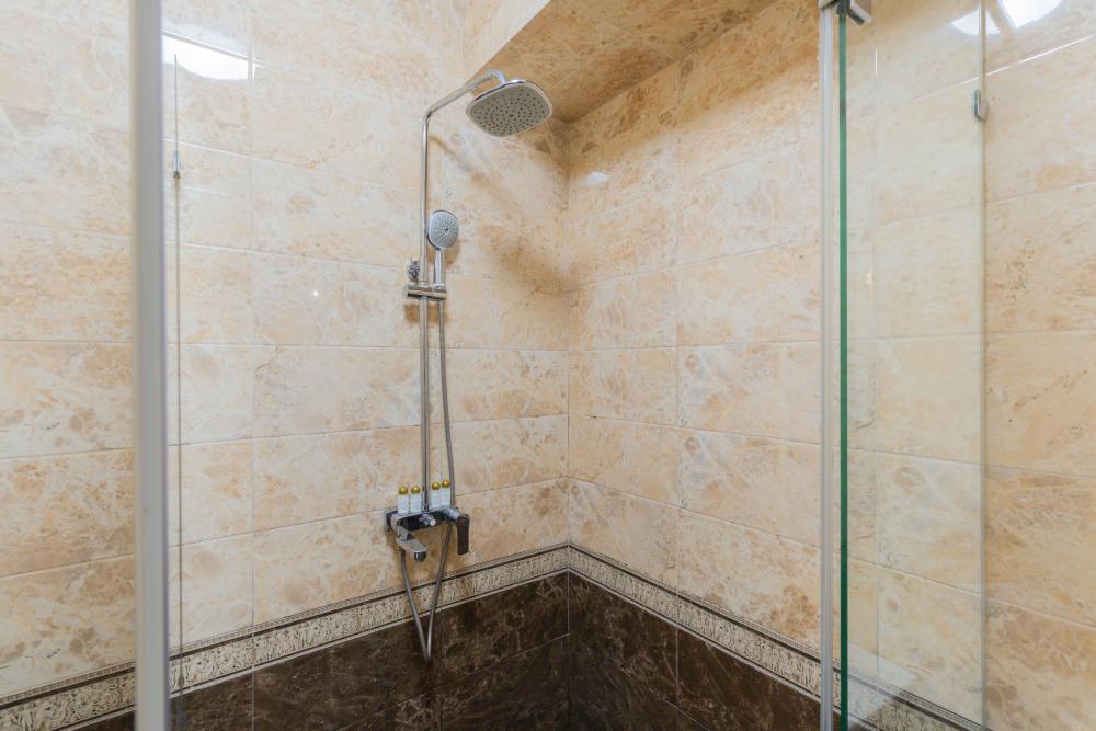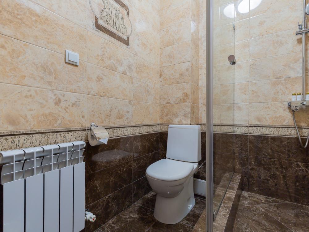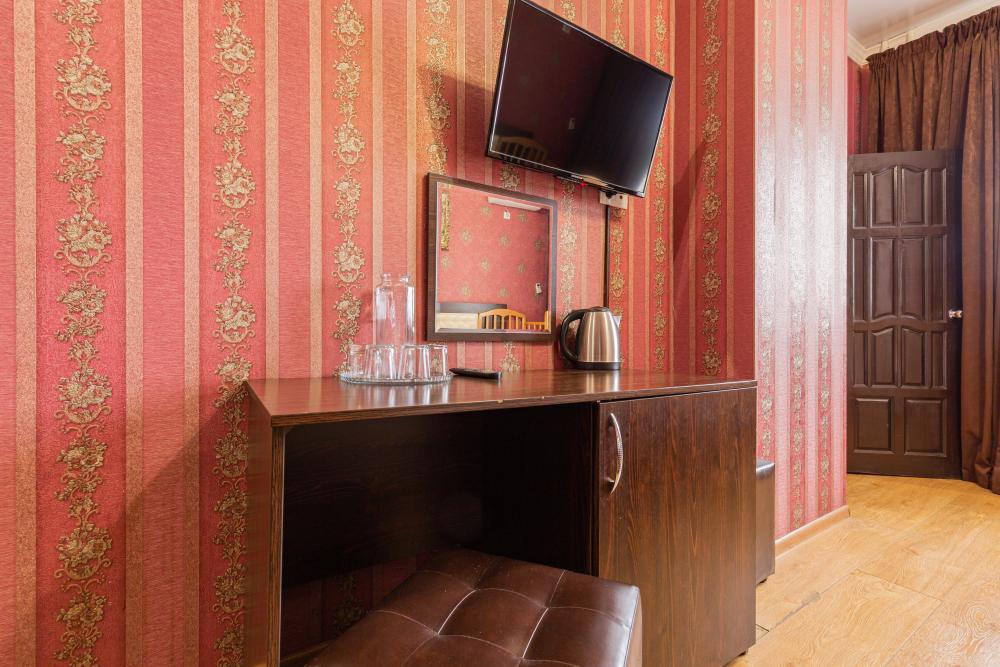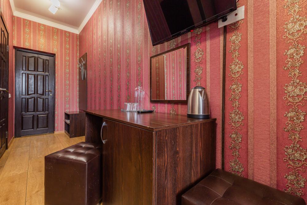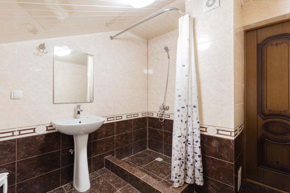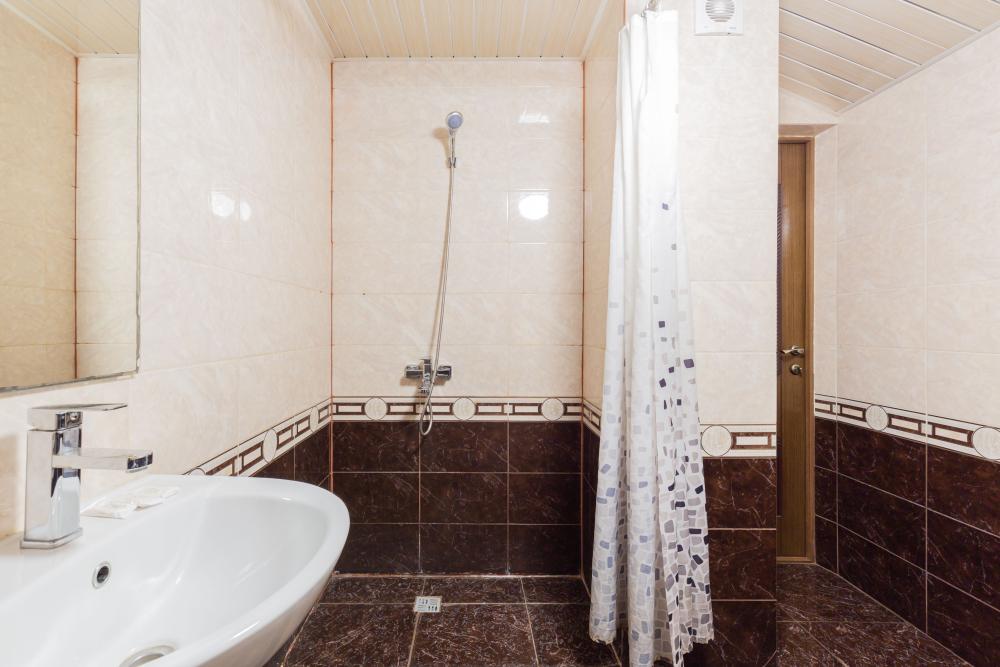 В номере: одна двухспальная и одна полутороспальная кровать, шкаф для одежды, телевизор, кондиционер, тумбочки, стол, душевая.