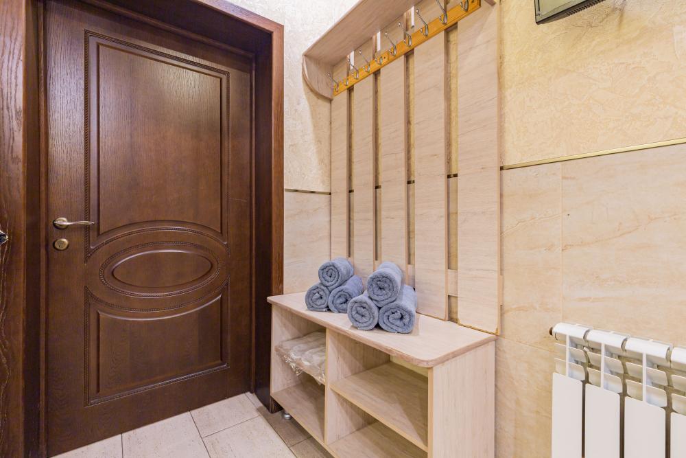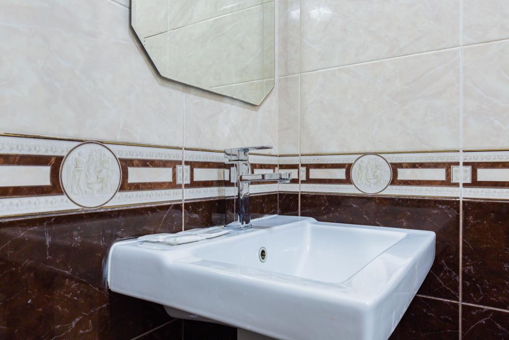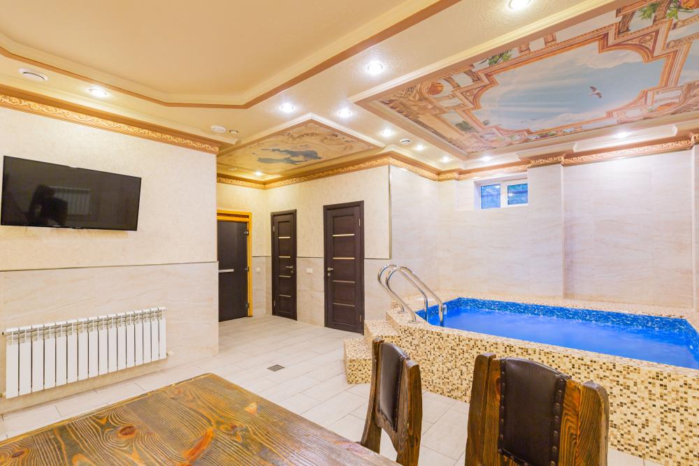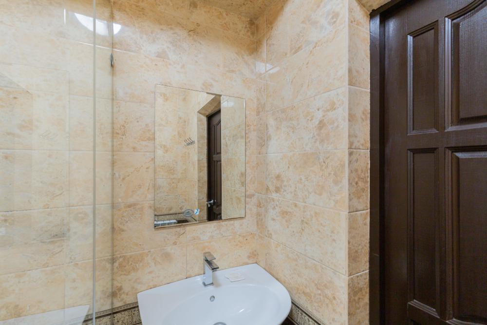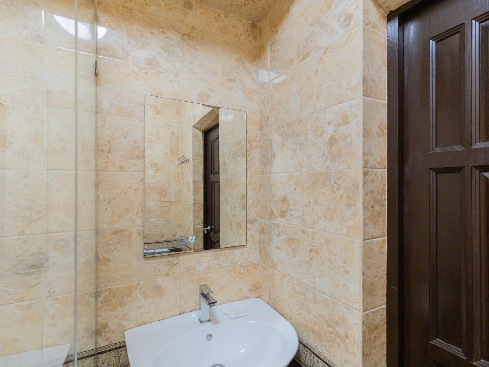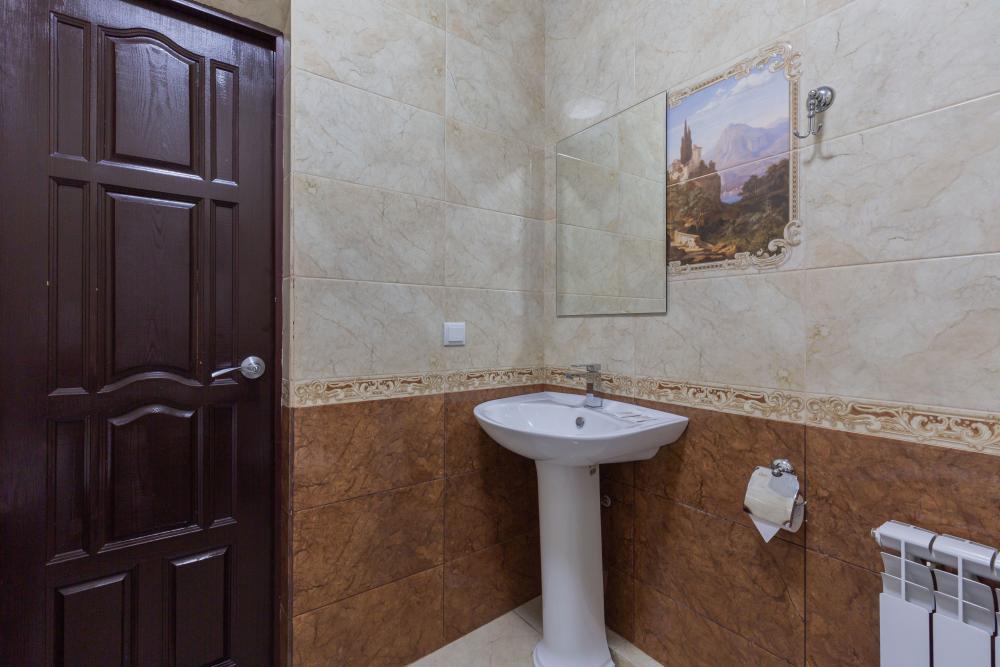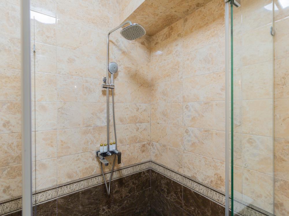 В номере: одна двухспальная и одна полутороспальная кровать, шкаф для одежды, телевизор, кондиционер, тумбочки, стол, душевая.