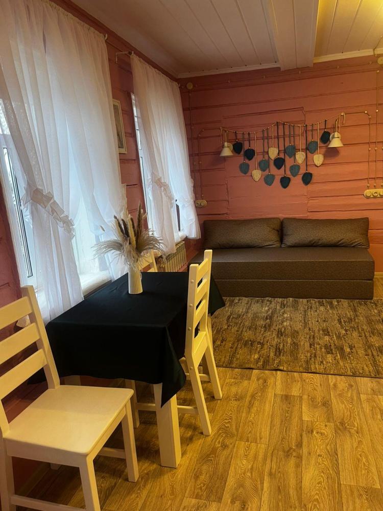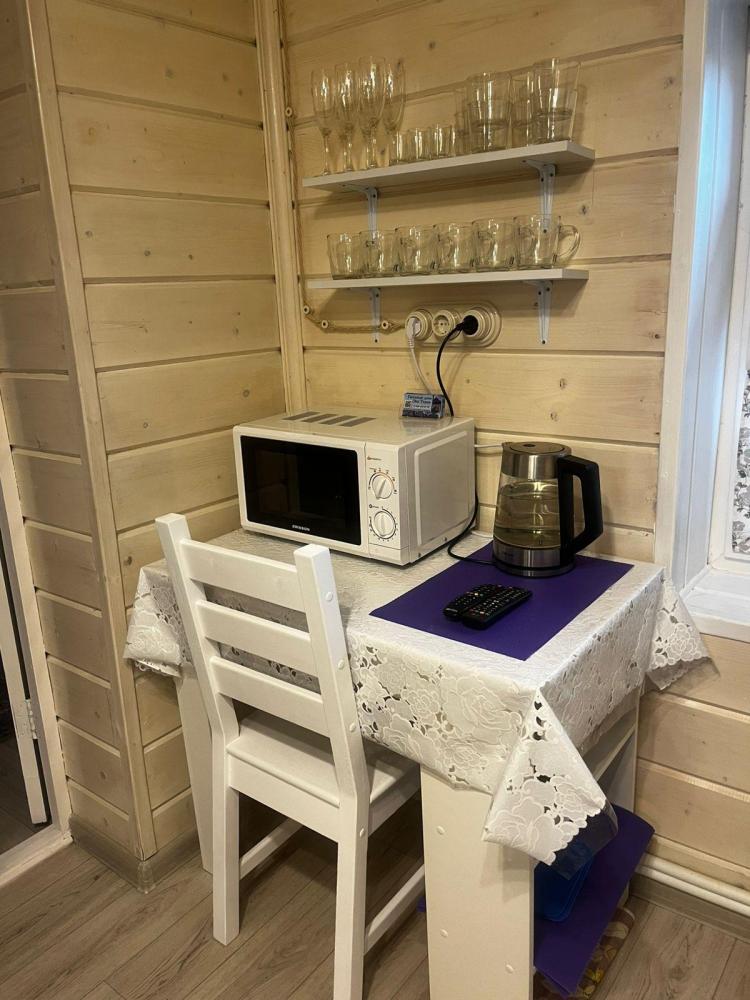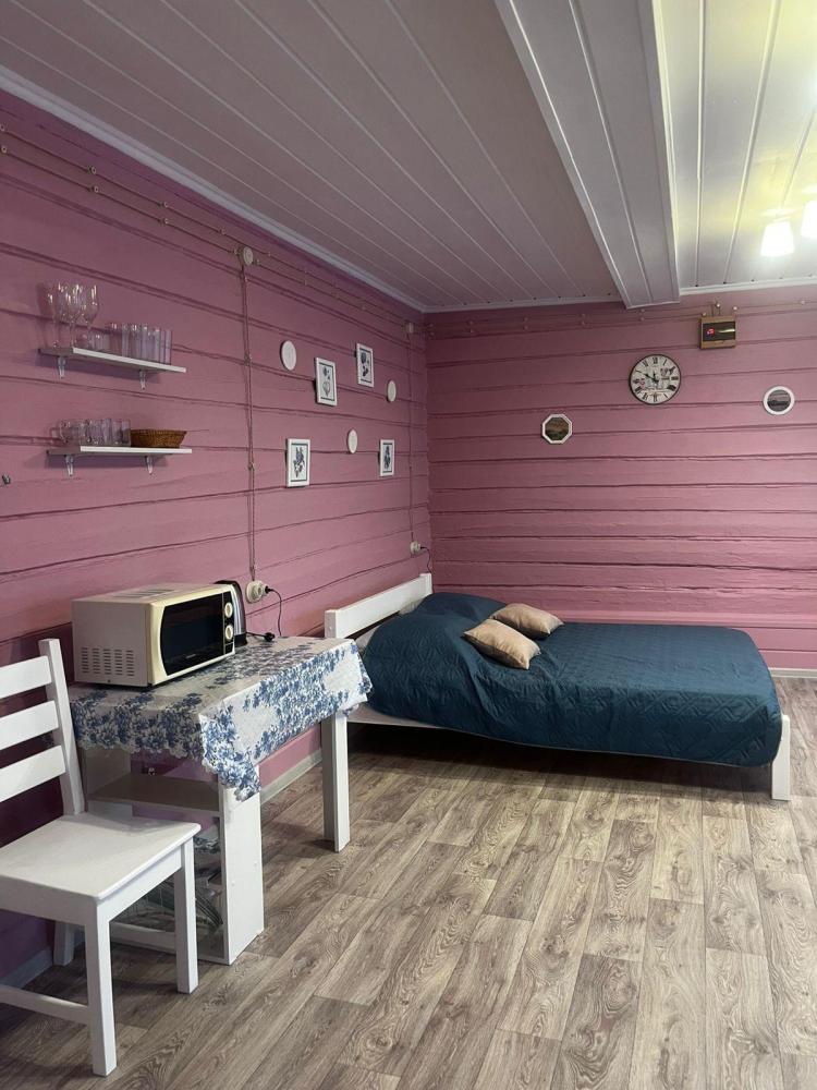 Пол дома с отдельным входом. Комната включает в себя: кухонный уголок с микроволновой печью, электрическим чайником. В наличии есть столовые приборы, чашки, стаканы, стопки, бокалы, десертные тарелки. Холодильник. ?Плиты нет. Стол и 4 стула. Здесь же есть: 1 двуспальная кровать с 1 двуспальным комплектом белья. 2 подушки и 1 двуспальное одеяло. Дополнительное спальное место: двуспальный диван(БЕСКАРКАСНЫЙ). Комплект белья для дивана - 1 двуспальный. 2 подушки и одно двуспальное одеяло. Санузел с душевой кабиной. Полотенца большие предоставляются по указанному количеству человек. Просим учитывать при бронировании: ?Обращаем ваше внимание, что дополнительно не предоставляются: -Одеяла, подушки и комплекты белья. -Детская кроватка -Дополнительные спальные места ?Нет в наличии: -Тапочек -Одноразовых комплектов для чистки зубов -Халатов ?Мангальная зона входит в стоимость. Уголь и розжиг приобретается самостоятельно. ?Парковка находится на территории. ?Проживание с животными разрешается за дополнительную плату. Запрещено: ?Проводить шумные мероприятия, которые могут помешать отдыху других проживающих и соседей. ?Разводить открытый огонь на территории гостевого дома, в том числе в мангале, за исключением использования специального угля. ?Курение в домах, за исключением электронных сигарет ?Любая порча имущества гостевого дома и насаждений на его территории.