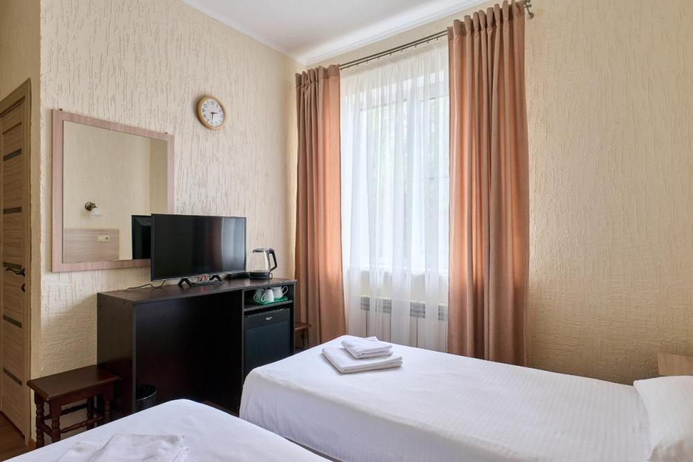 Двухместный номер с 2 отдельными кроватями, телевизором с плоским экраном и электрическим чайником и и собственной ванной комнатой.
