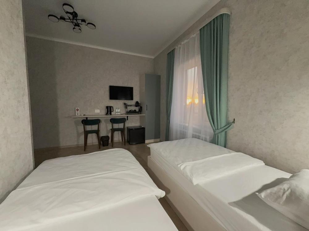 Номер "Стандарт с двумя раздельными кроватями" в гостинице "Тандыр" — это идеальный выбор для гостей, которые ценят комфорт и приватность. Просторный и стильный номер предоставит вам все необходимые удобства для удобного проживания, будь то деловая поездка или отдых с друзьями или коллегами. Описание номера: Этот номер разработан с учётом потребностей гостей, предпочитающих раздельные кровати. Он сочетает в себе элегантный интерьер, функциональные зоны и удобства, которые создадут атмосферу комфорта и уюта. Особенности номера: Две односпальные кровати с удобными матрасами askona и мягким постельным бельём Рабочий стол с удобными мягкими стульями как для работы, так и для перекуса. Телевизор с плоским экраном и спутниковыми каналами Холодильник Бесплатный Wi-Fi для удобства работы и связи Кондиционер с индивидуальной настройкой температуры Шкаф для одежды, зеркало. Ванная комната: Просторная ванная комната с душем в стиле лофт Набор туалетных принадлежностей (шампунь, гель для душа, мыло, набор зубной щетки, тапочки, влажные салфетки) Фен для волос Белоснежные полотенца Дополнительные удобства: Набор для чая и кофе с чайником Бесплатные бутылки воды Примечания: Этот номер идеально подходит для друзей, коллег или гостей, путешествующих вдвоем, которым важен комфорт, удобство и приватность. Уютная обстановка и современное оснащение сделают ваше пребывание максимально комфортным.