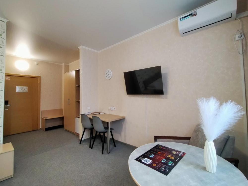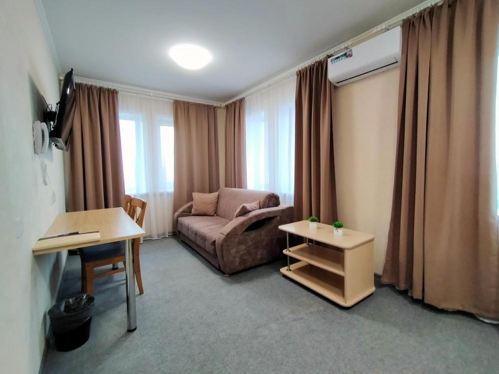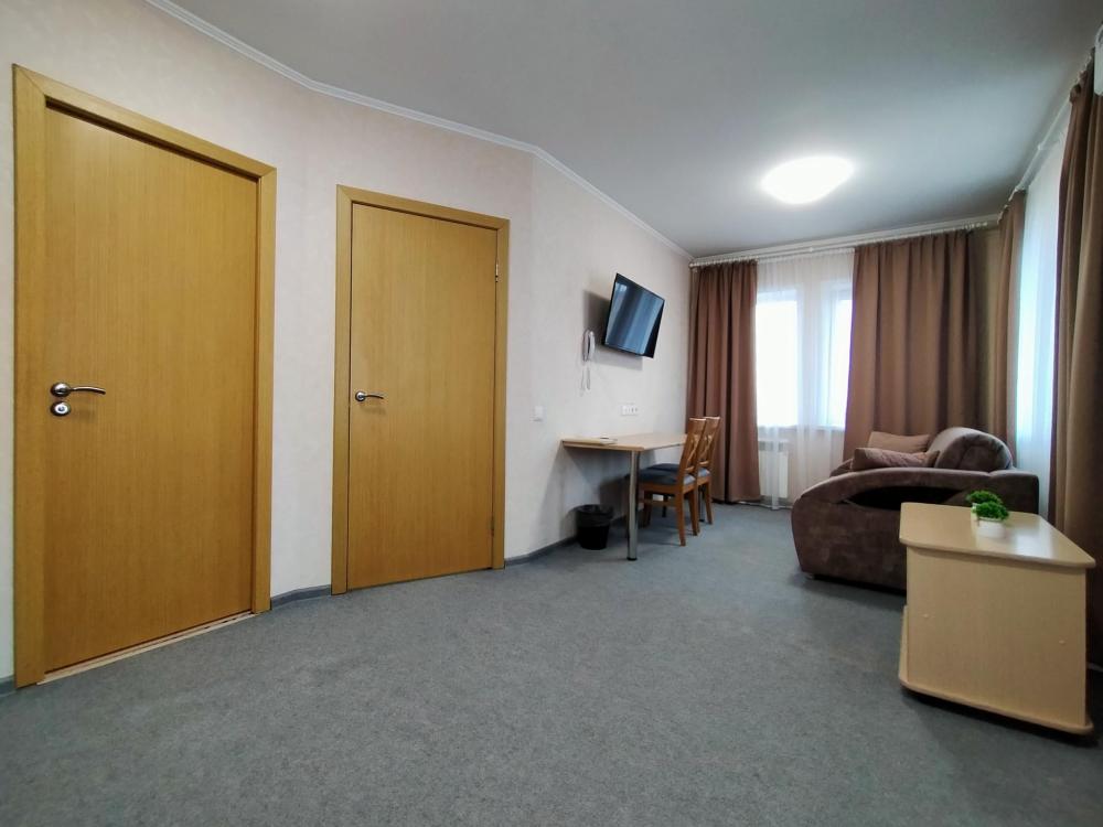 Двухкомнатные номера 35,5 кв.м. с двухспальной кроватью в спальне и комфортной мягкой мебелью и плазменной панелью в гостиной, идеальны для длительного проживания.
