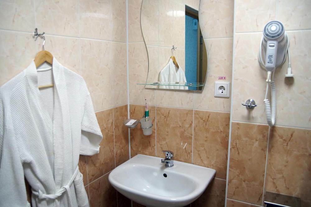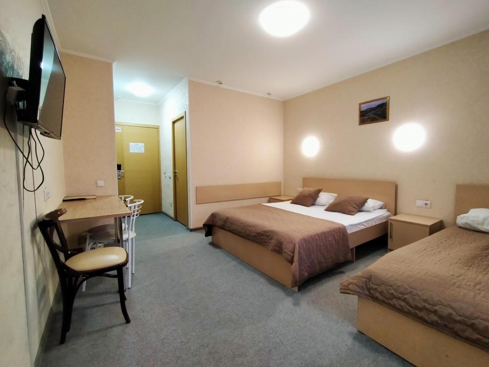 Номер с одной двуспальной кроватью и одна односпальная кровать. Номер с удобствами в номере, ванна.
